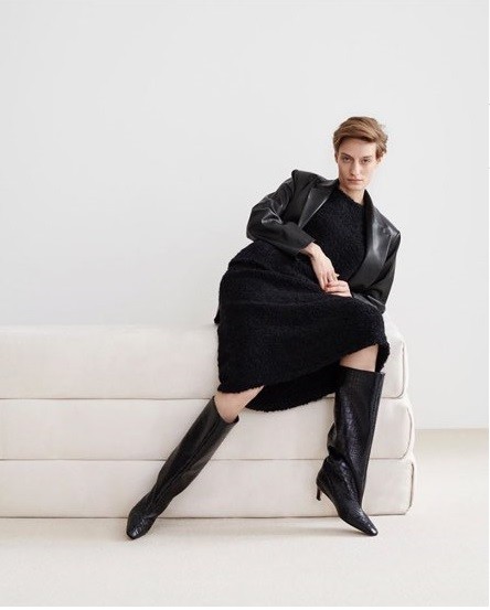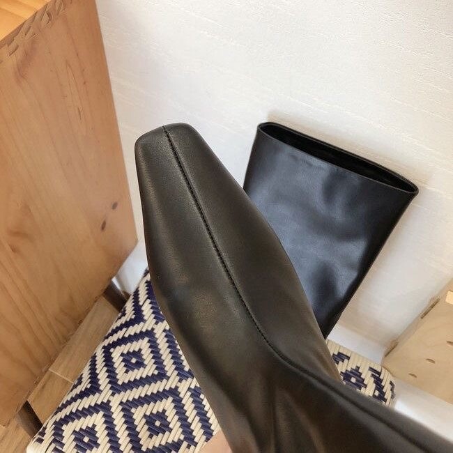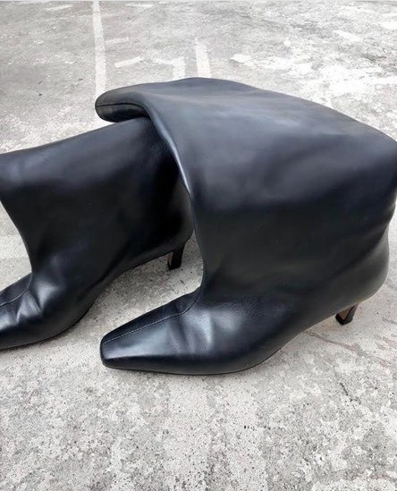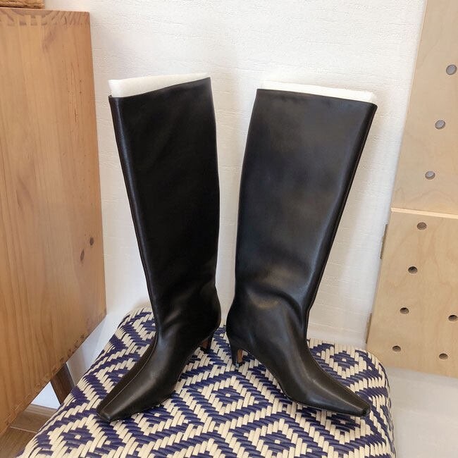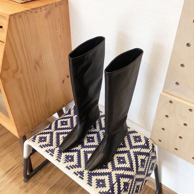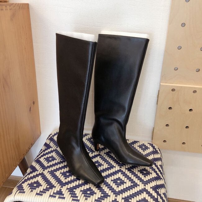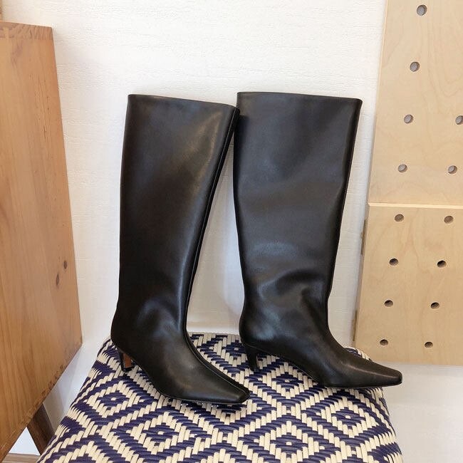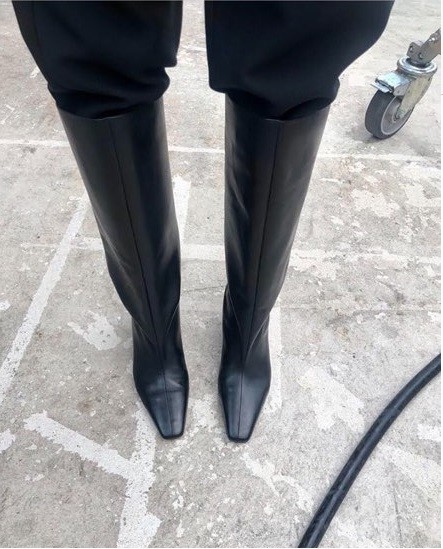 볼드한 디자인의 소가죽으로 마감처리한 싸이하이 부츠입니다