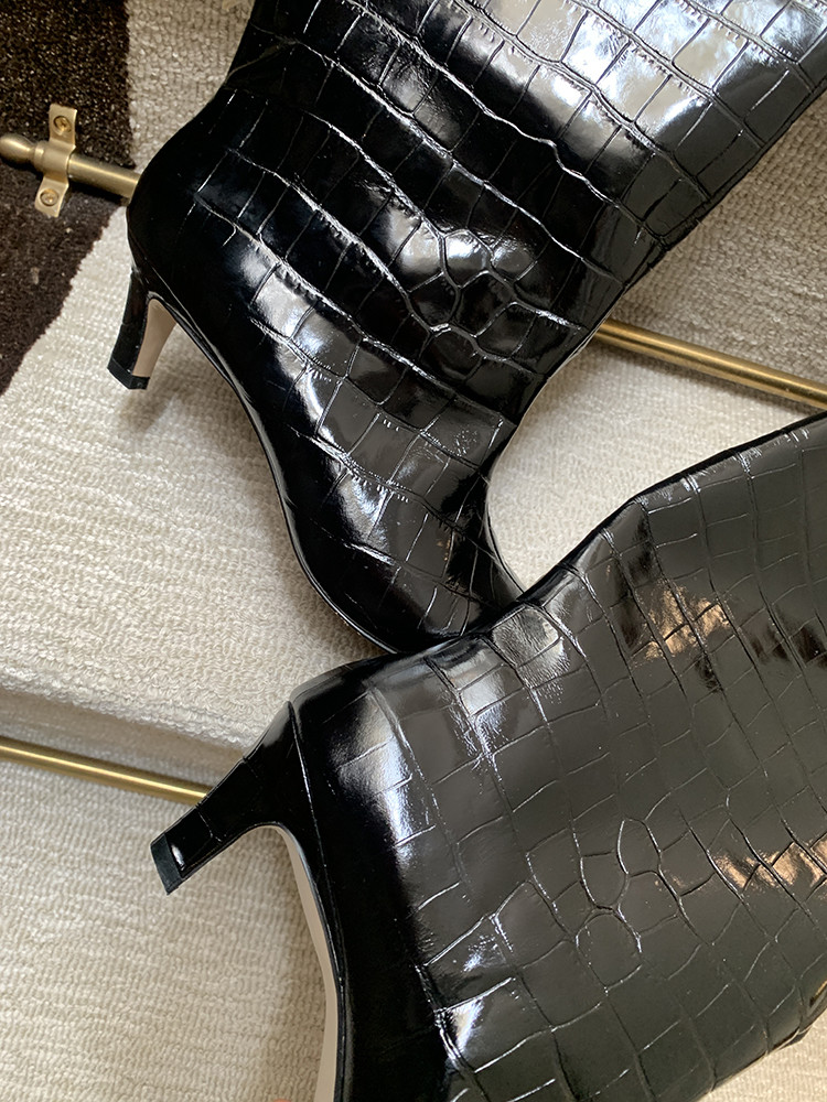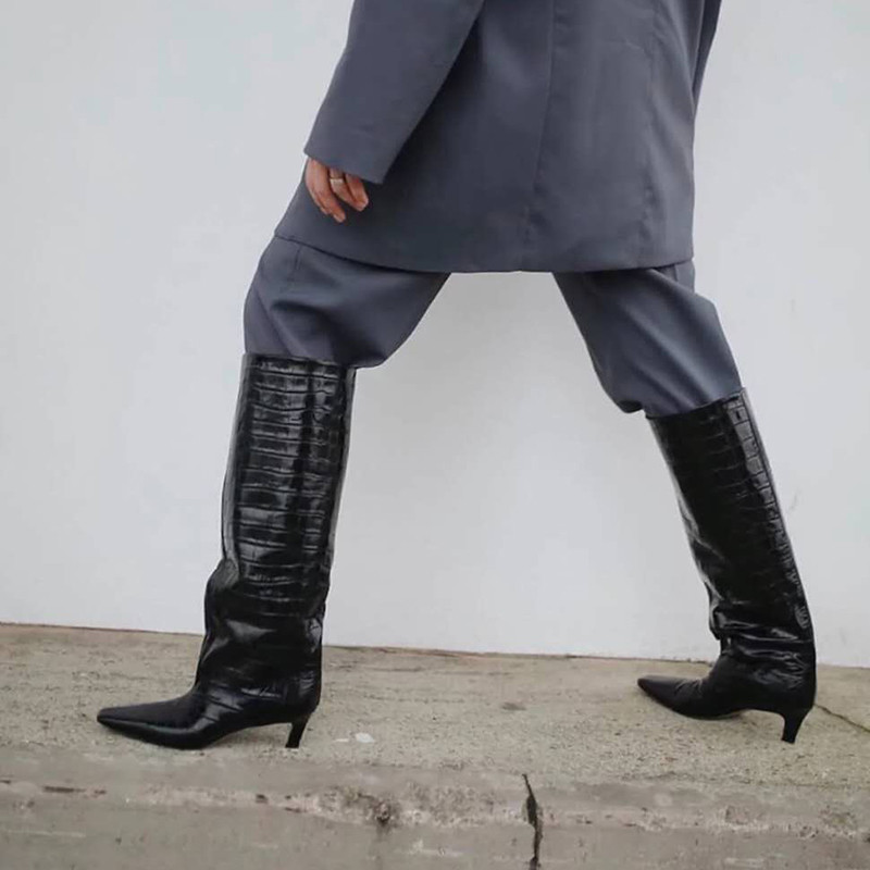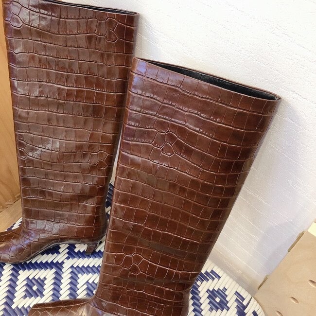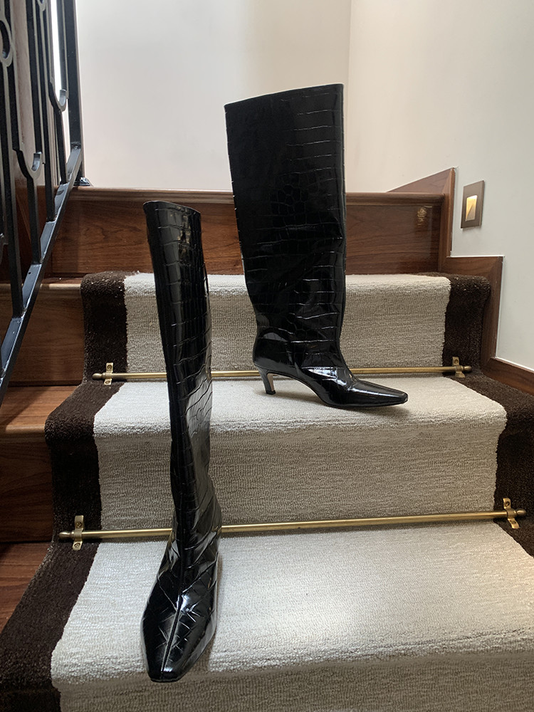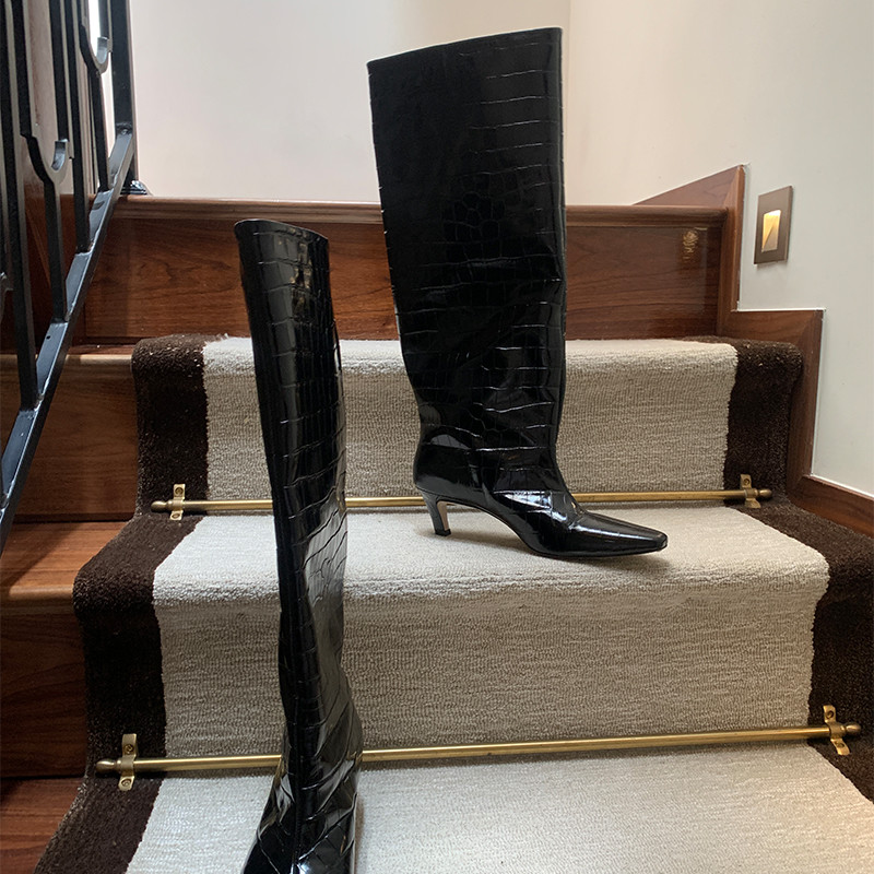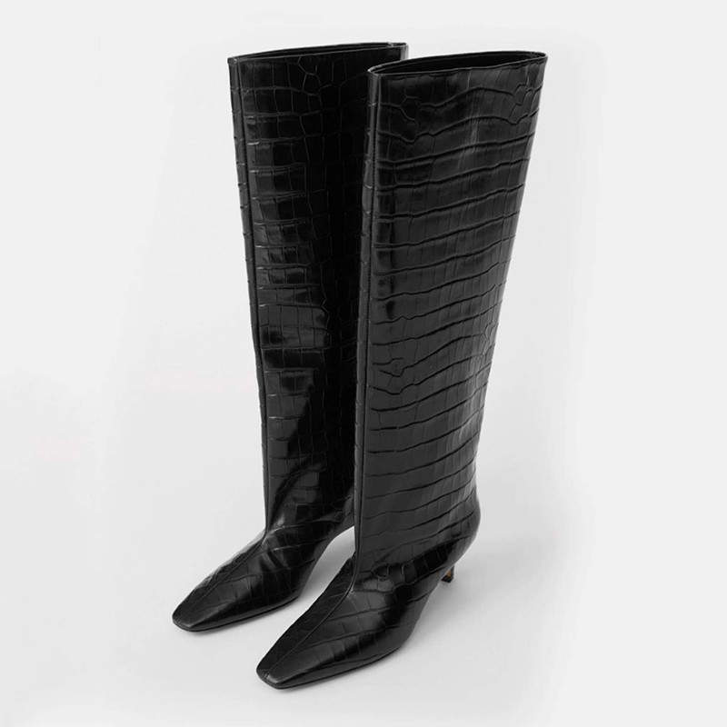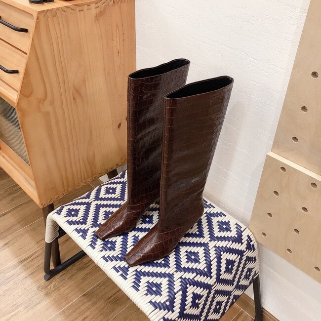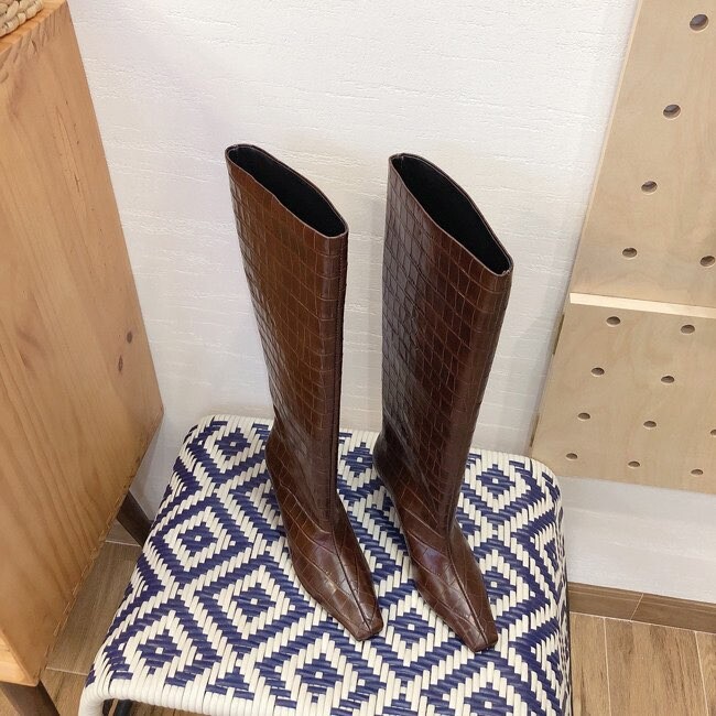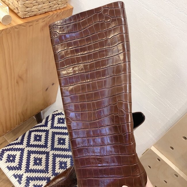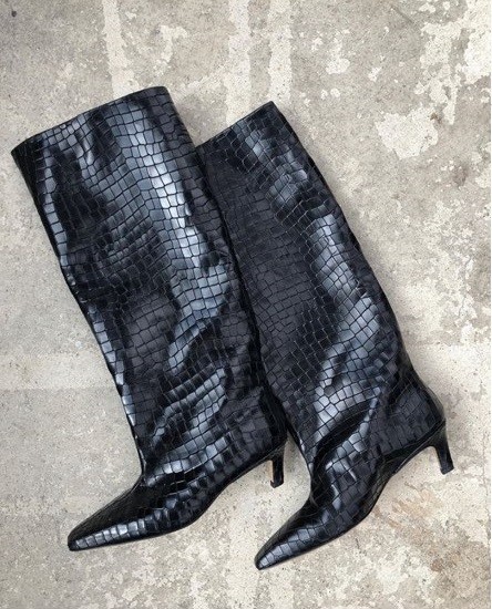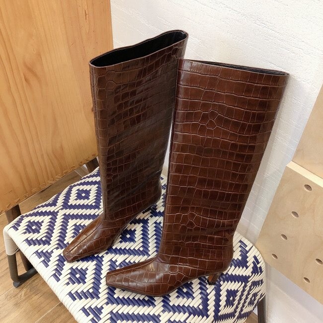 " 토템 루즈핏 미들굽 키튼힐 데일리 악어패턴 롱부츠"