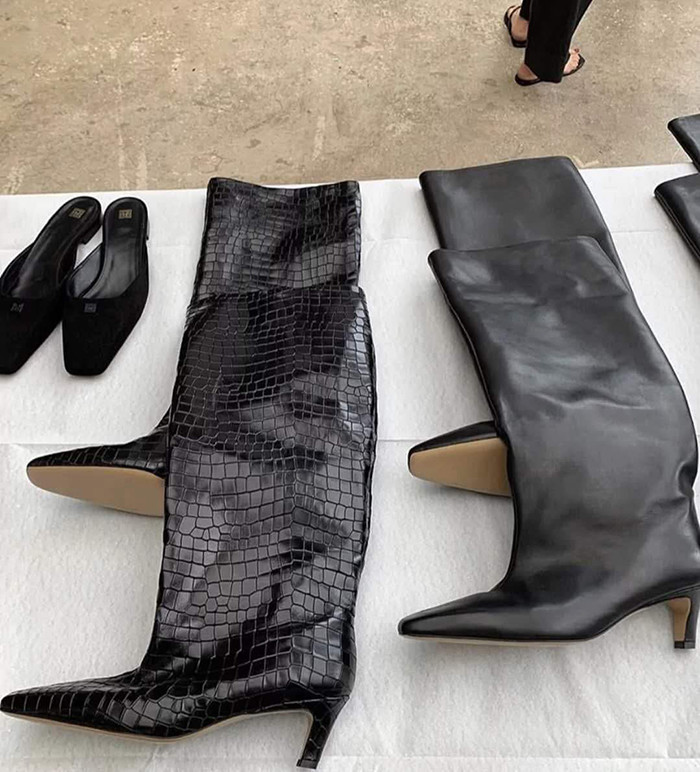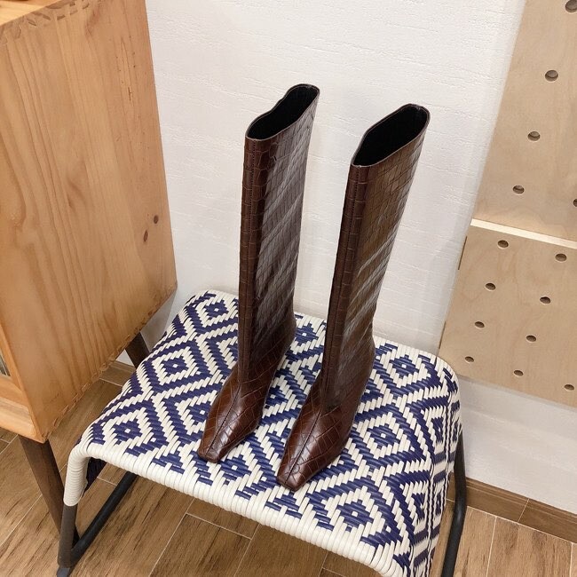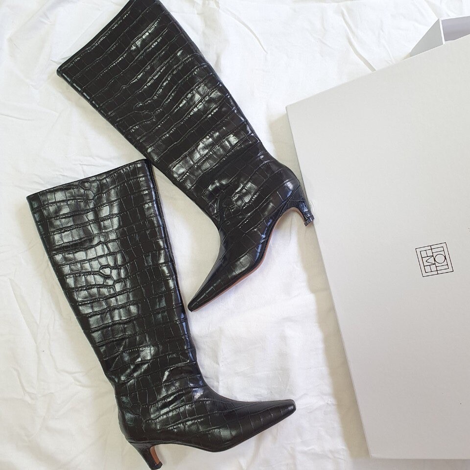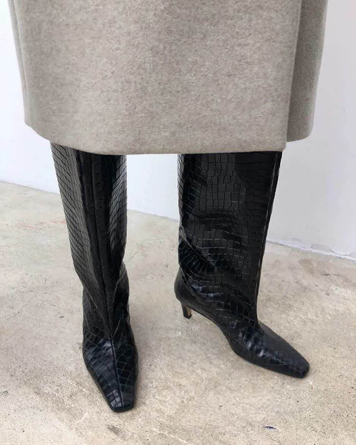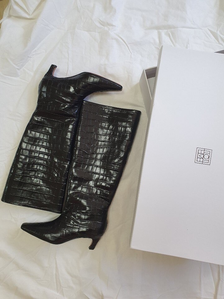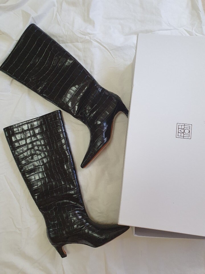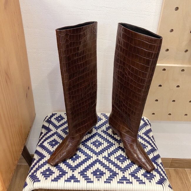 토템 루즈핏 미들굽 키튼힐 데일리 악어패턴 롱부츠