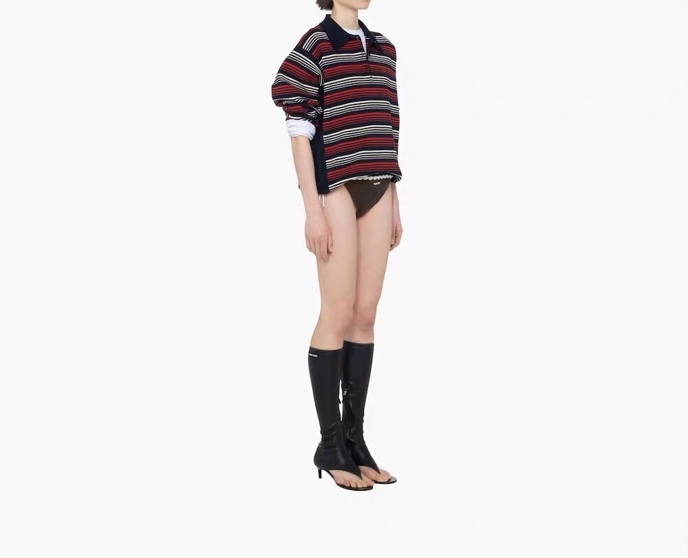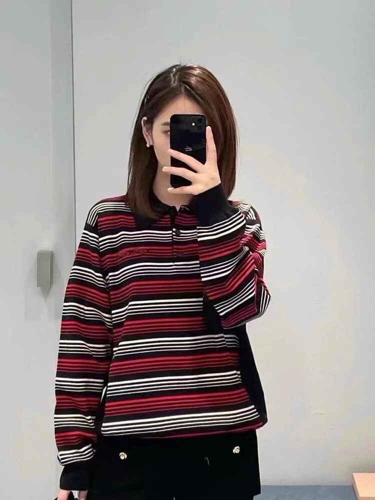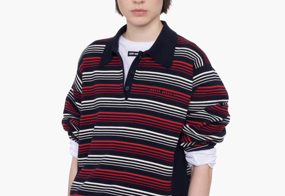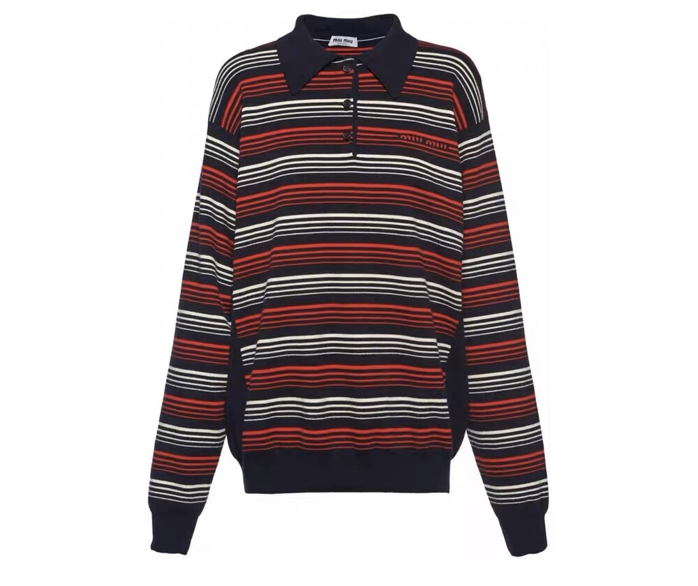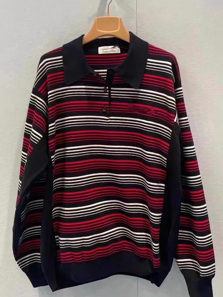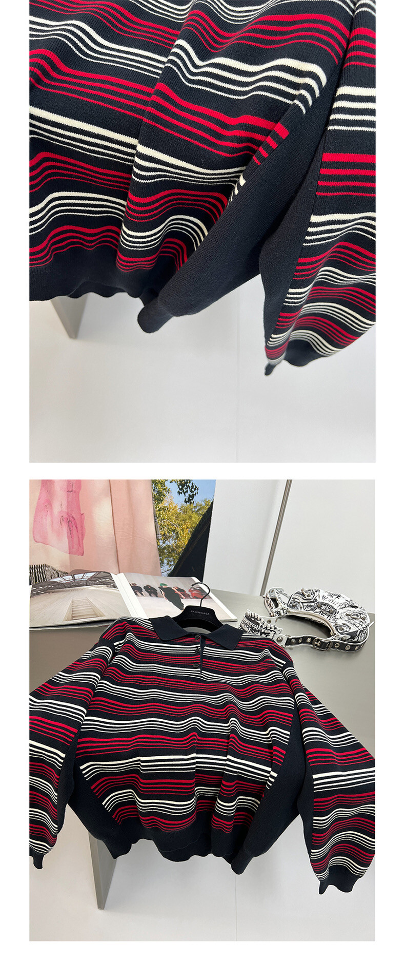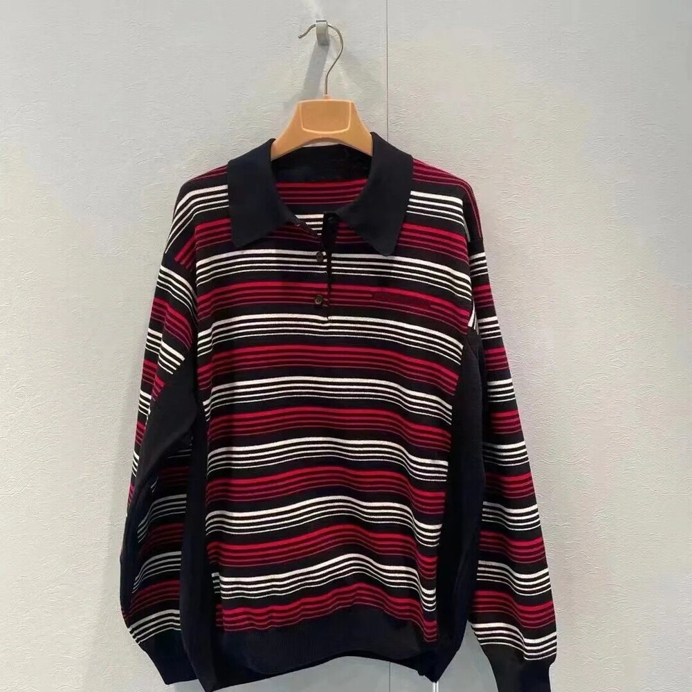 네이비 블루, 브라이트 레드, 오프화이트, 코튼, 스트라이프 프린트, 가슴의 로고 자수, 폴로 칼라, 앞면의 버튼 플래킷, 반소매, 골지 밑단, 직선형의 밑단.
