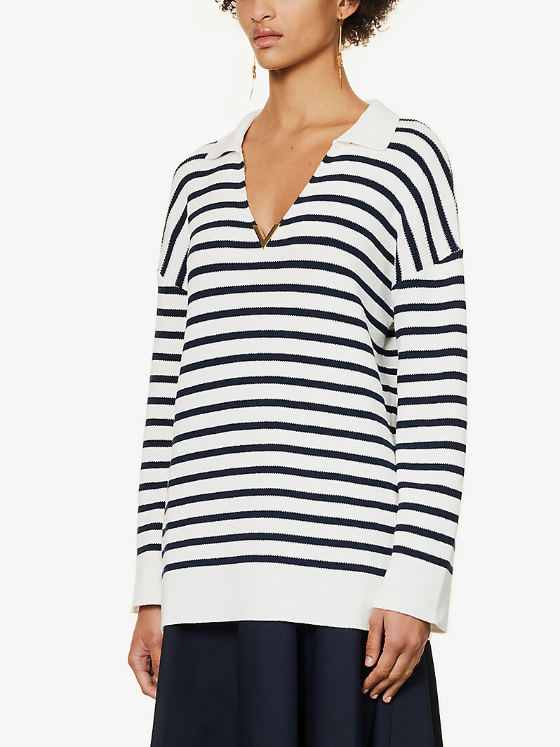 " VALEN* 스트라이프 V넥 니트 튜닉 "