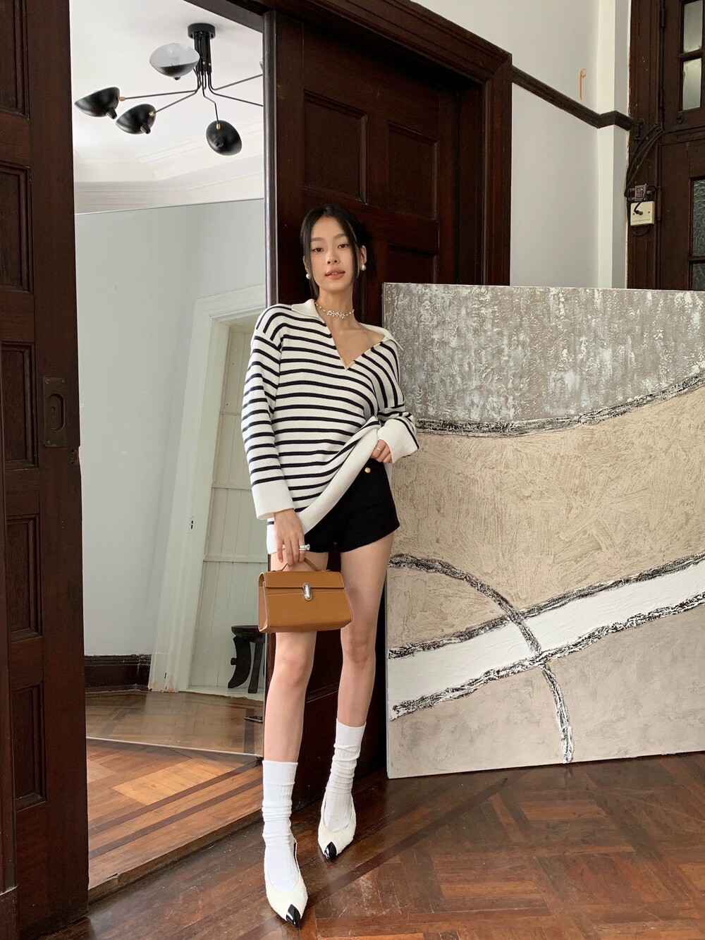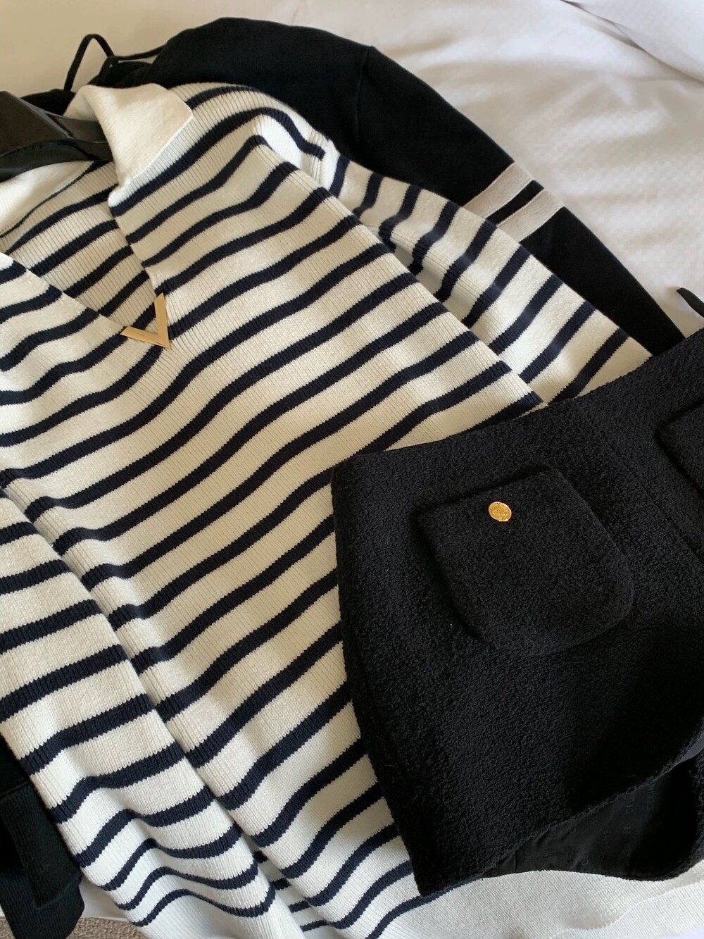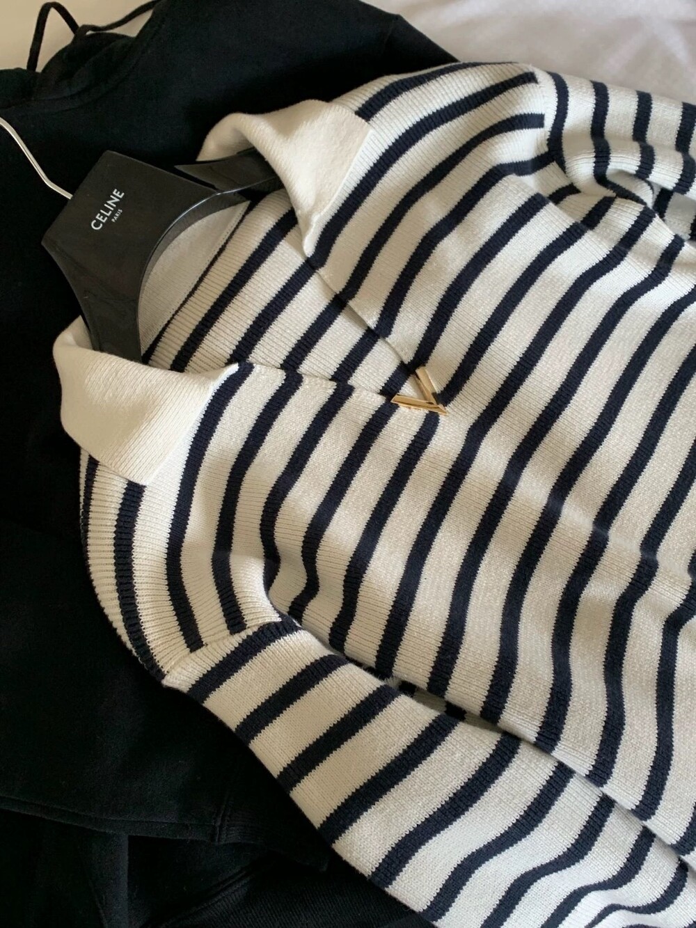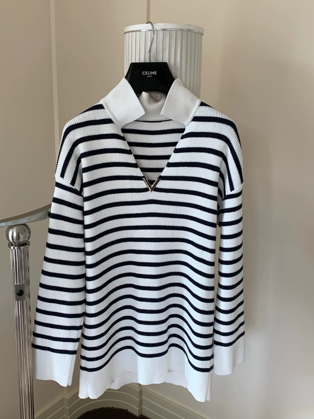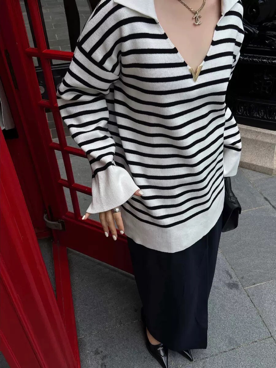 VALEN* 스트라이프 V넥 튜닉 니트
