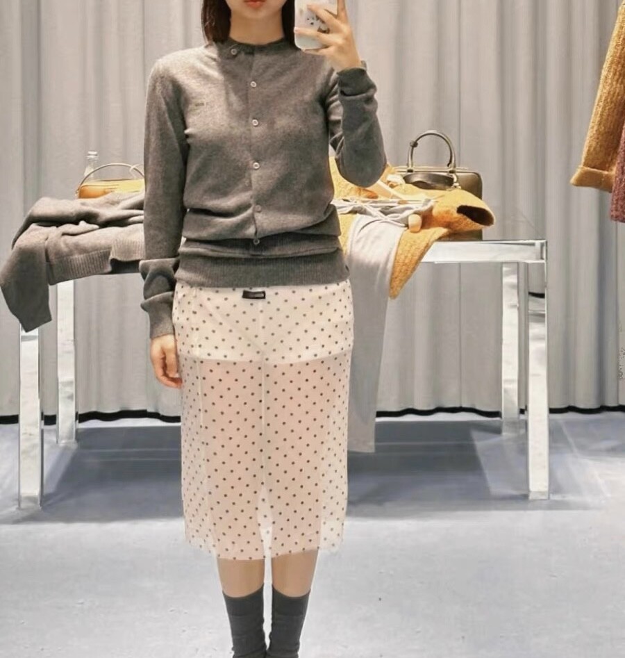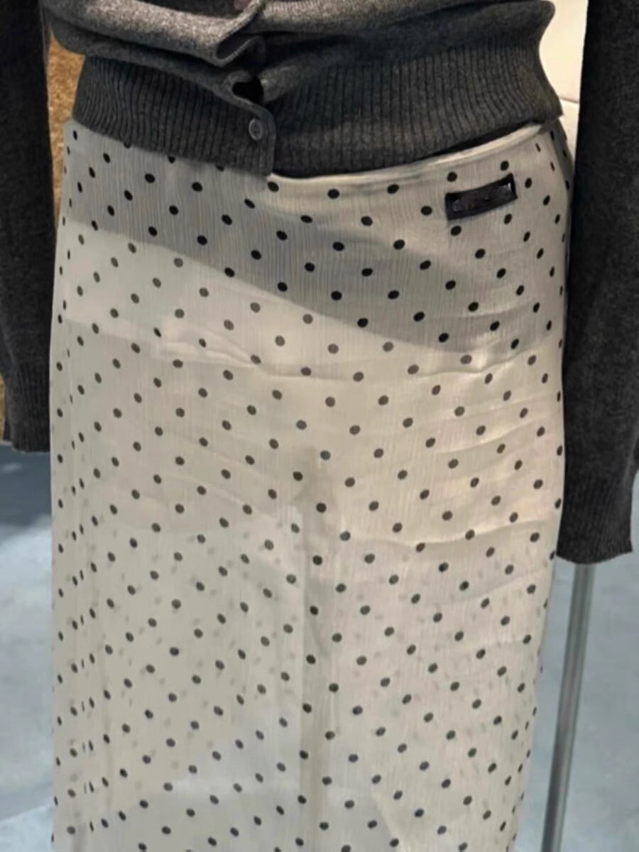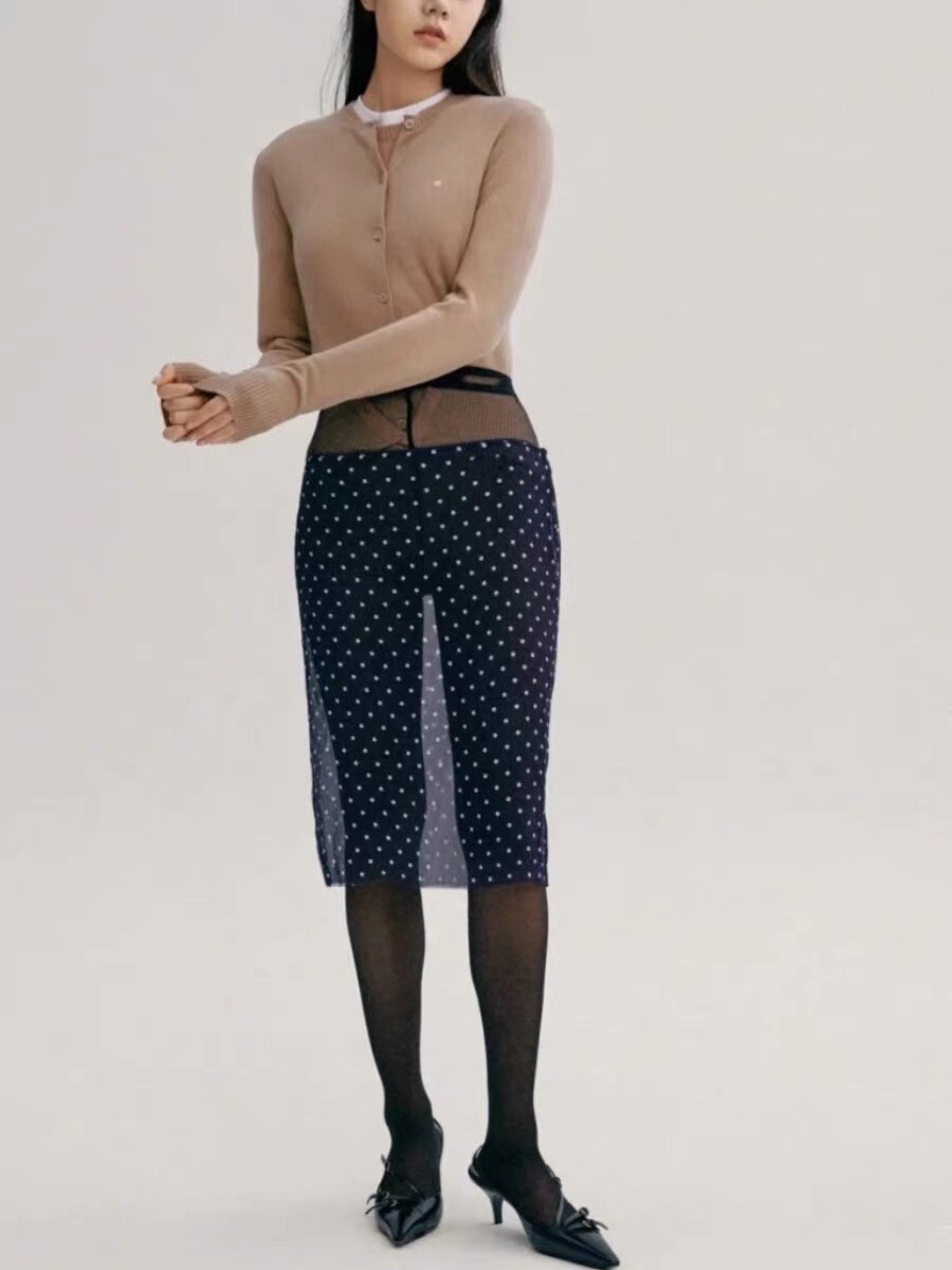 도트패턴의 메쉬스커트로 포인트 코디 아이템으로
