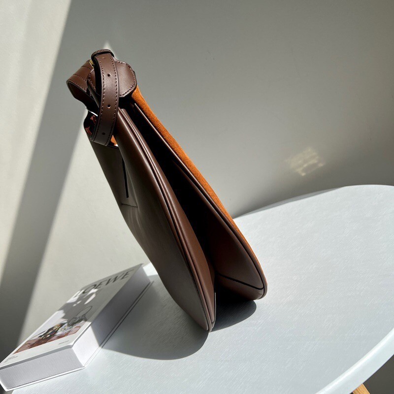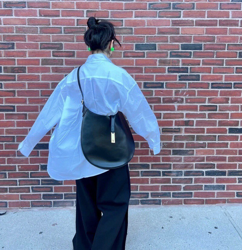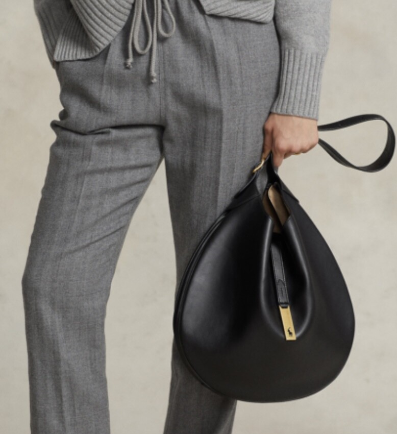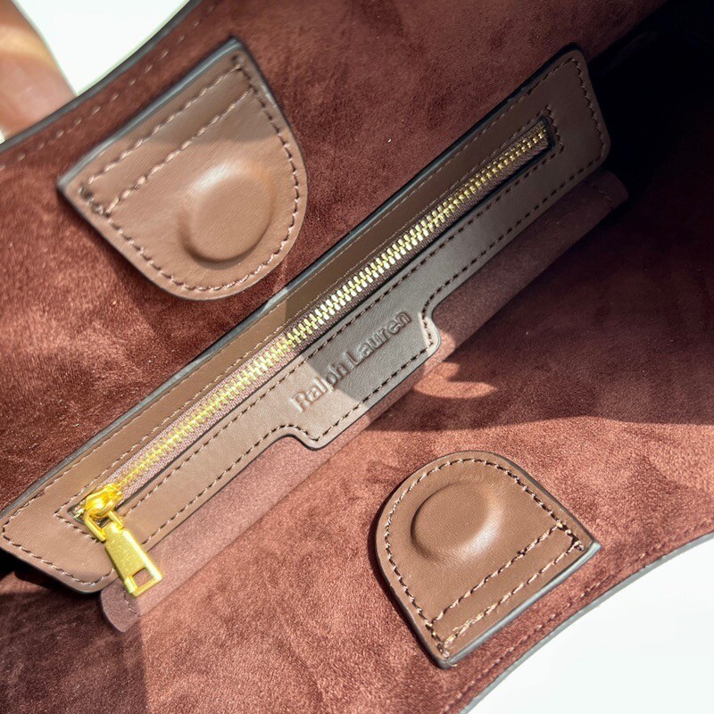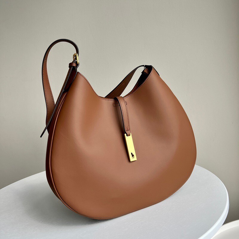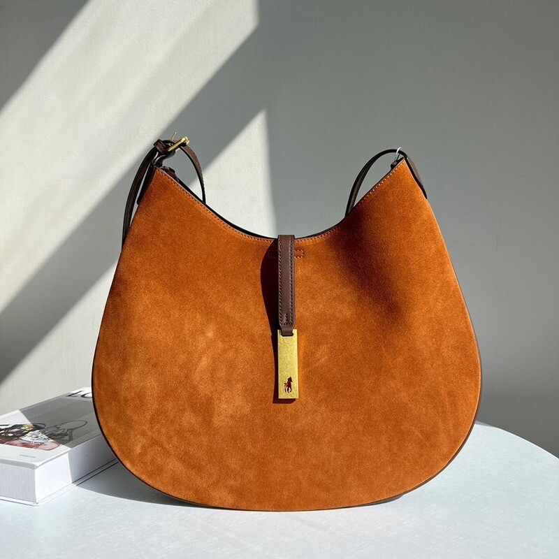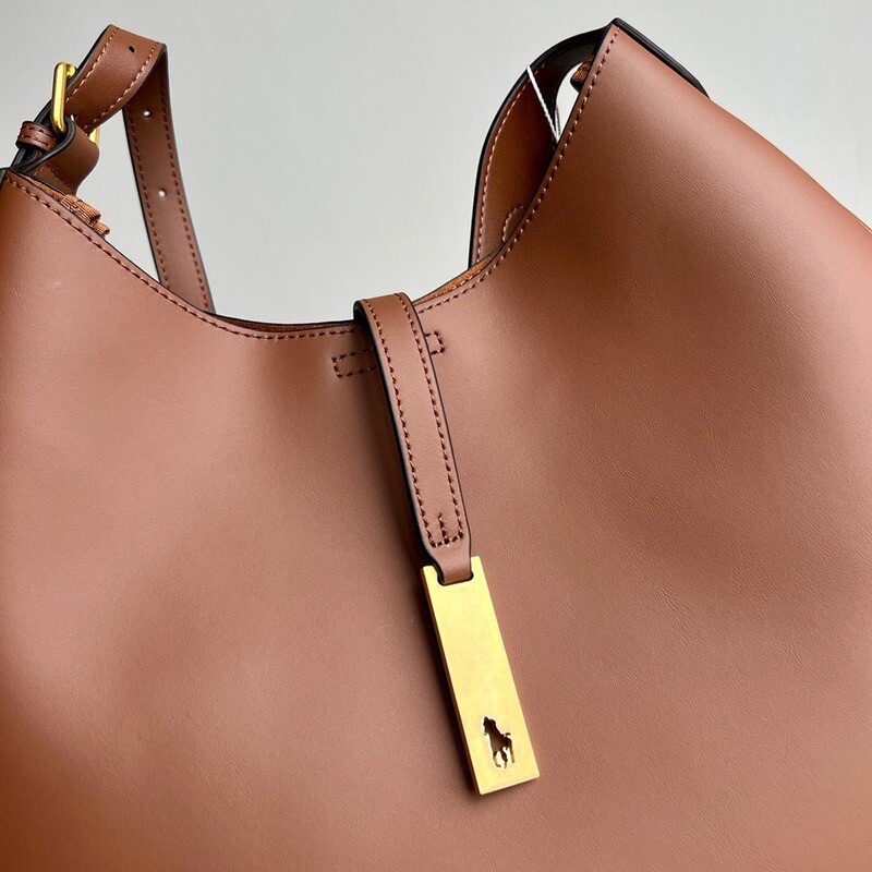 모험, 로맨스, 낙관주의에서 영감을 받은 RL* 의 일부인 이 가죽 숄더백은 넉넉한 이중 수납 공간 안장 실루엣과 살짝 솟아오른 봄베 디테일로 은은한 승마 감성을 불러일으킵니다. 스트랩, 유연한 본디드 스웨이드 내부 구조. 빈티지 ID 팔찌를 연상시키는 골드 톤 브라스 하드웨어에 시그니처 포니의 실루엣을 컷팅한 브라스 명판으로 마감했습니다.