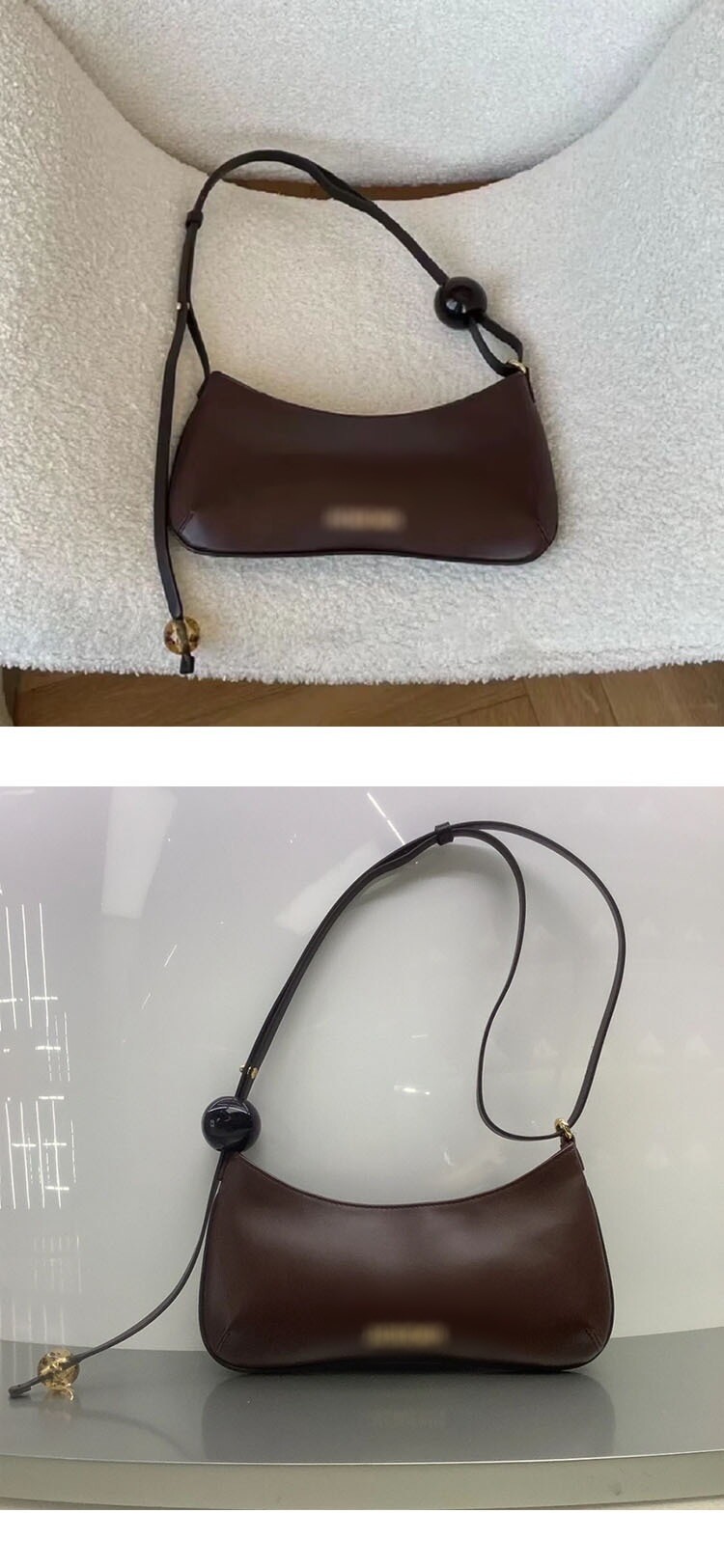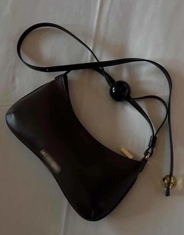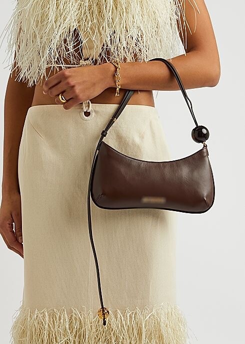 Bisou 숄더백은 Jacqu*의 독창적인 미학을 보여줍니다. 이탈리아에서 제작된 이 브라운 스타일은 부드러운 가죽으로 제작되었으며 큰 비즈가 달린 조절 가능한 숄더 스트랩, 지퍼 잠금, 로고 플라크 디테일이 있습니다.