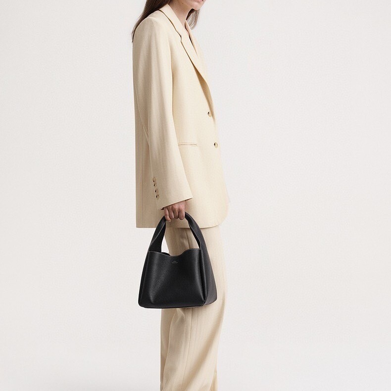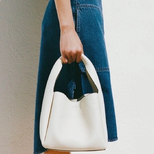 단일 수납칸 와이드 스트랩 핸드백으로 연출 숄더백 으로 착용 싱글 핸들 로고 프린트 전면 로고 내부 패 치 포켓