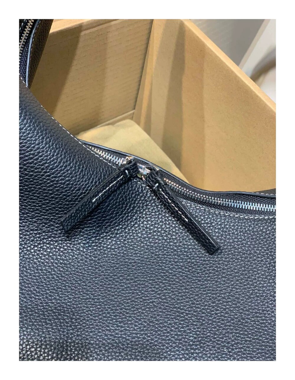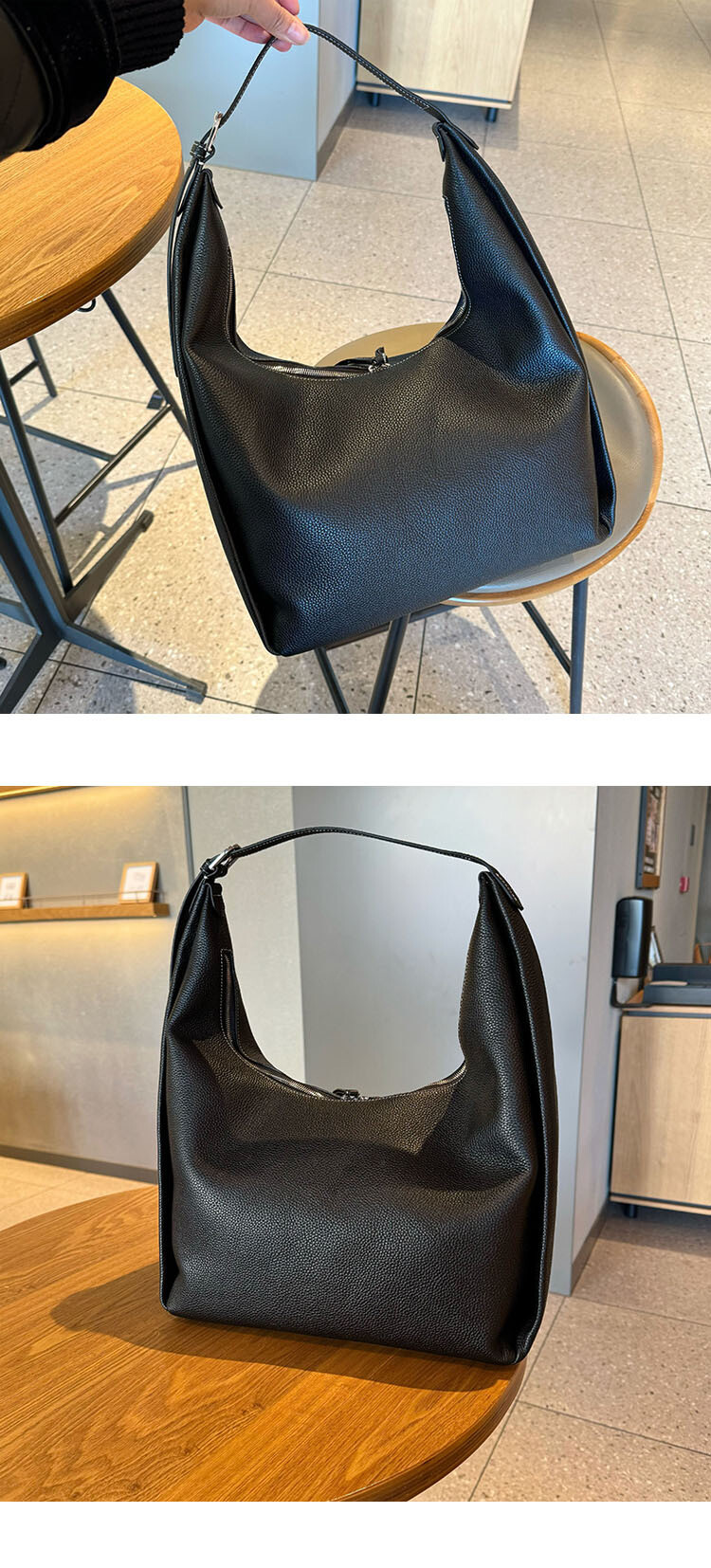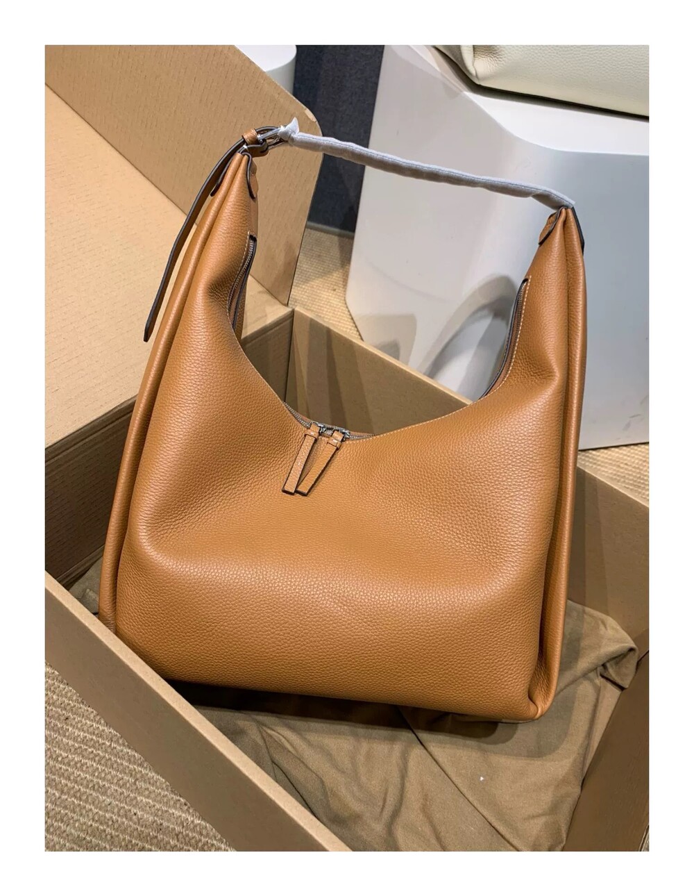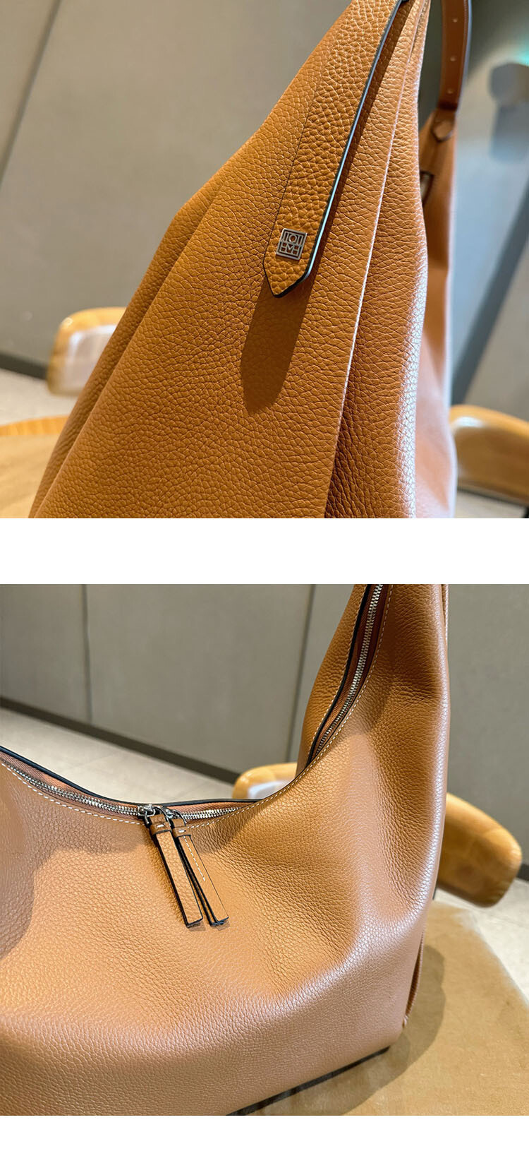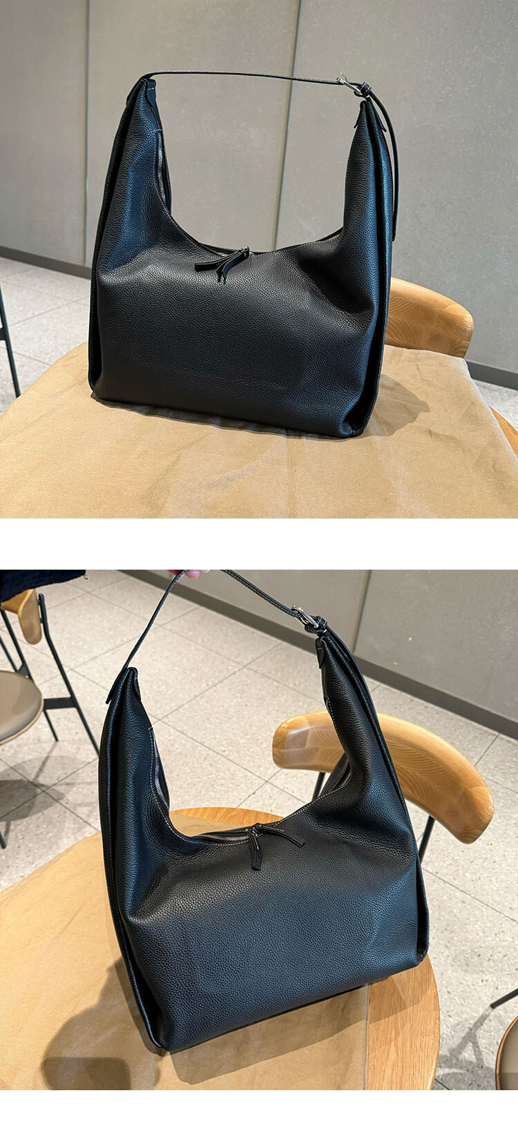 TOT*토트 백으로 타임리스 컬렉션에 우아함을 더해보세요. 페블 그레인 질감의 블랙 가죽으로 제작된 이 토트 백은 양방향 지퍼로 잠그는 스타일로 버클로 조절 가능한 핸들 스트랩과 함께 합니다.