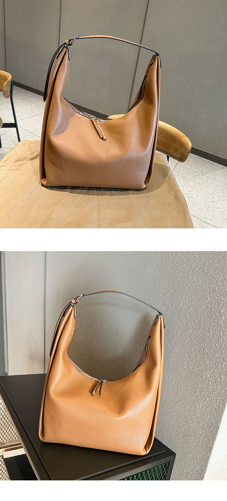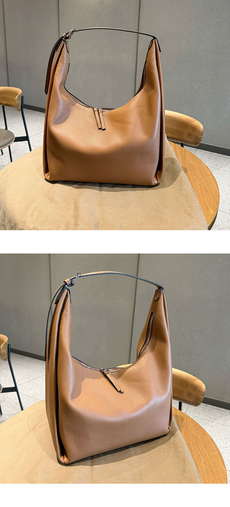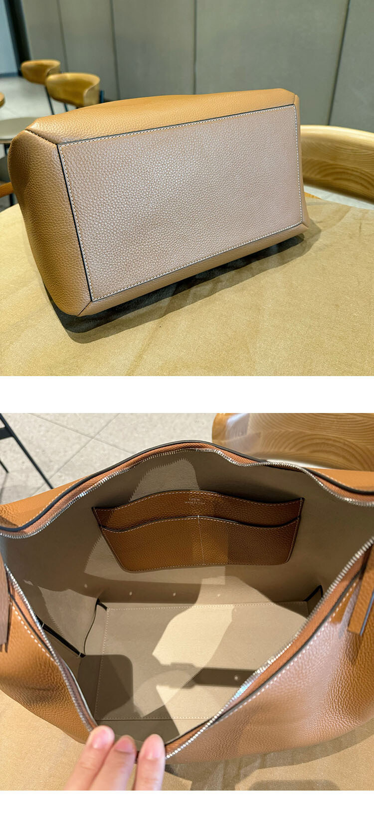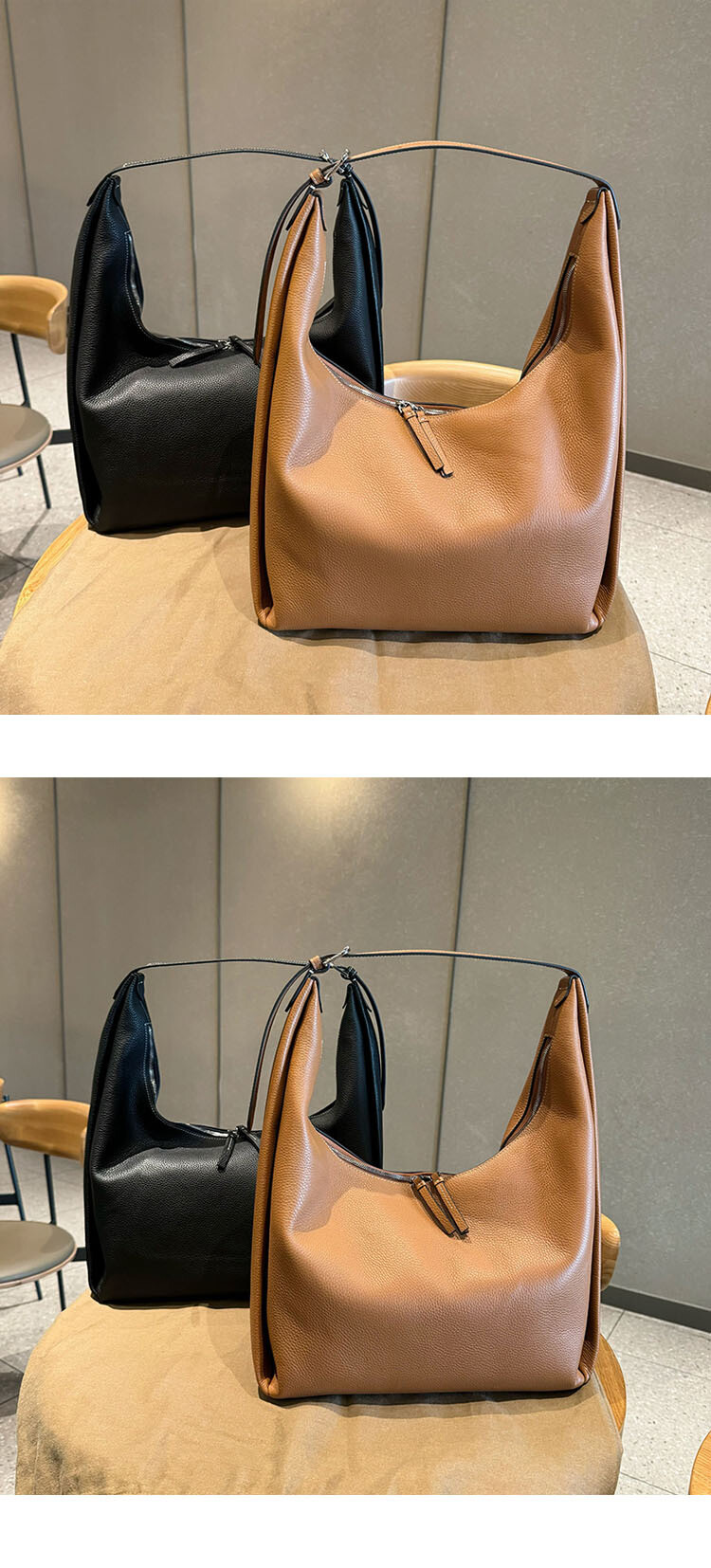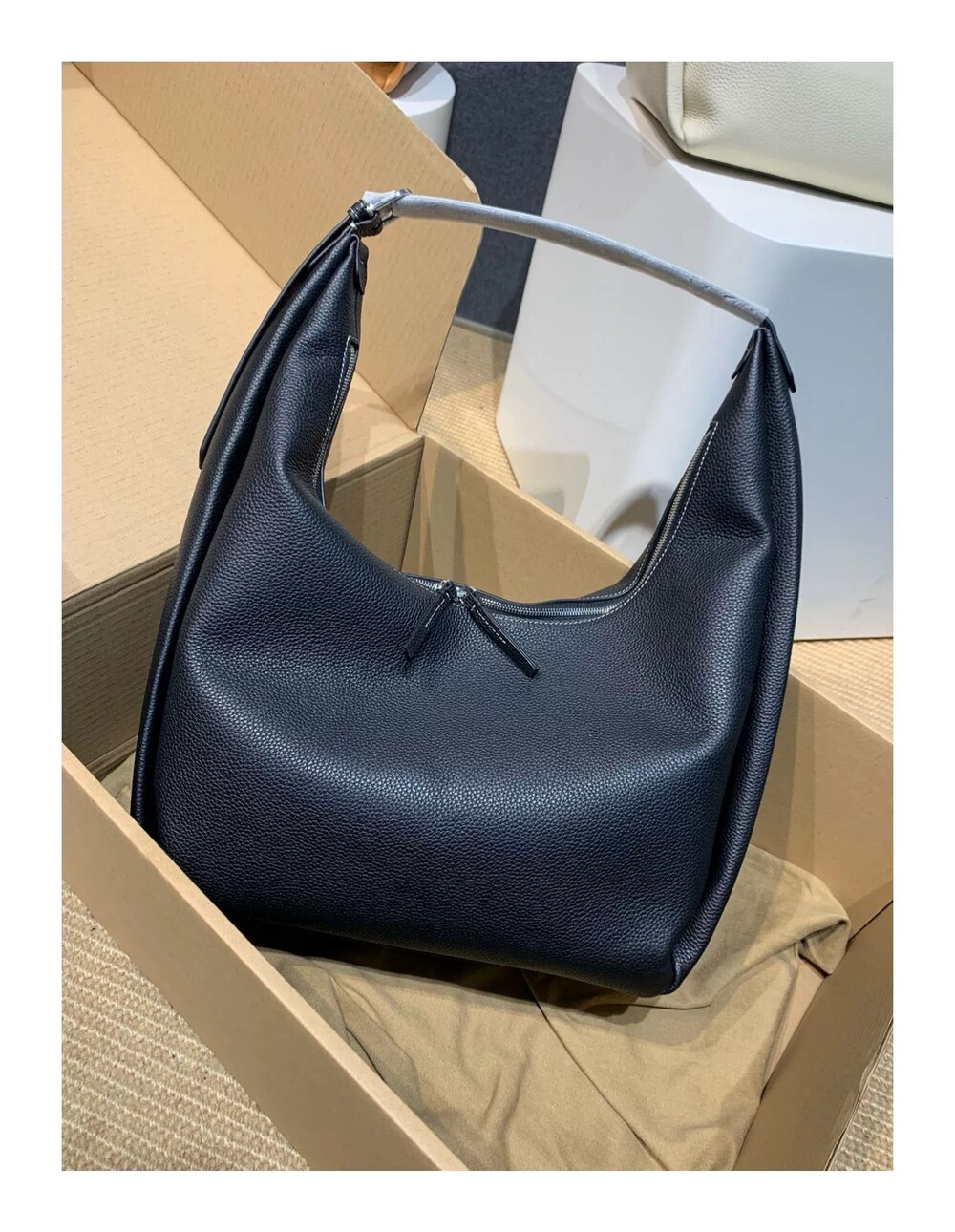 TOT*토트 백으로 타임리스 컬렉션에 우아함을 더해보세요. 페블 그레인 질감의 블랙 가죽으로 제작된 이 토트 백은 양방향 지퍼로 잠그는 스타일로 버클로 조절 가능한 핸들 스트랩과 함께 합니다.