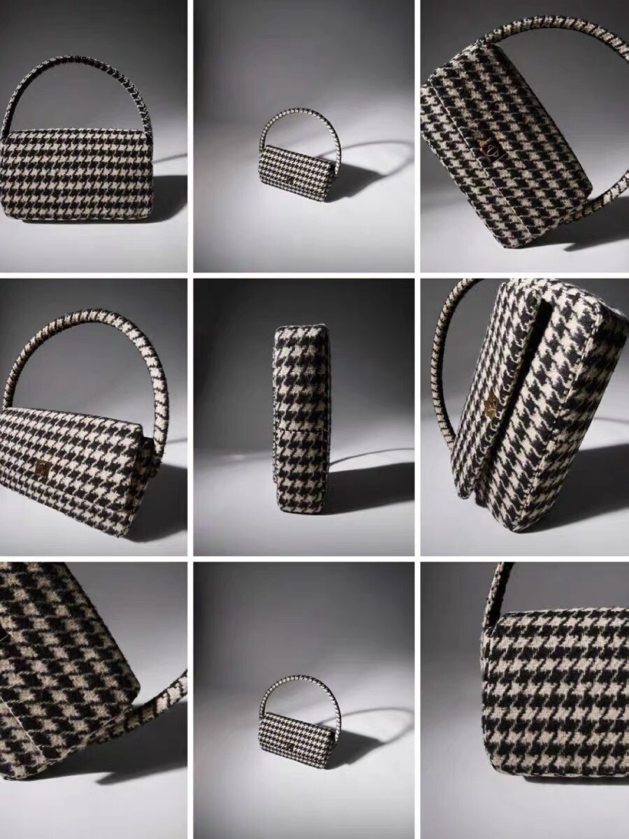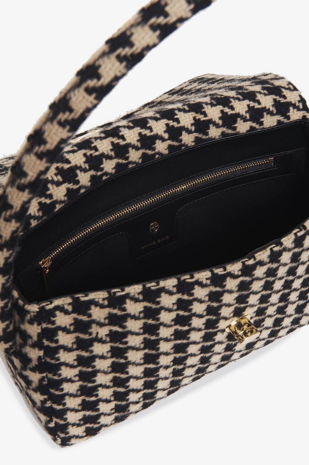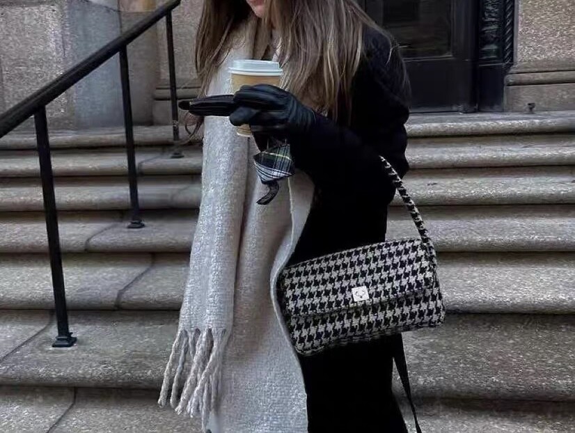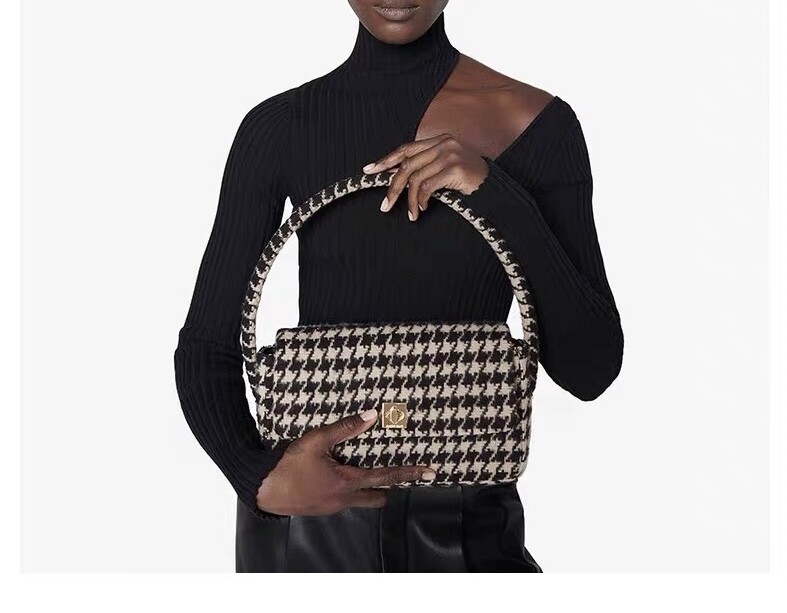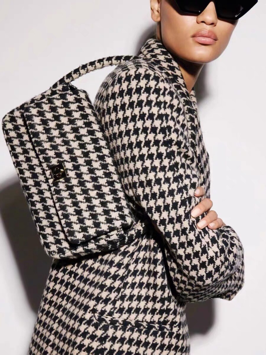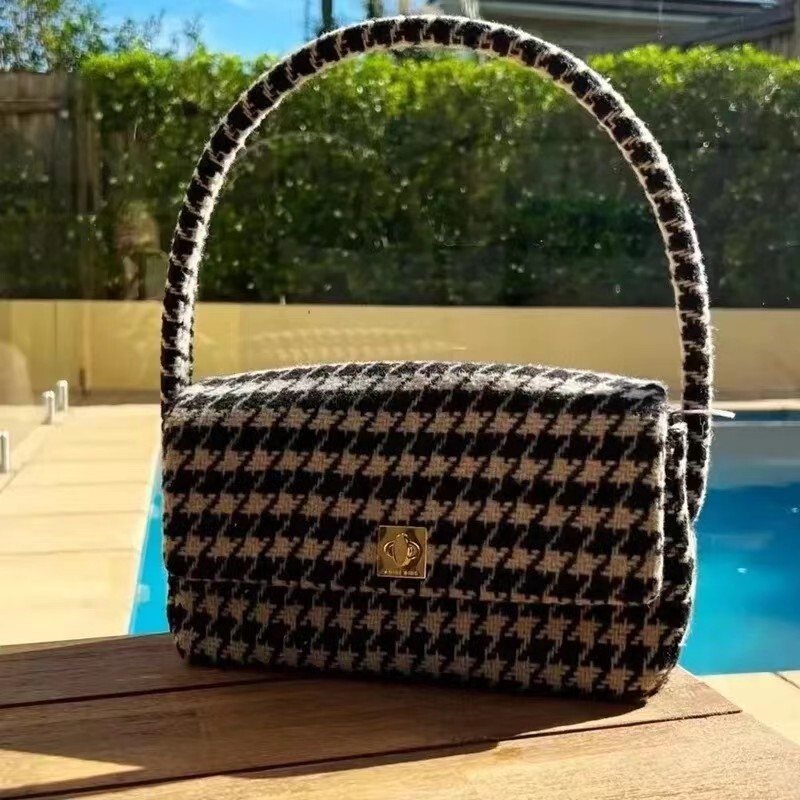 체크 패턴, 핸드백으로 연출, 신 스트랩, 내부 지퍼 포켓, 피벗 클로저, 플랩 클로징, 싱글 핸들.