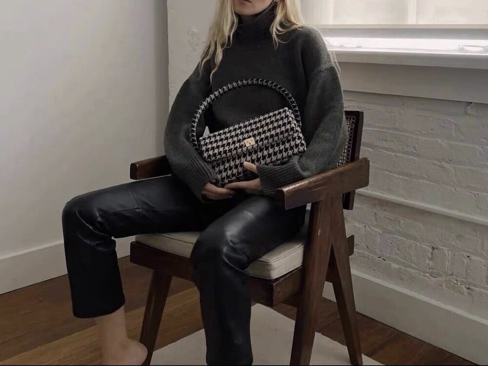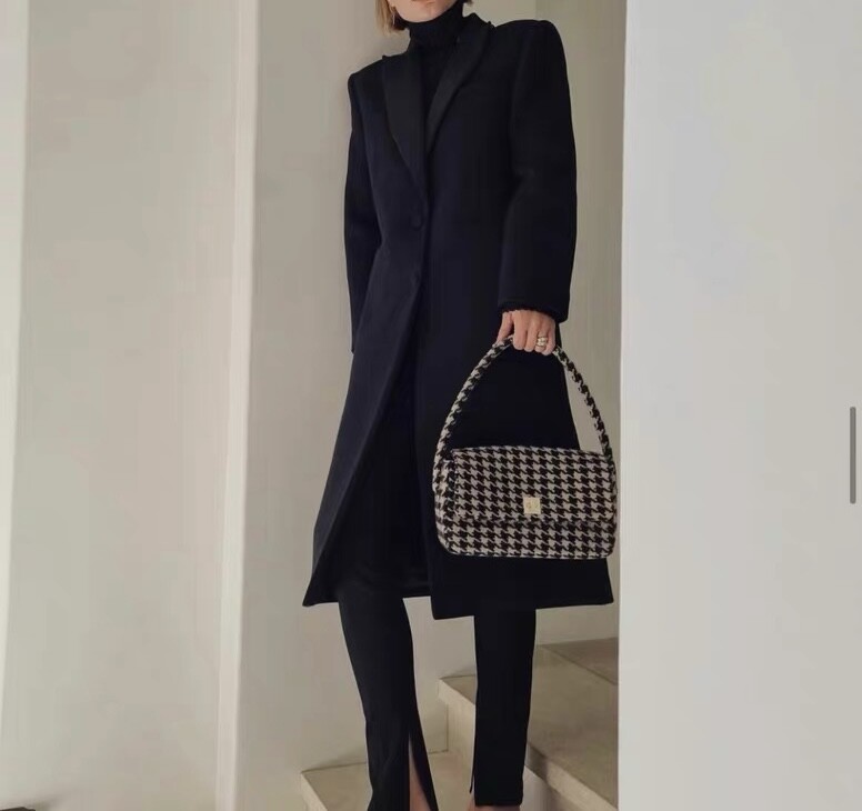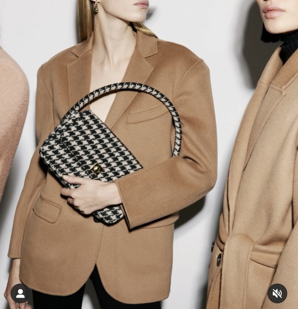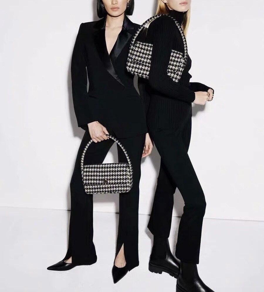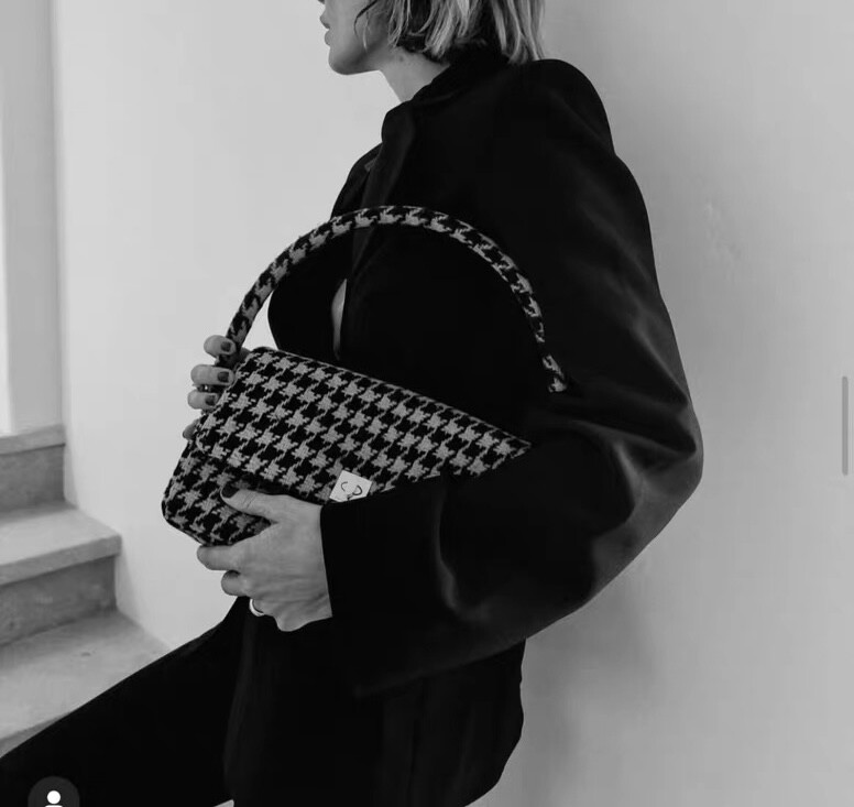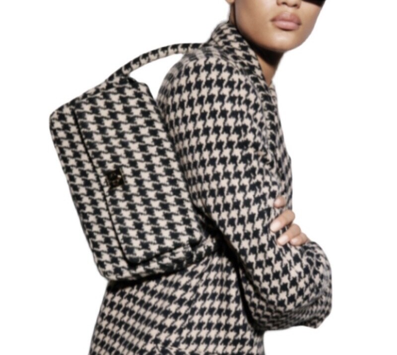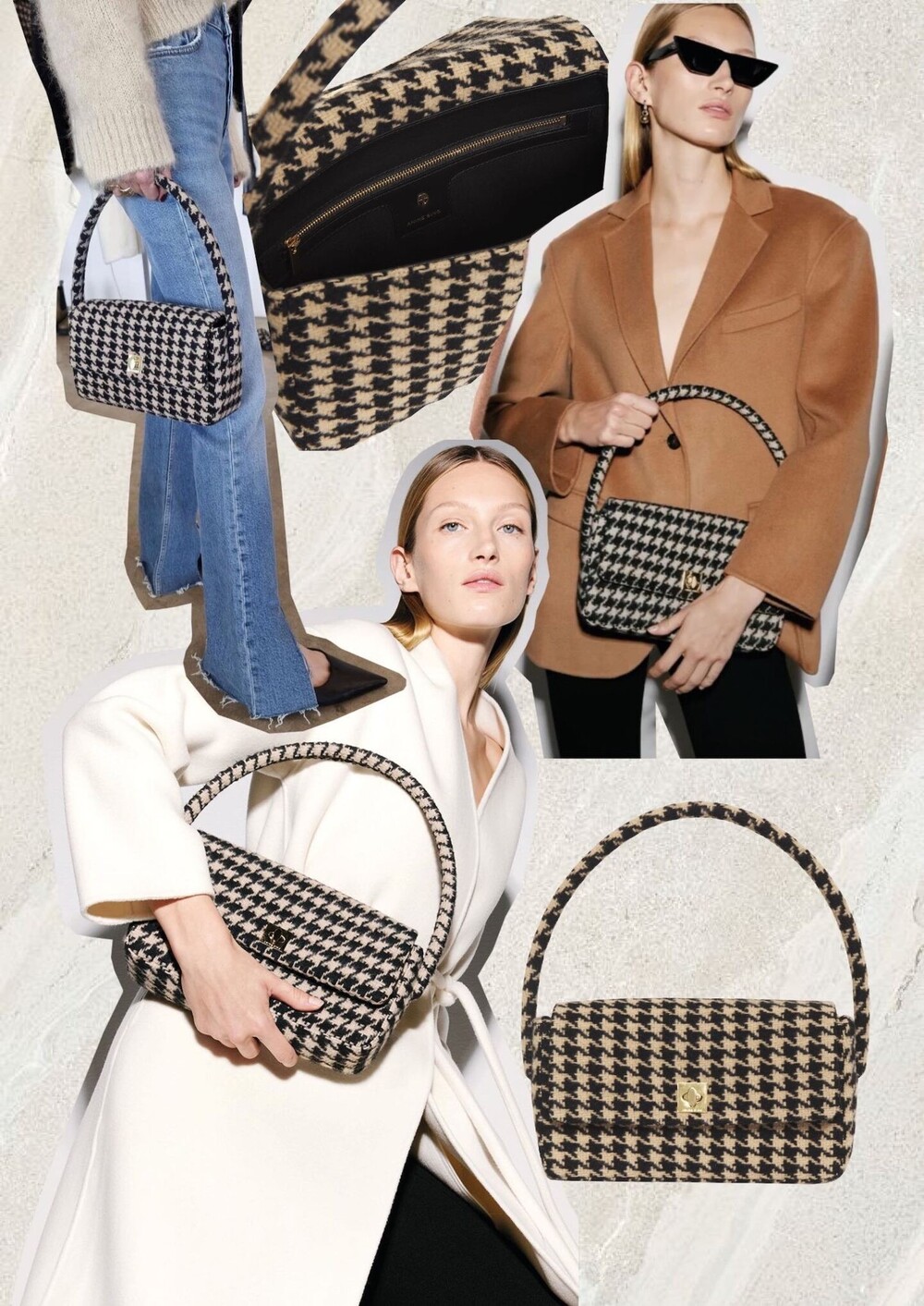 체크 패턴, 핸드백으로 연출, 신 스트랩, 내부 지퍼 포켓, 피벗 클로저, 플랩 클로징, 싱글 핸들.