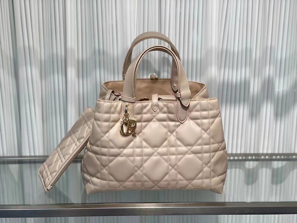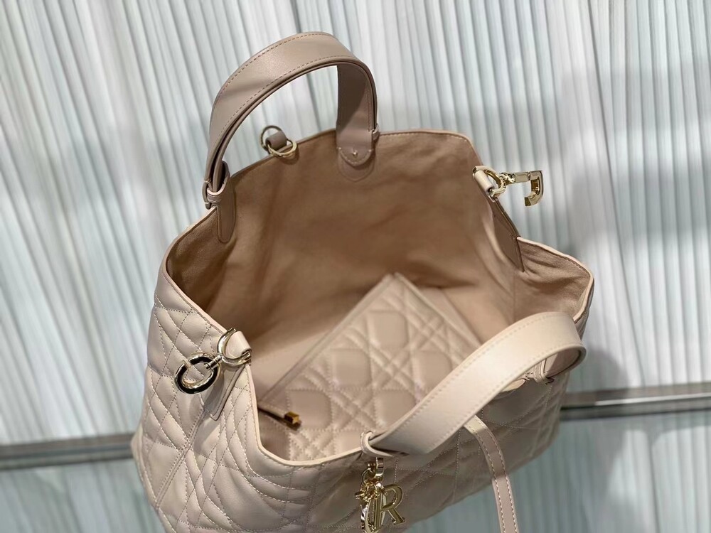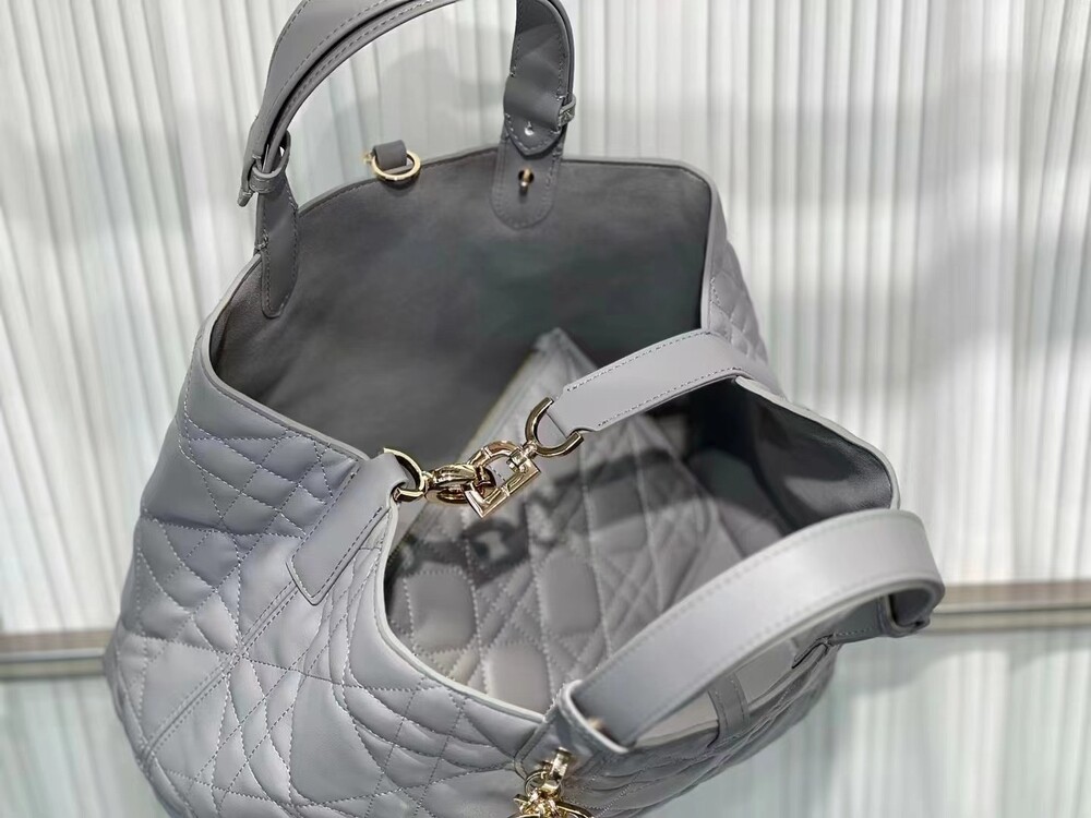 2023 봄-여름 패션쇼에서 공개된 Di*백은 캐주얼하고 실용적인 디자인이 특징입니다. 블랙 카프스킨과 마크로칸나쥬 탑스티치로 제작된 이 시계는 넉넉한 내부 수납 공간과 어울리는 파우치로 필수품을 정리할 수 있습니다. 가죽 스트랩으로 아이템을 안전하게 고정할 수 있으며, 락 클로저의 D가 비틀어 측면을 조정하고 가방의 실루엣을 돋보이게 합니다. 가죽 손잡이는 작은 노치를 사용하여 조절할 수 있어 미디엄 백을 손으로 들고 다니거나 어깨에 메고 다닐 수 있습니다.