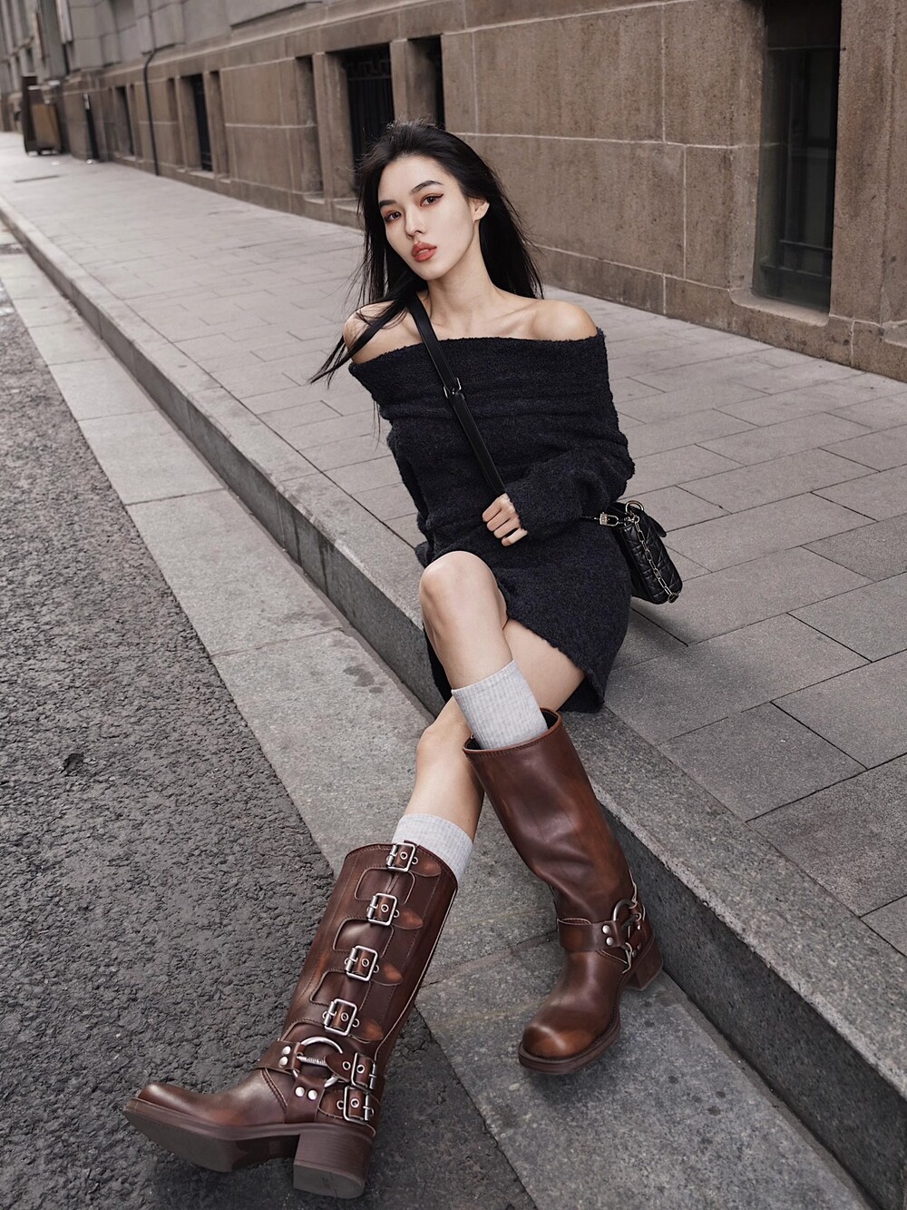 "MIU * 바이커 버클 부츠"