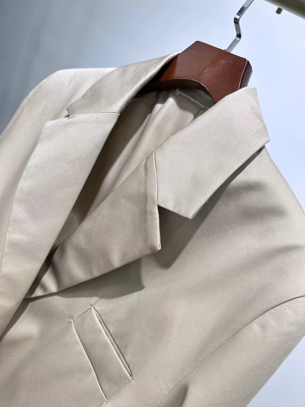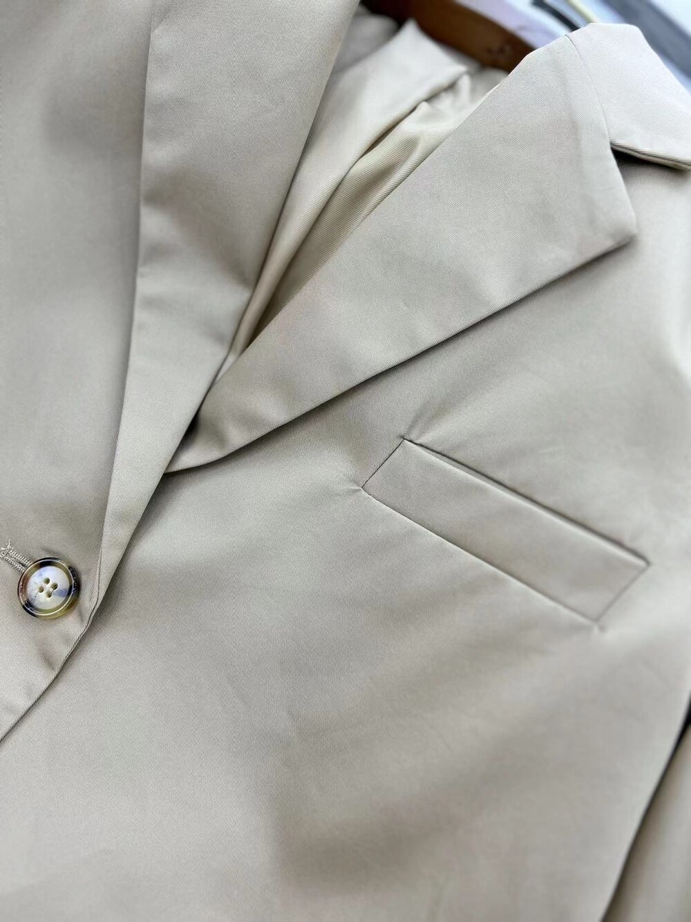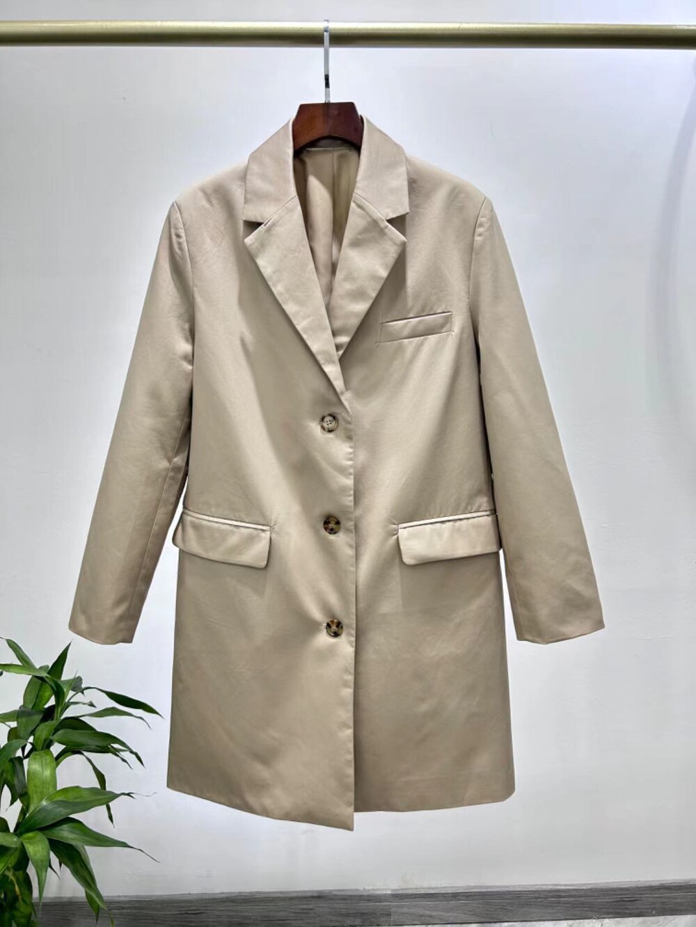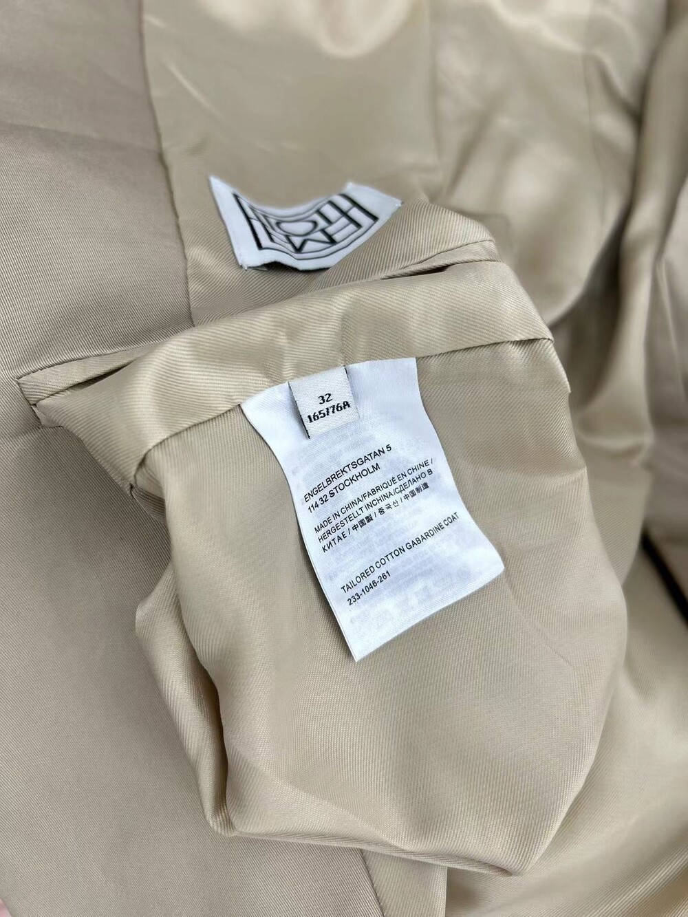 코튼 개버딘 코트. • 노치 라펠 · 버튼 여밈. 플랩 포켓. 버튼 4개 소맷단. 내부에 웰트 포켓