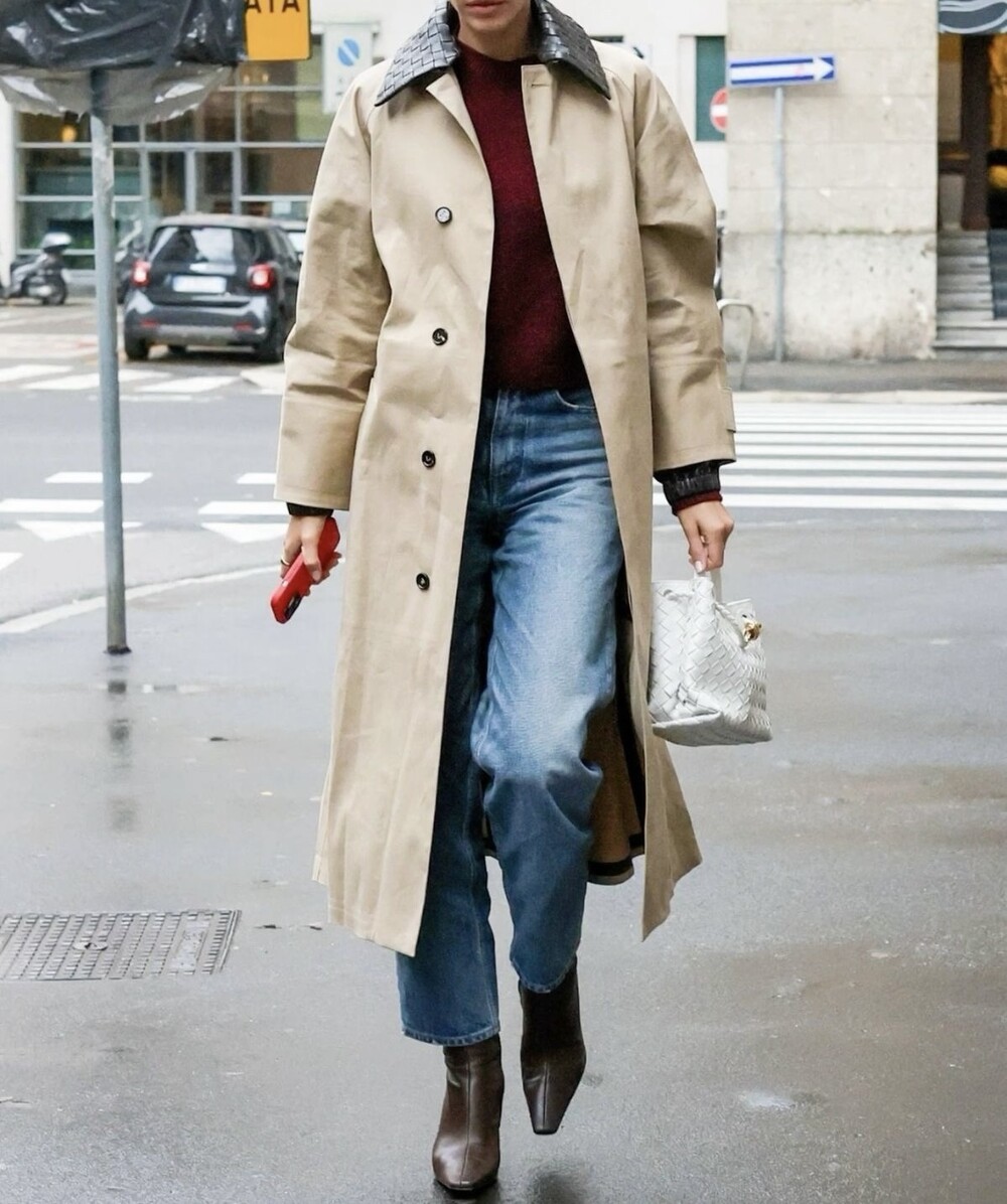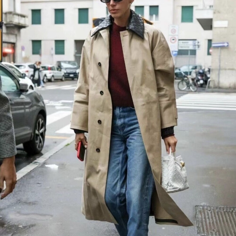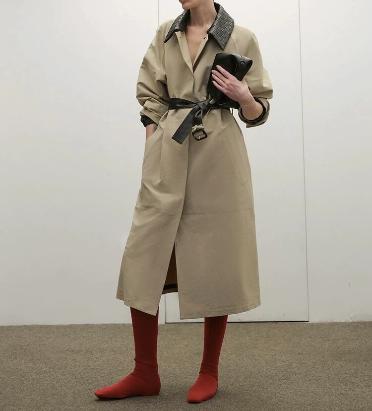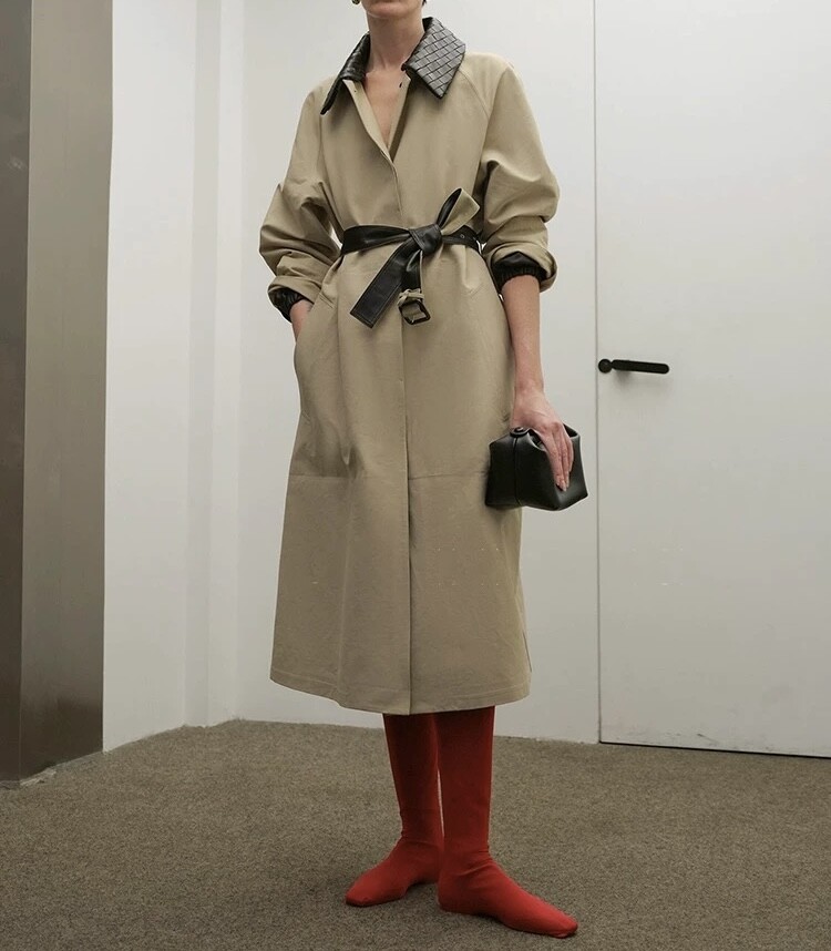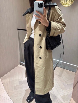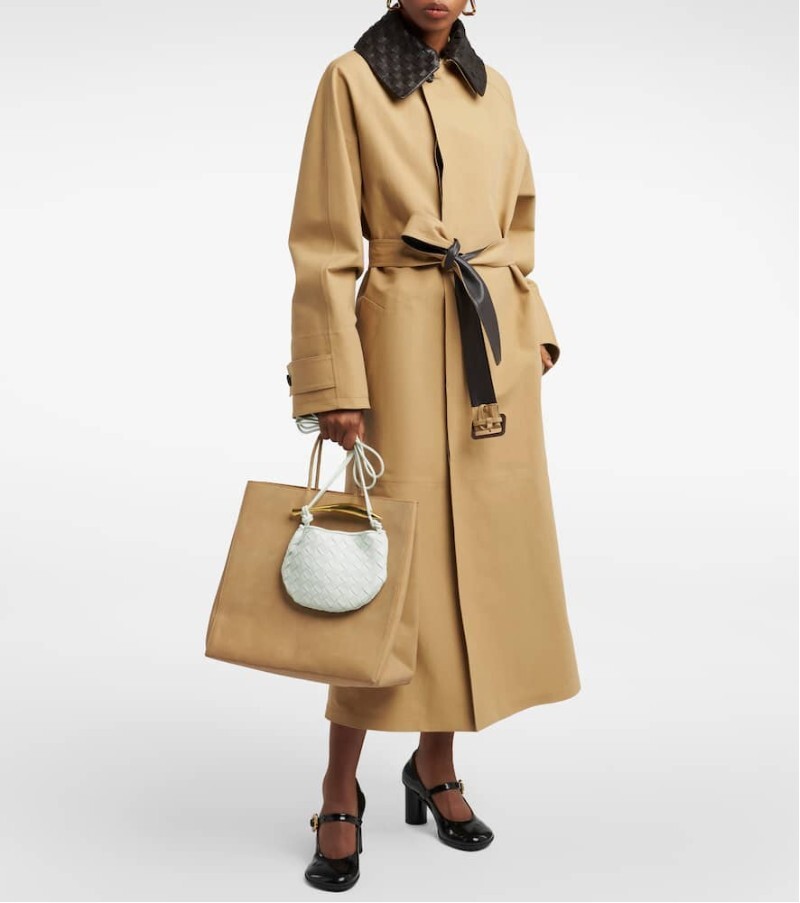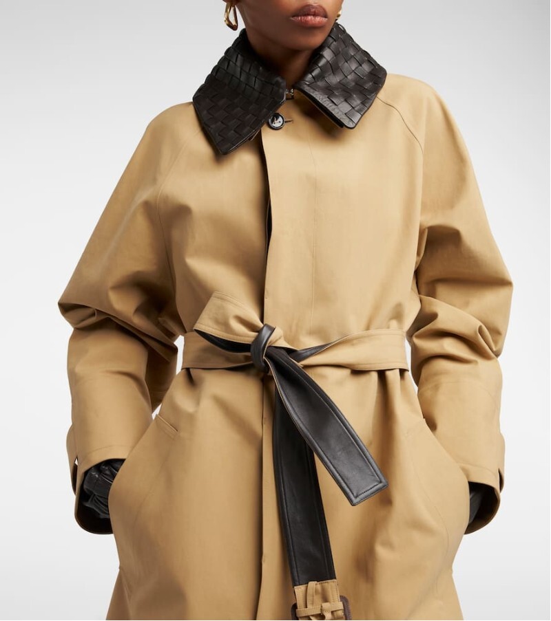 " BV * 가죽 트리밍 롱 트렌치코트"