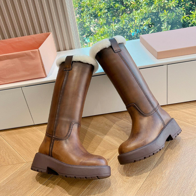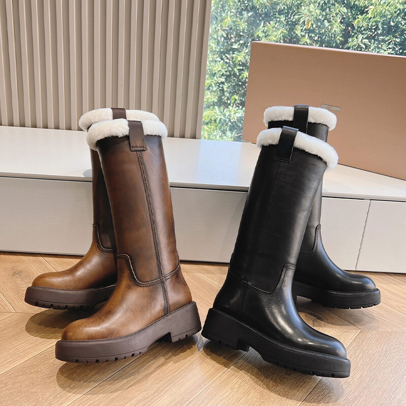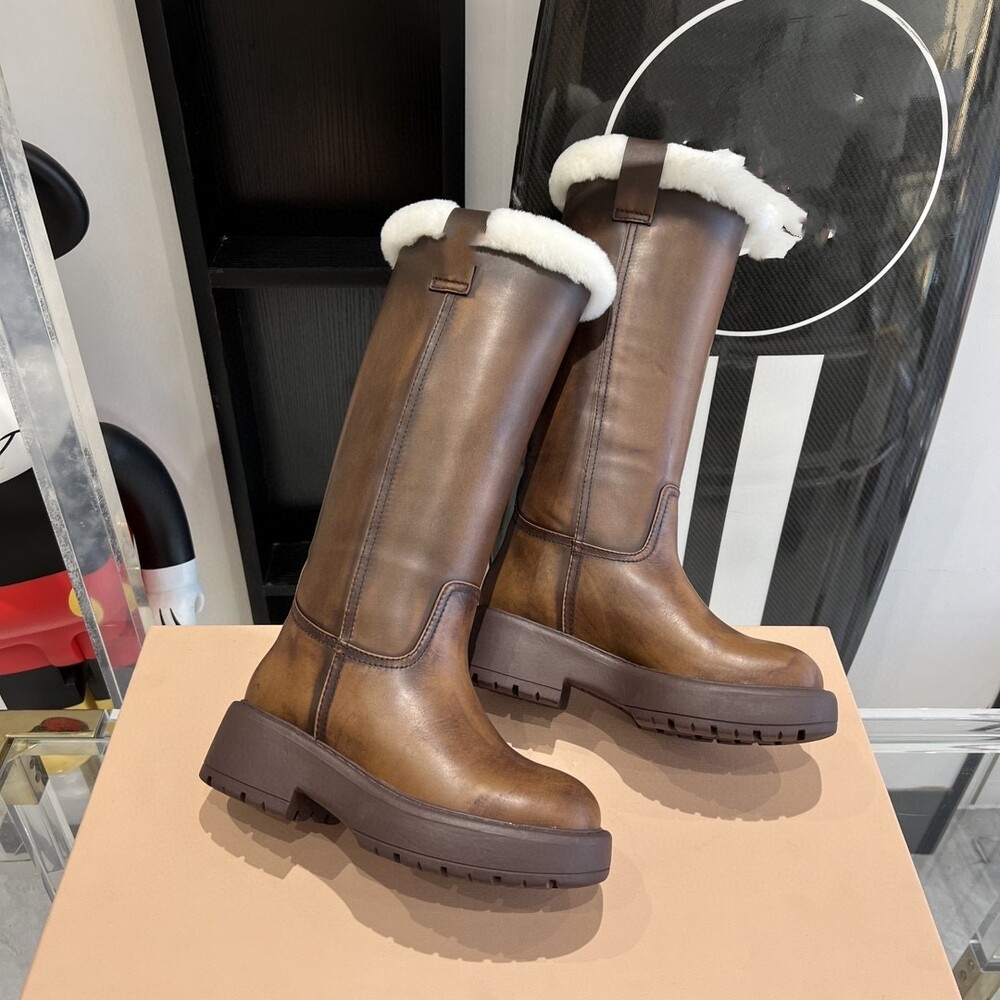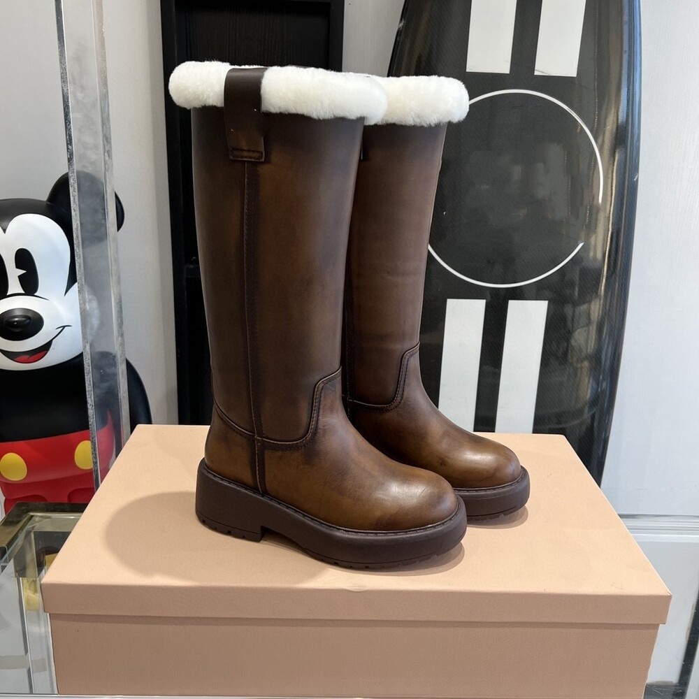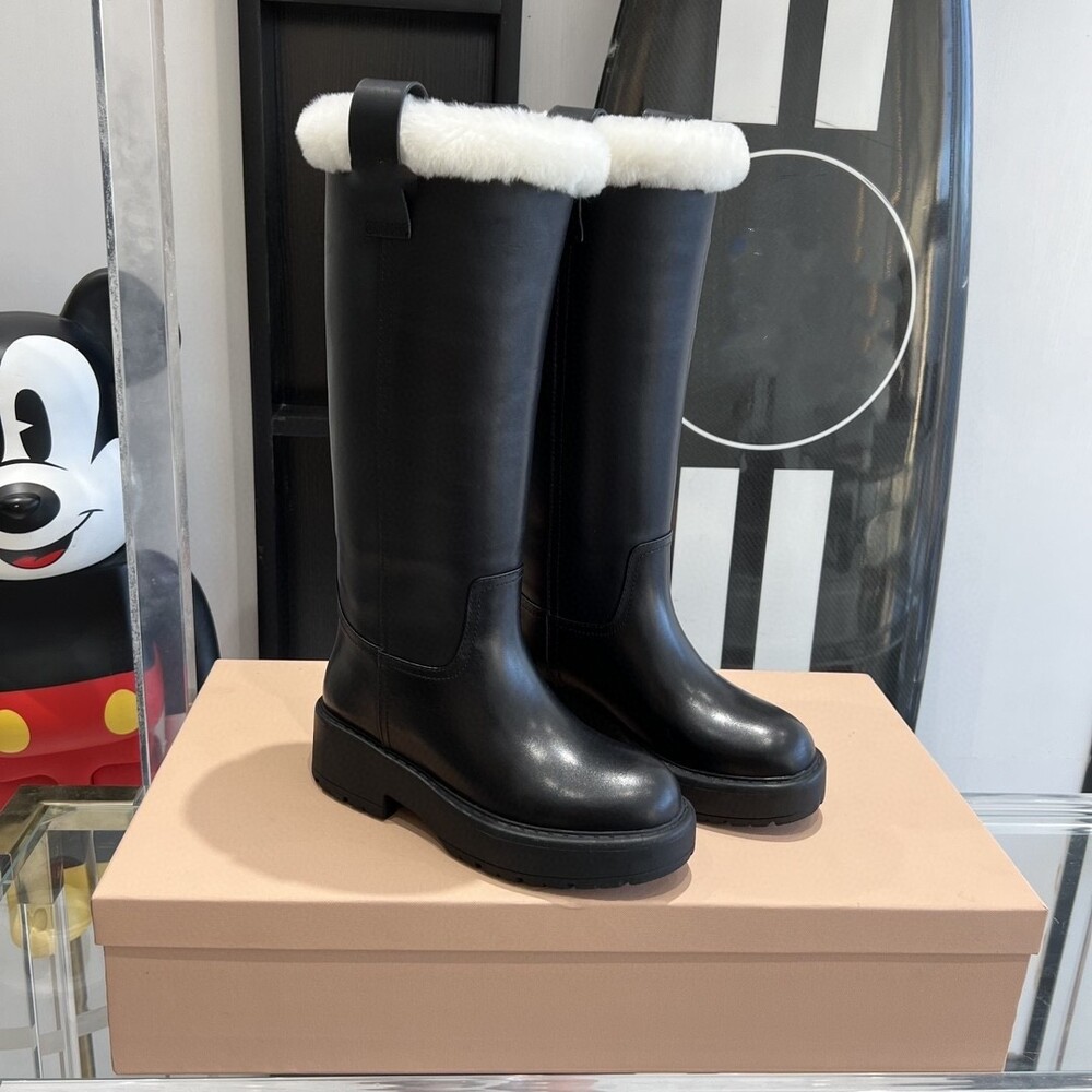 MIU * 시어링 가죽 롱부츠