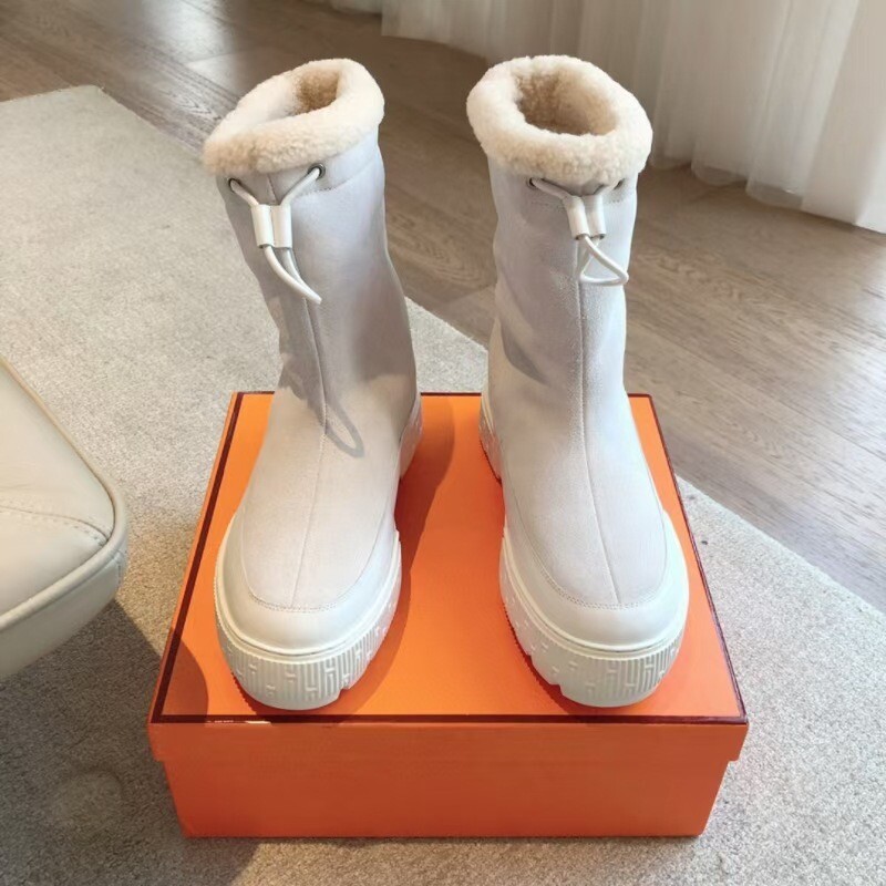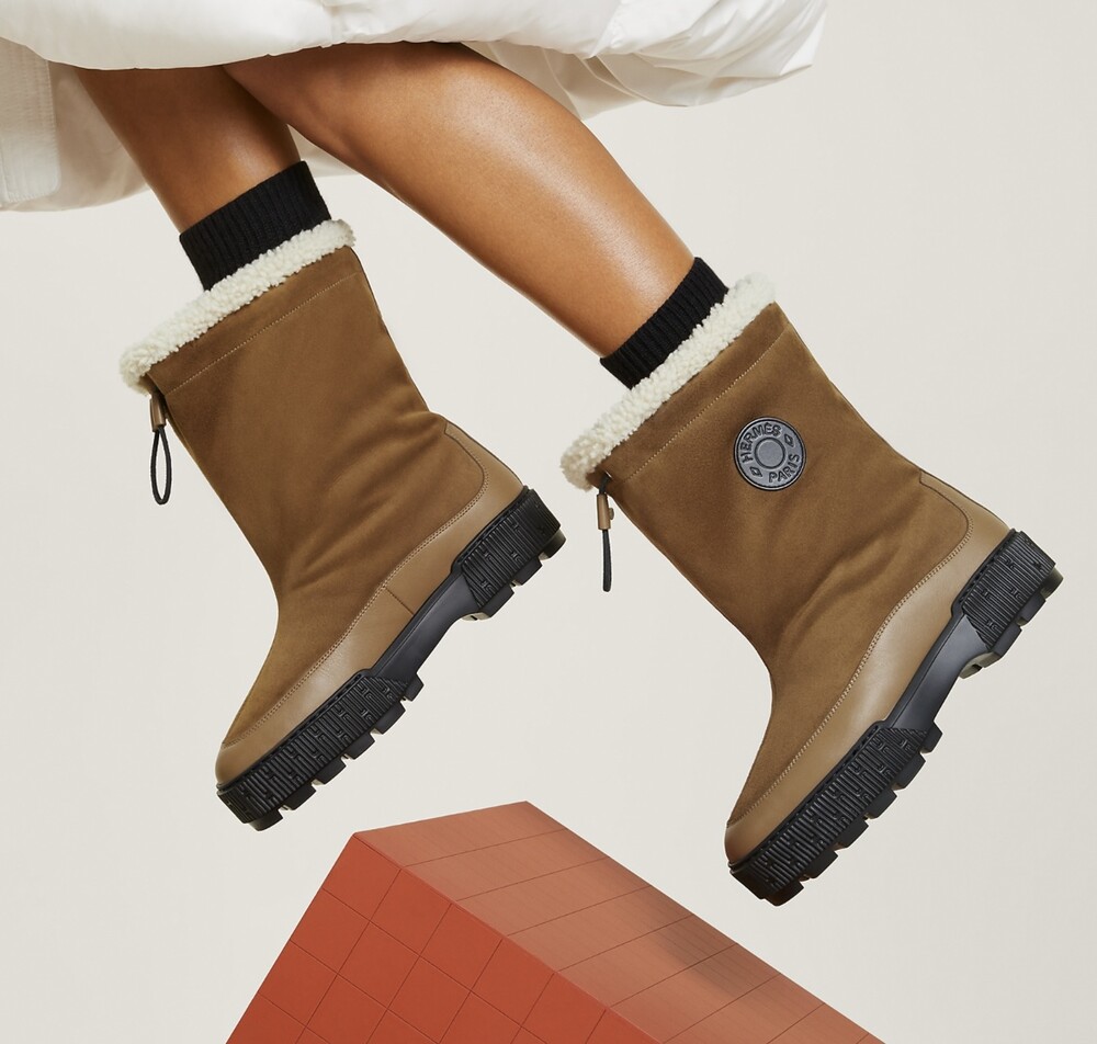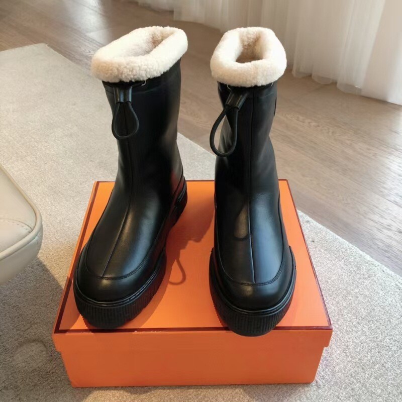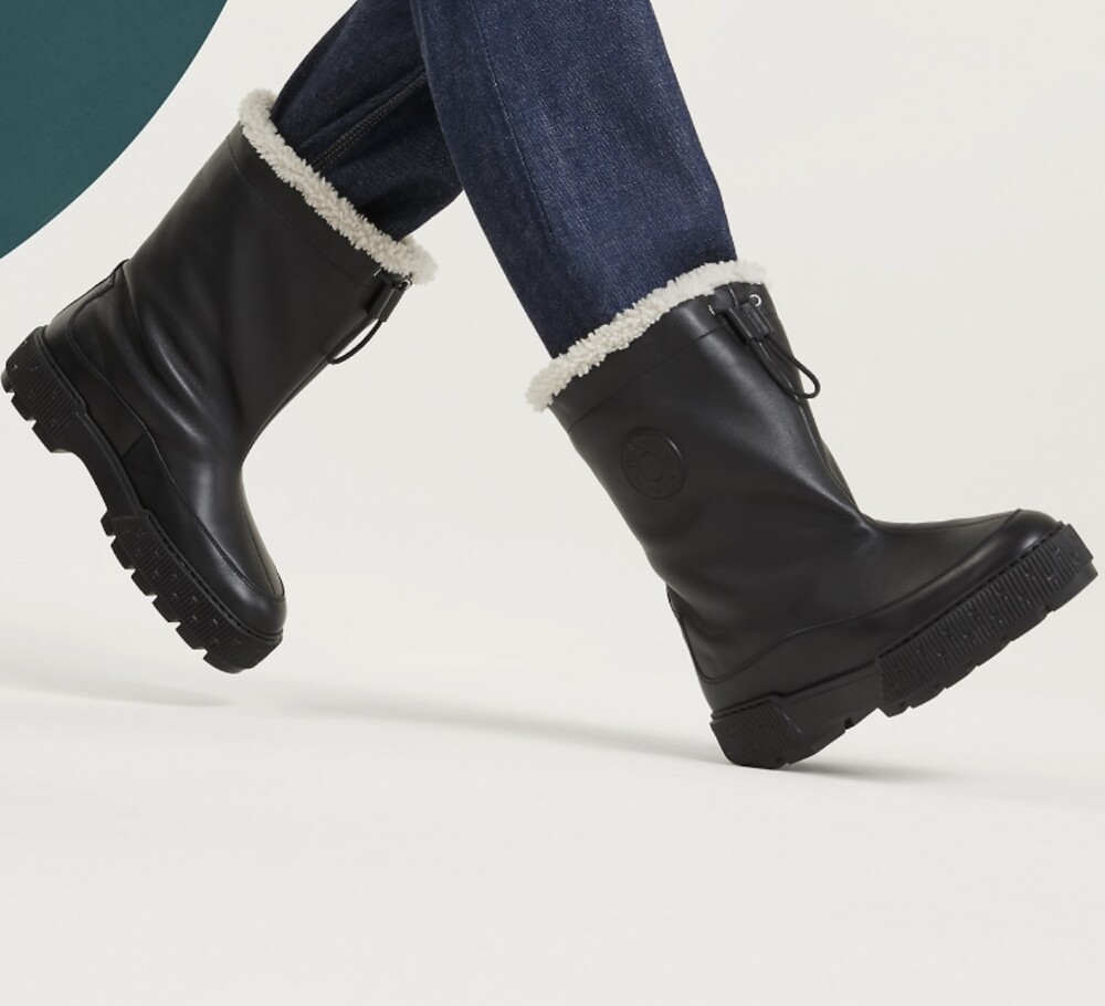 양가죽 안감이 들어간 송아지 가죽 앵클 부츠, 고무 밑창, 매우 편안한 착용감과 야외 룩으로 추천