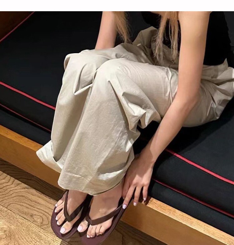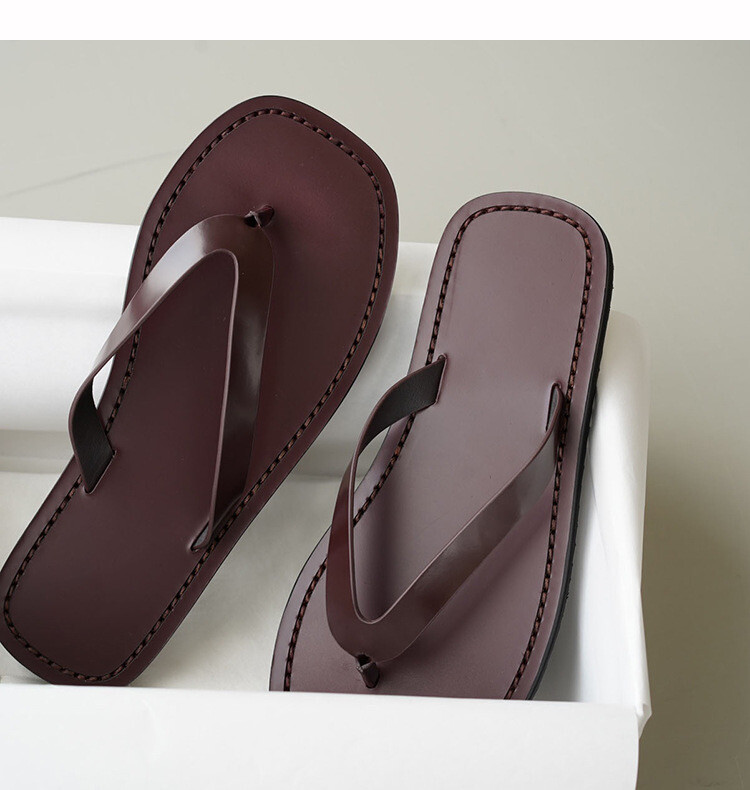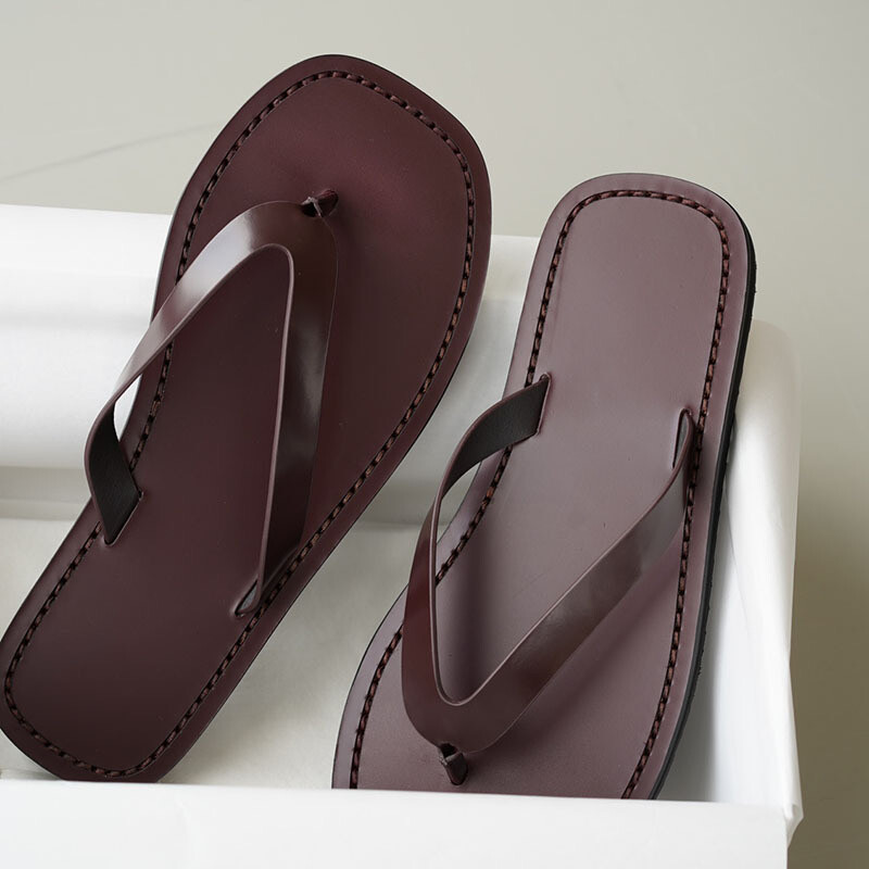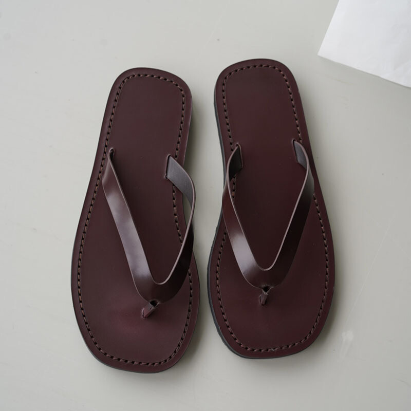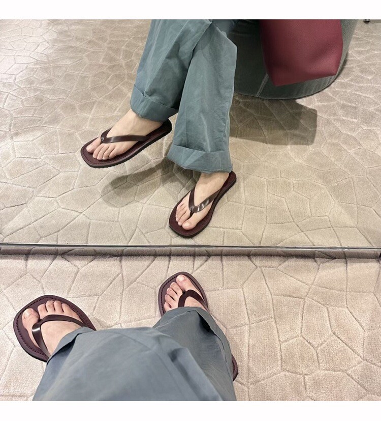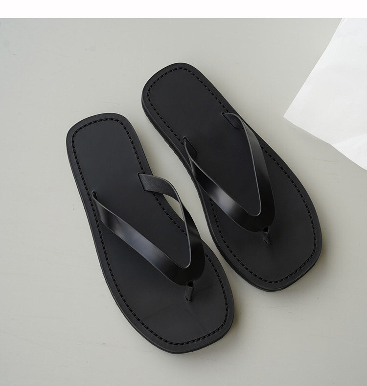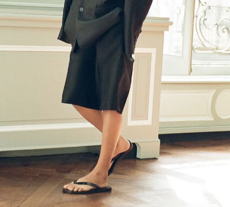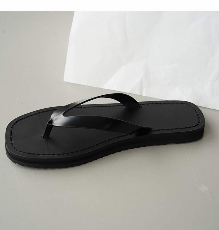 네모난 오픈 토 디자 인에 얇은 끈으로 발등을 감싸는 thong-style 스타일입니다
