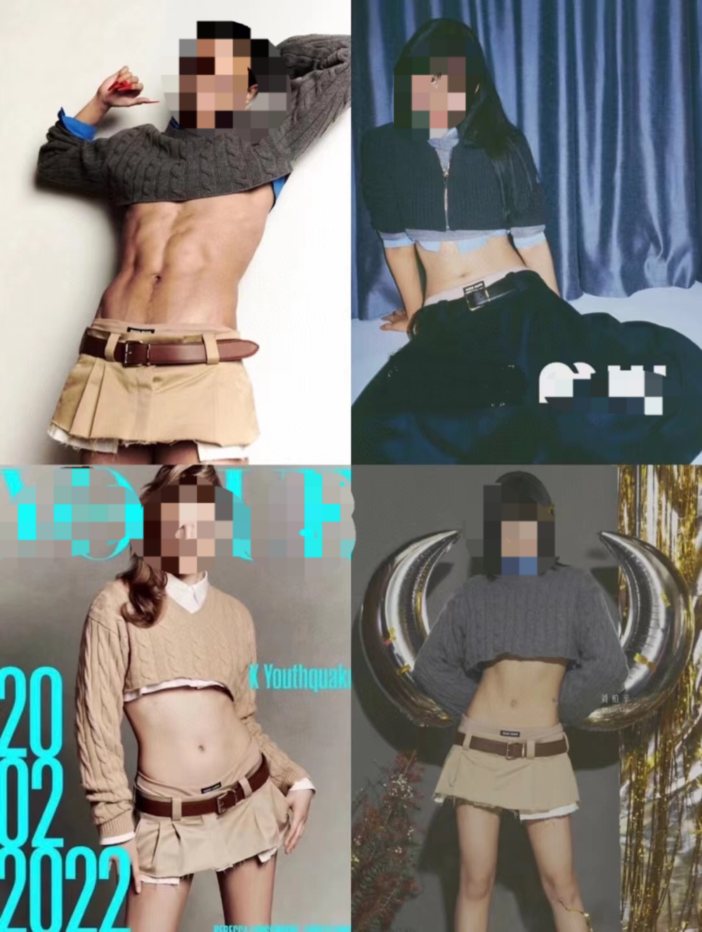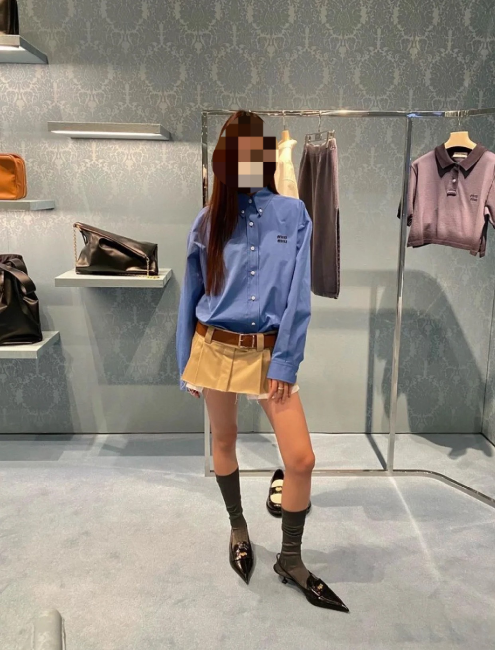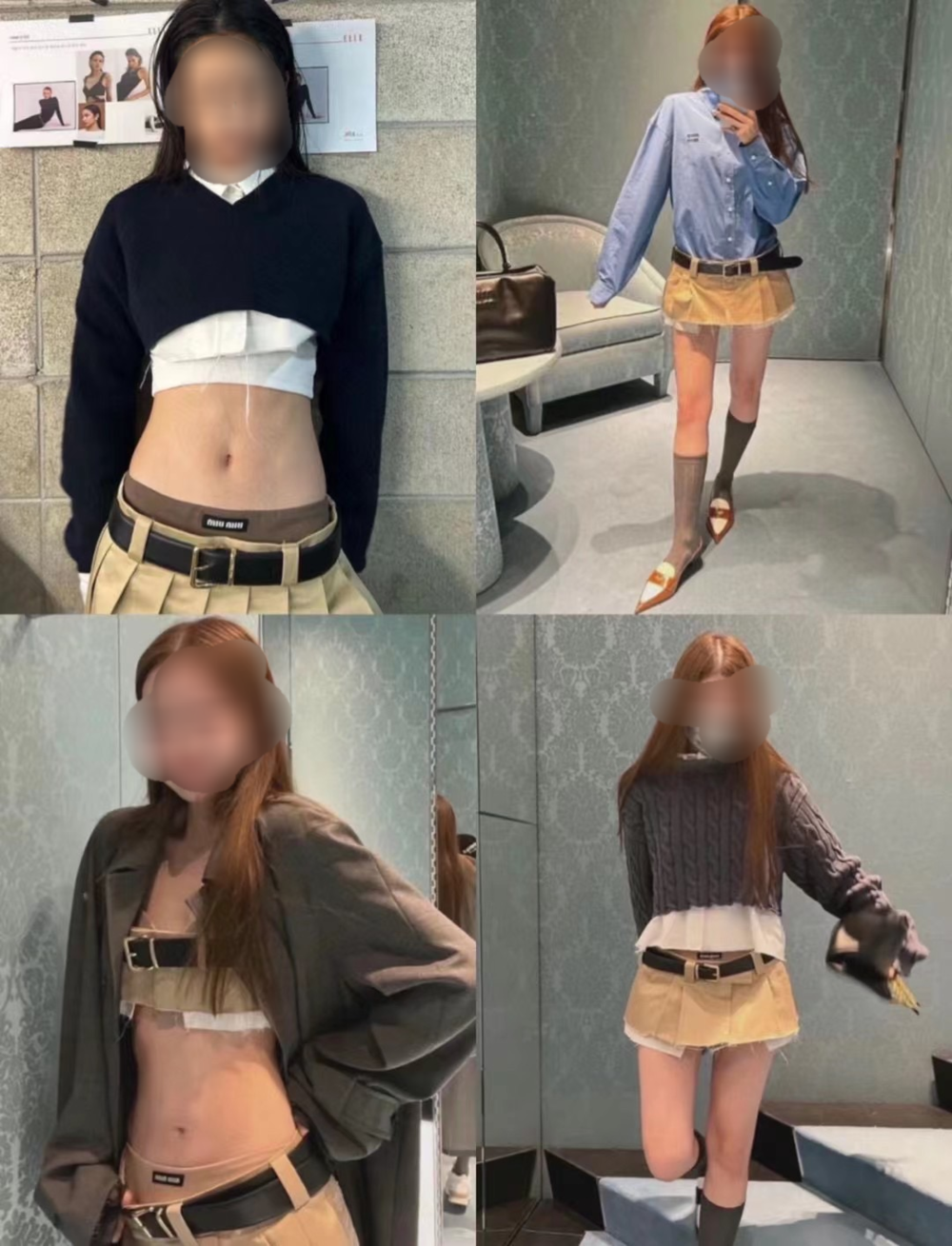 " 2022 S/S 미우 보이프렌트 크롭니트 치노스커트세트 "