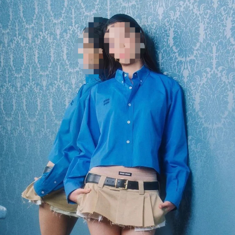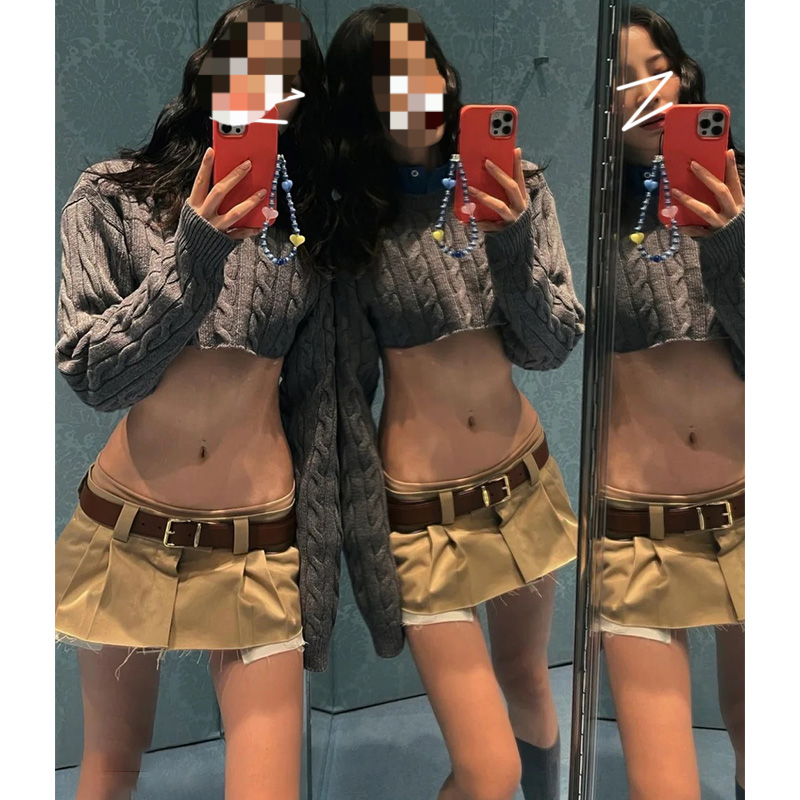 미우 보이프렌드 크롭니트 치노스커트 세트