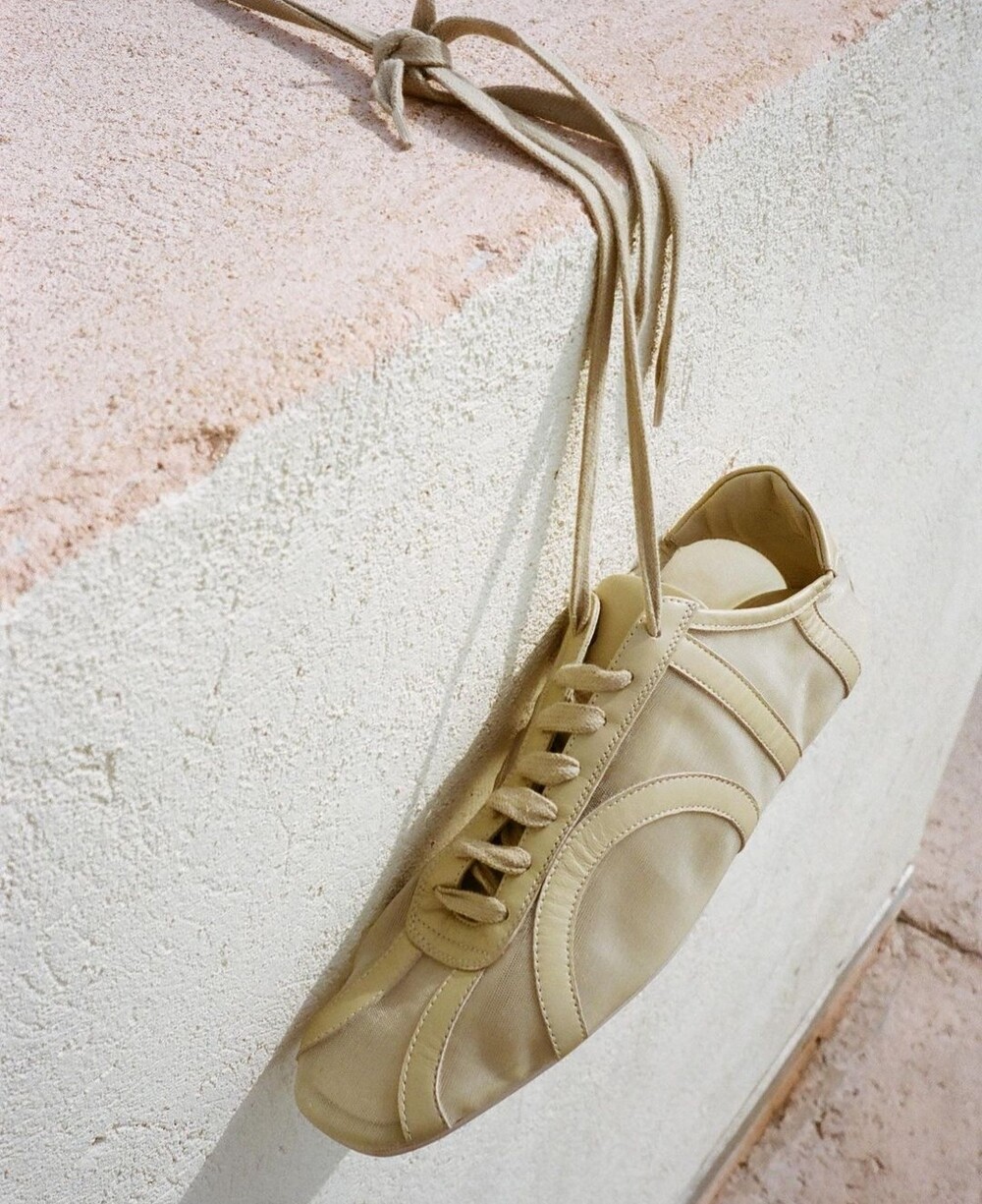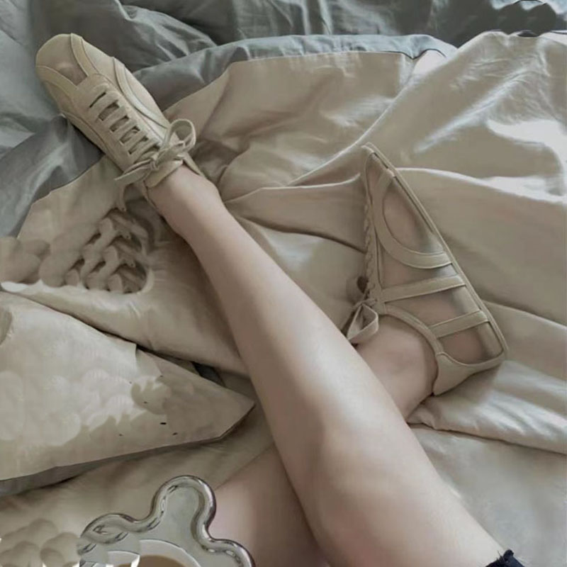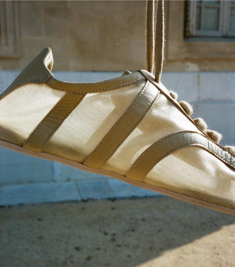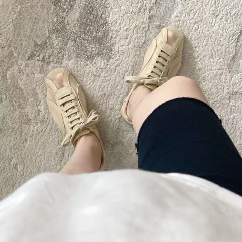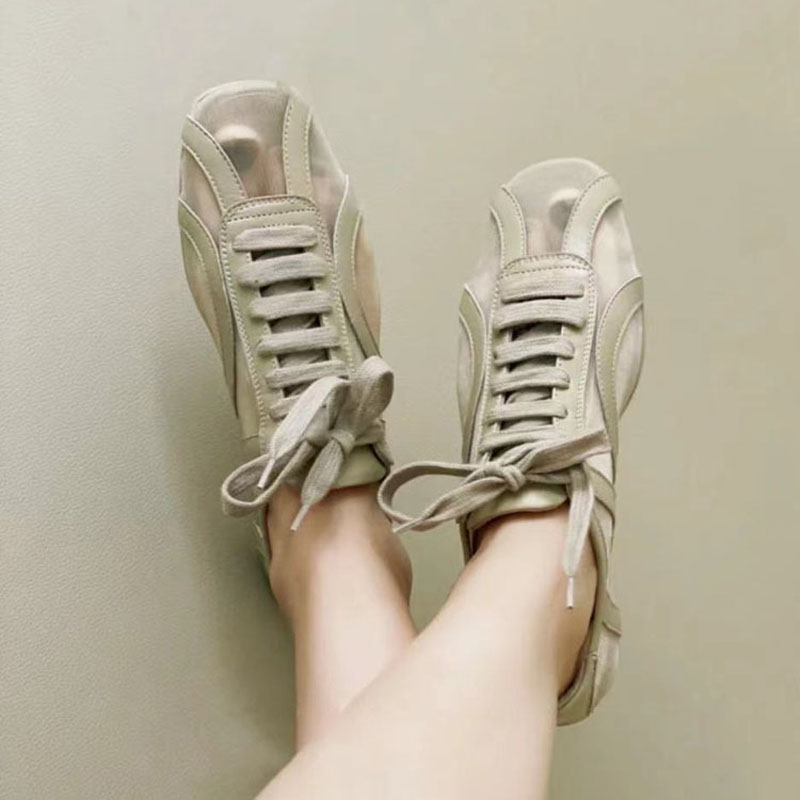 망사소재의 스니커즈로 양가죽과 믹스되어