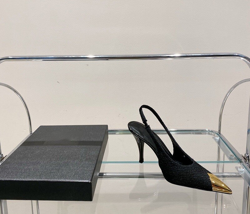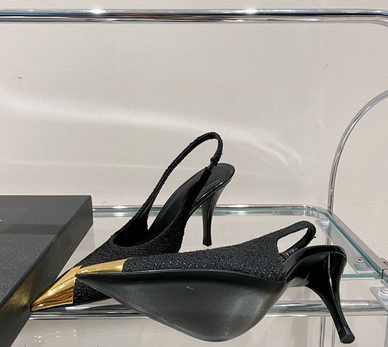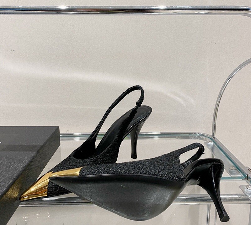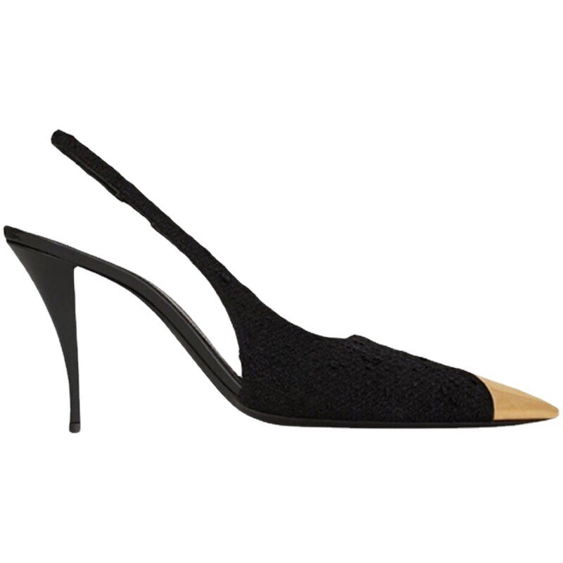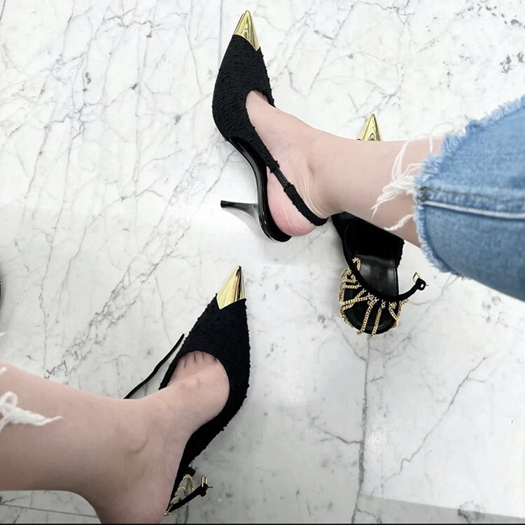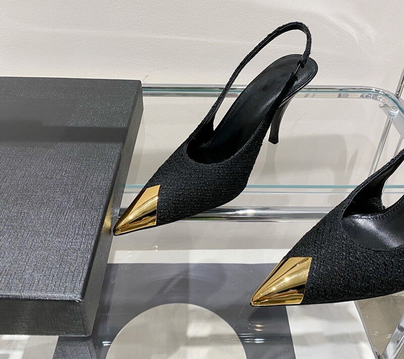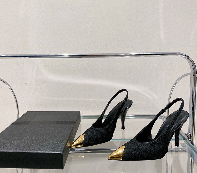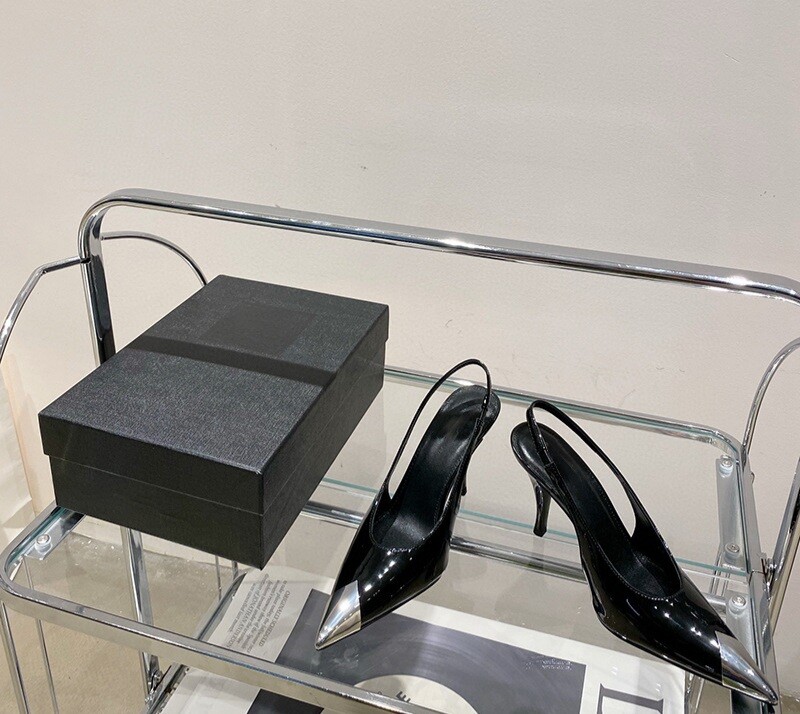 아찔한 스틸레토힐이 다리가 길어 보이며 앞코에 금장장식이 포인트가되어