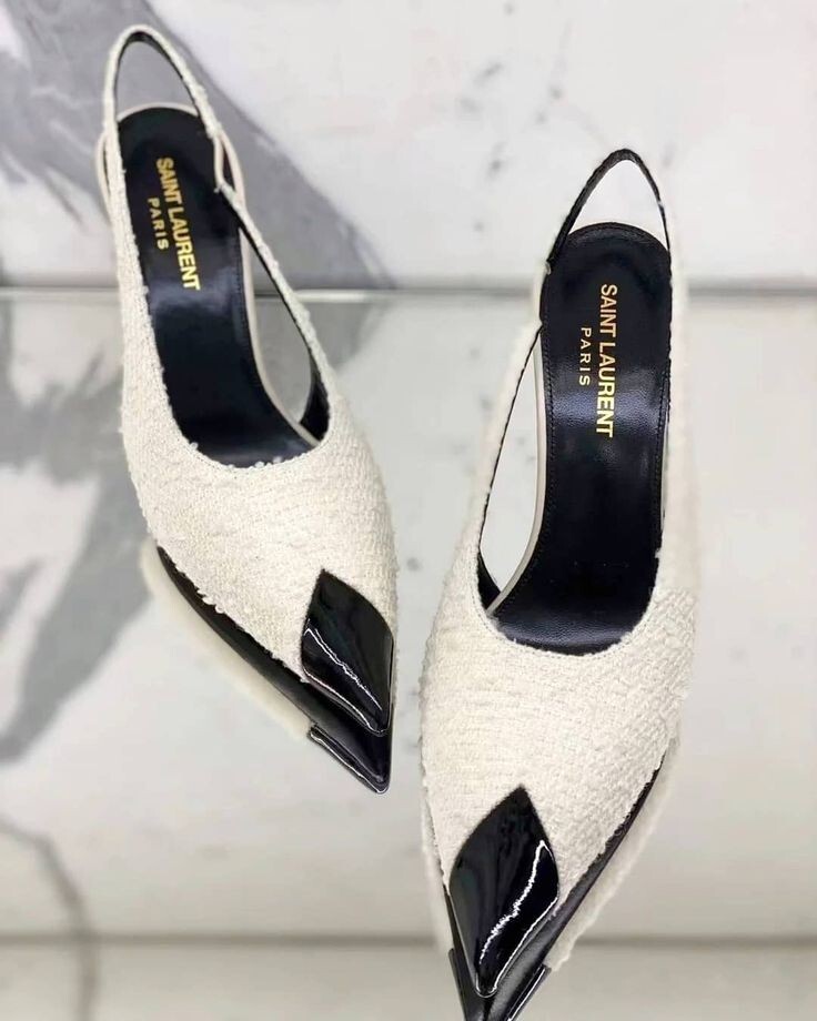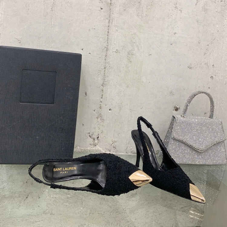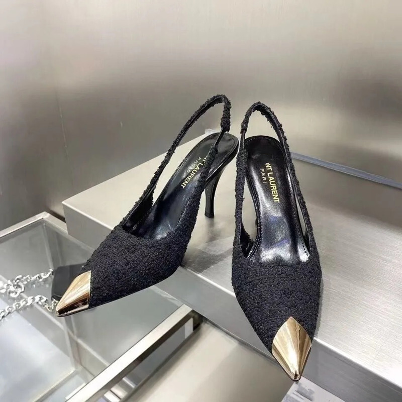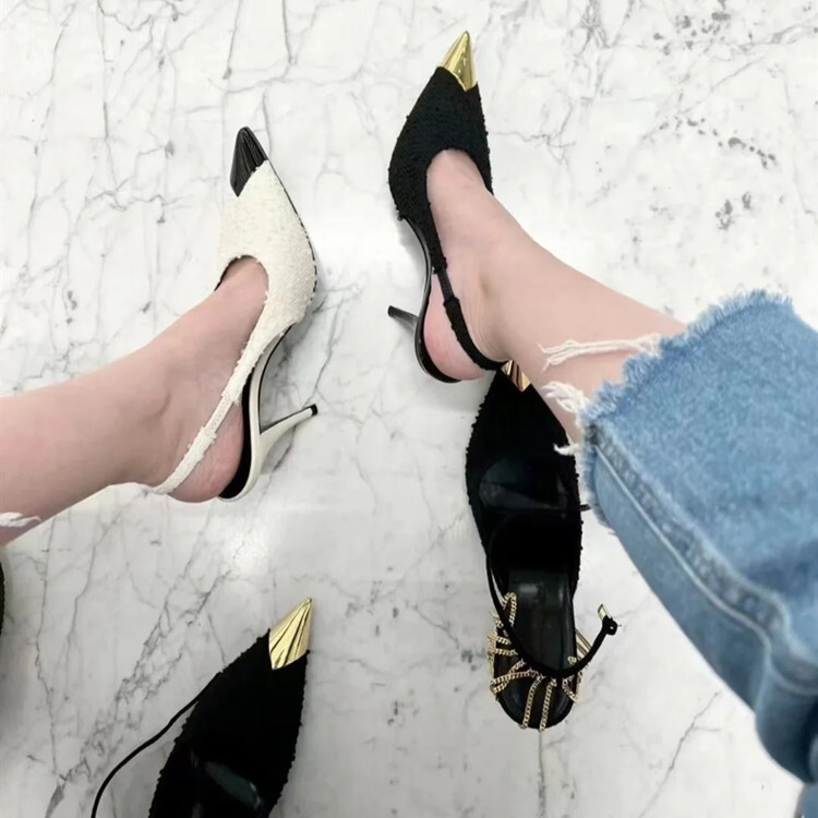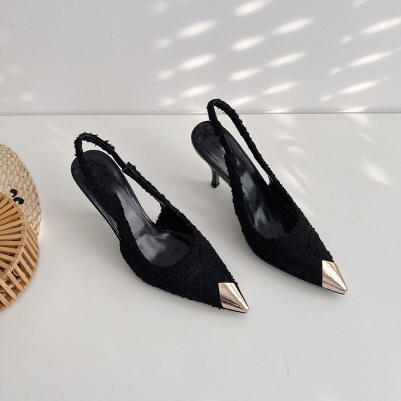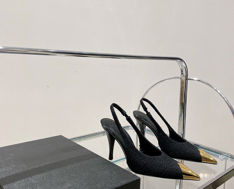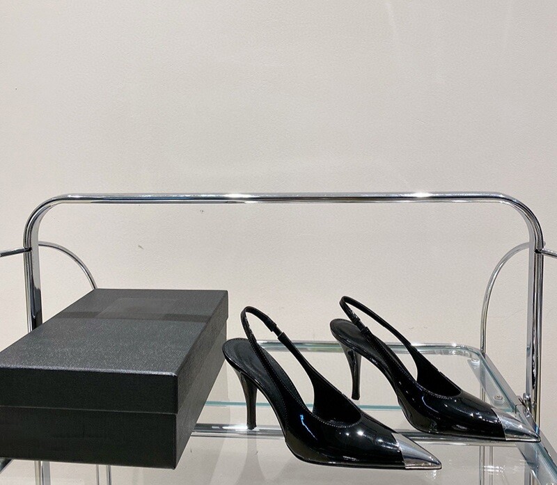 아찔한 스틸레토힐이 다리가 길어 보이며 앞코에 금장장식이 포인트가되어