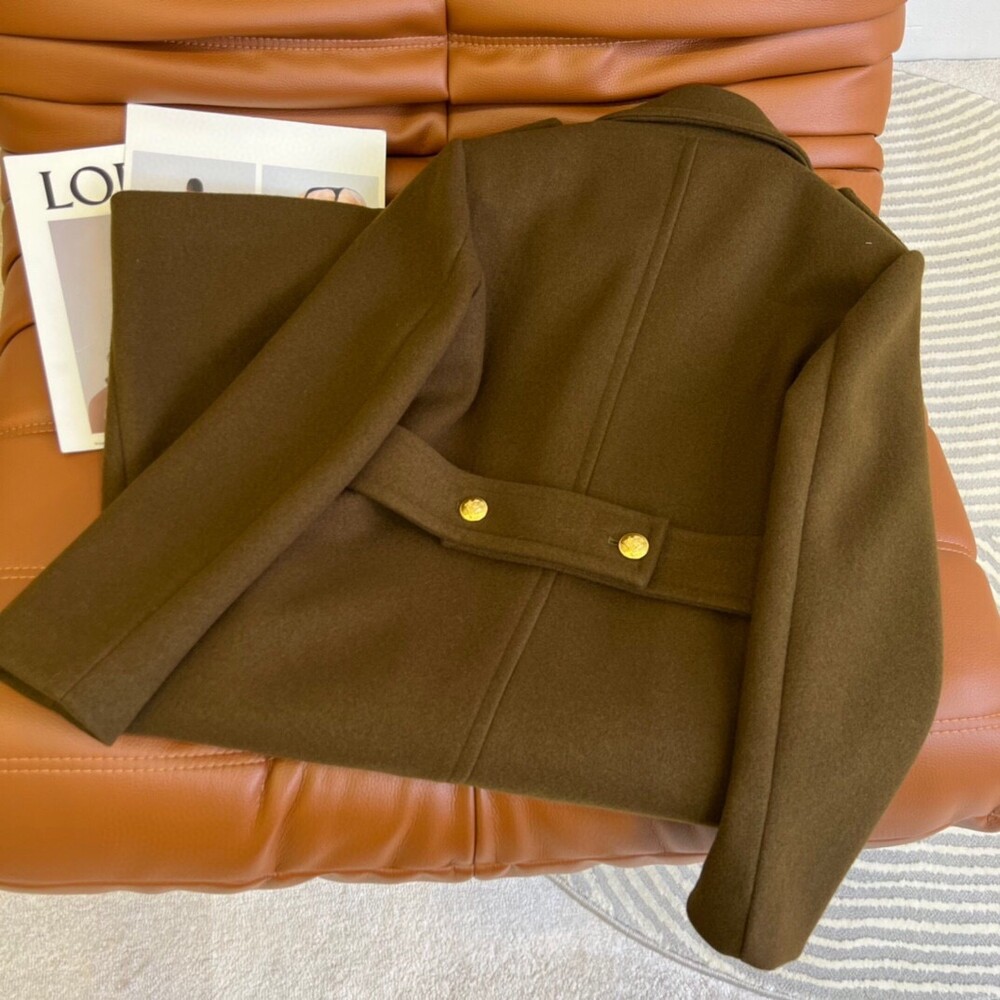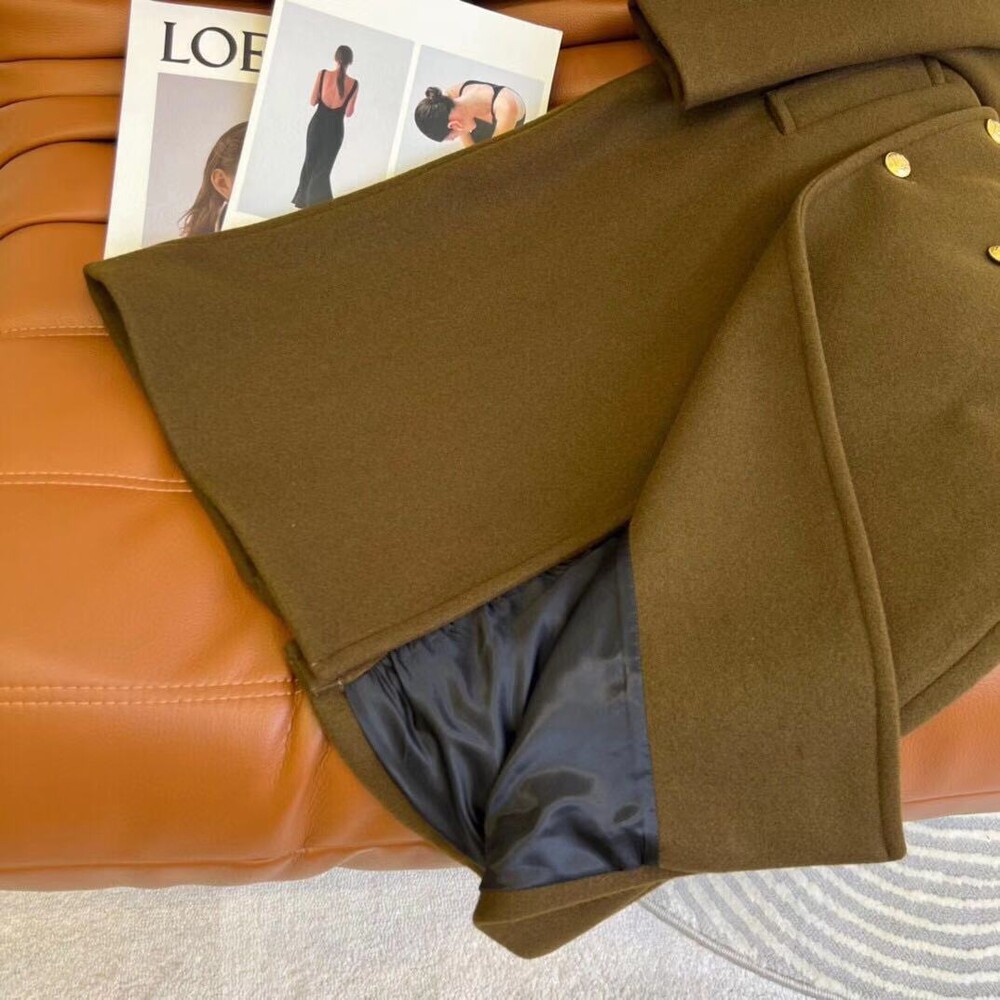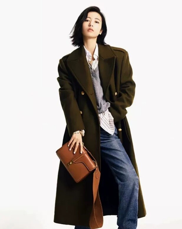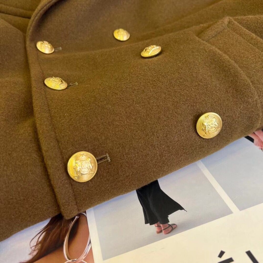 오버핏한 핏감의 아미그린 색상의 롱코트입니다