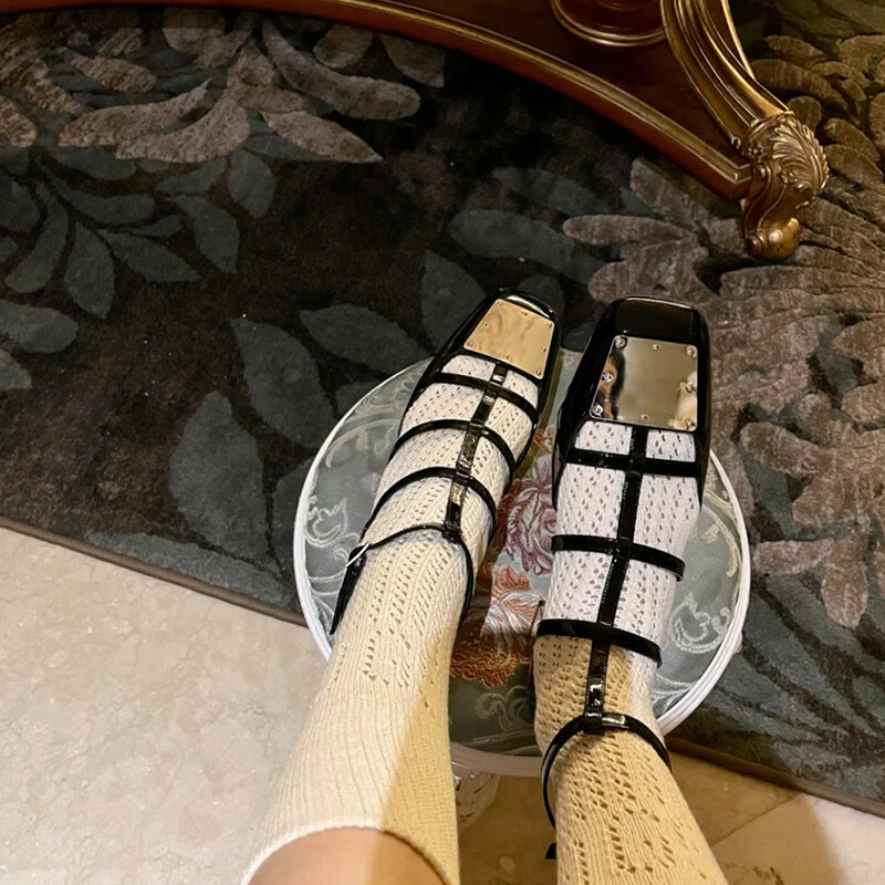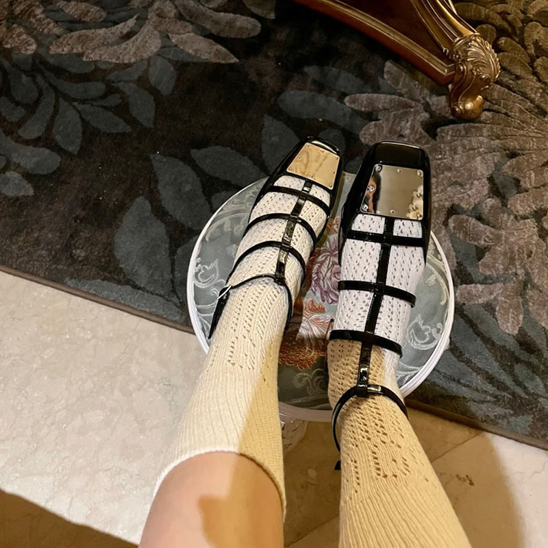 조절가능한 발목 스트랩과 전면의 메탈플레이트가 돋보이는