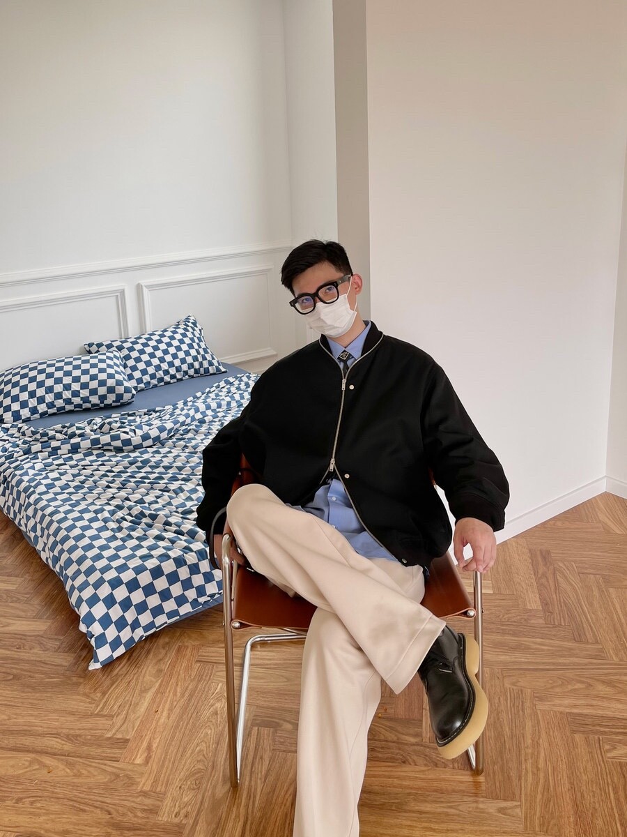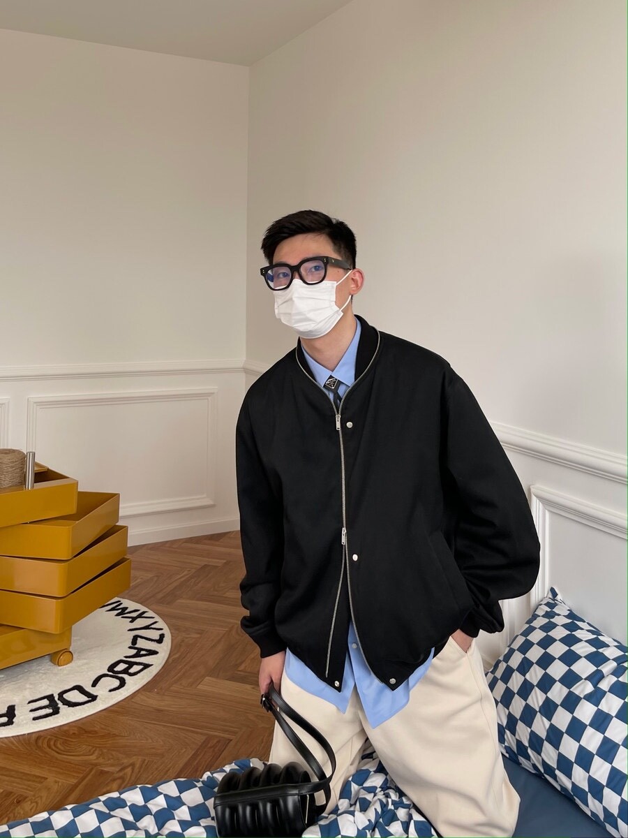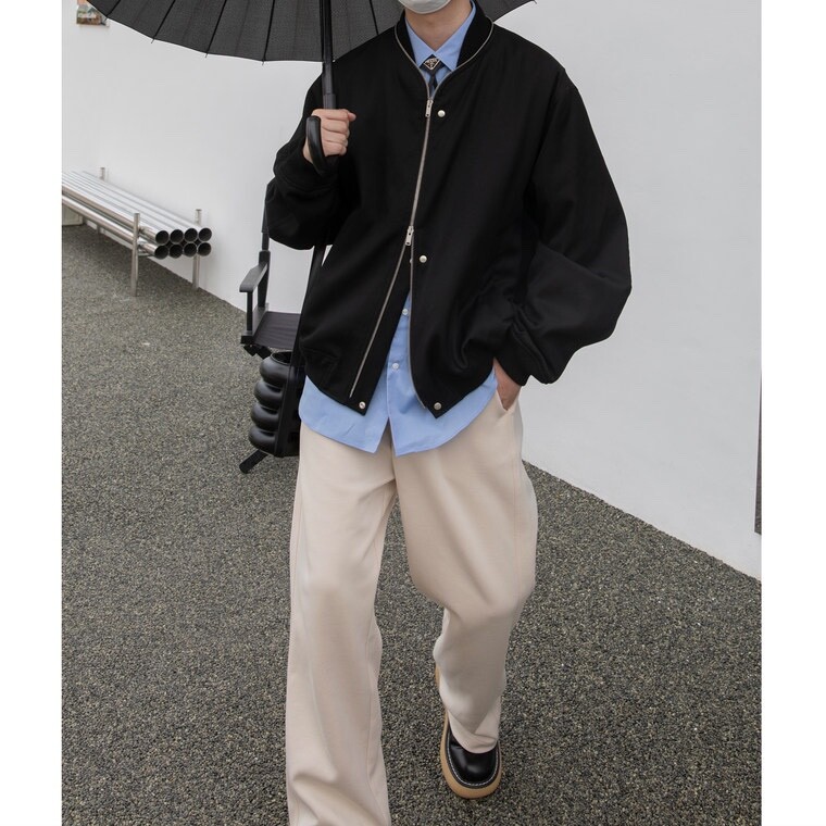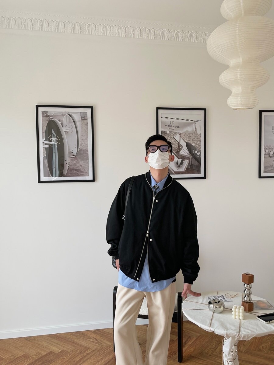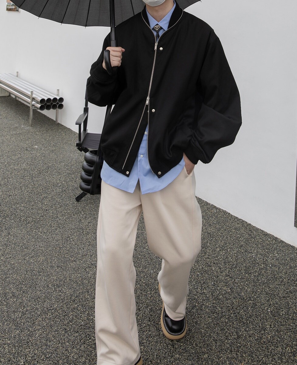 샌더 지퍼 루즈핏 노카라 항공점퍼