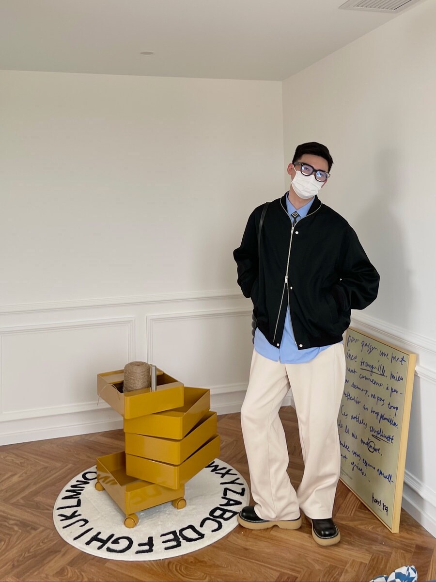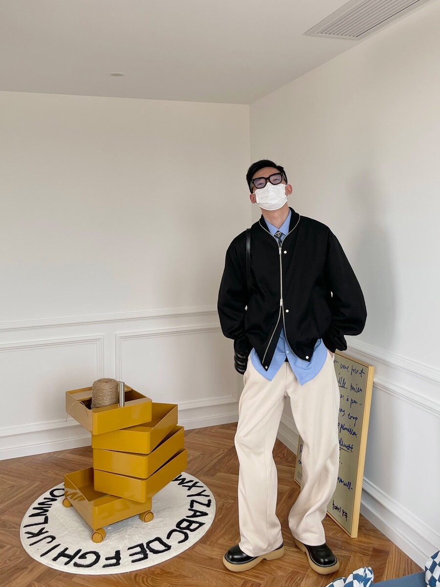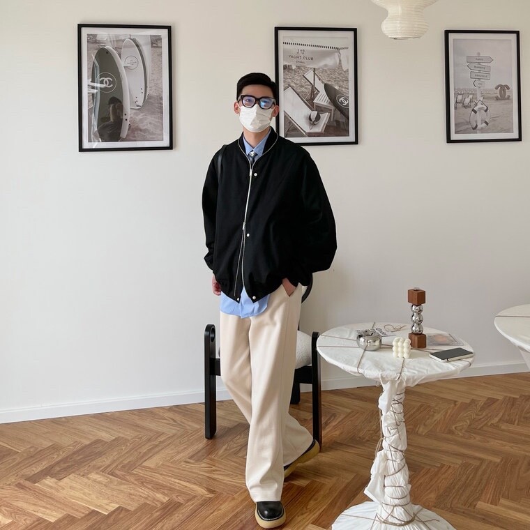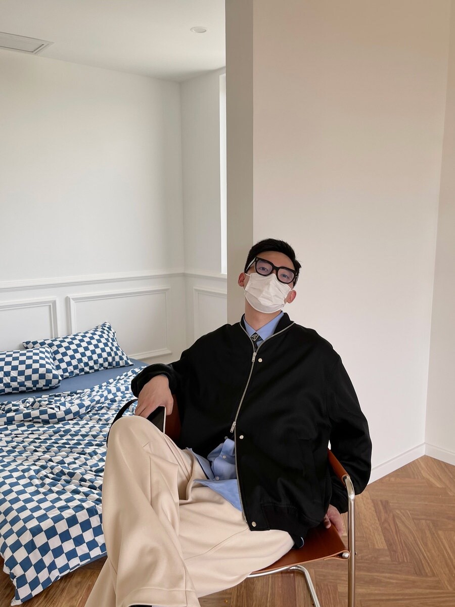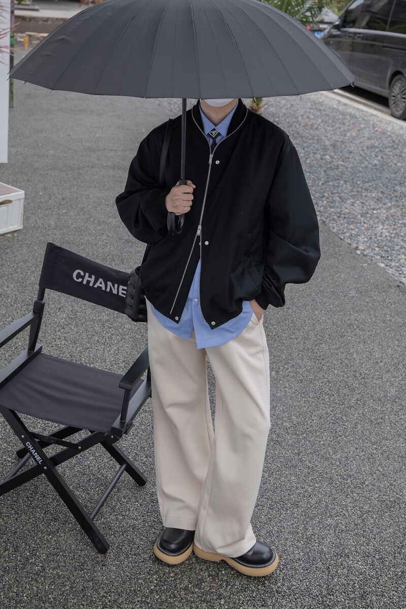 샌더 지퍼 루즈핏 노카라 항공점퍼