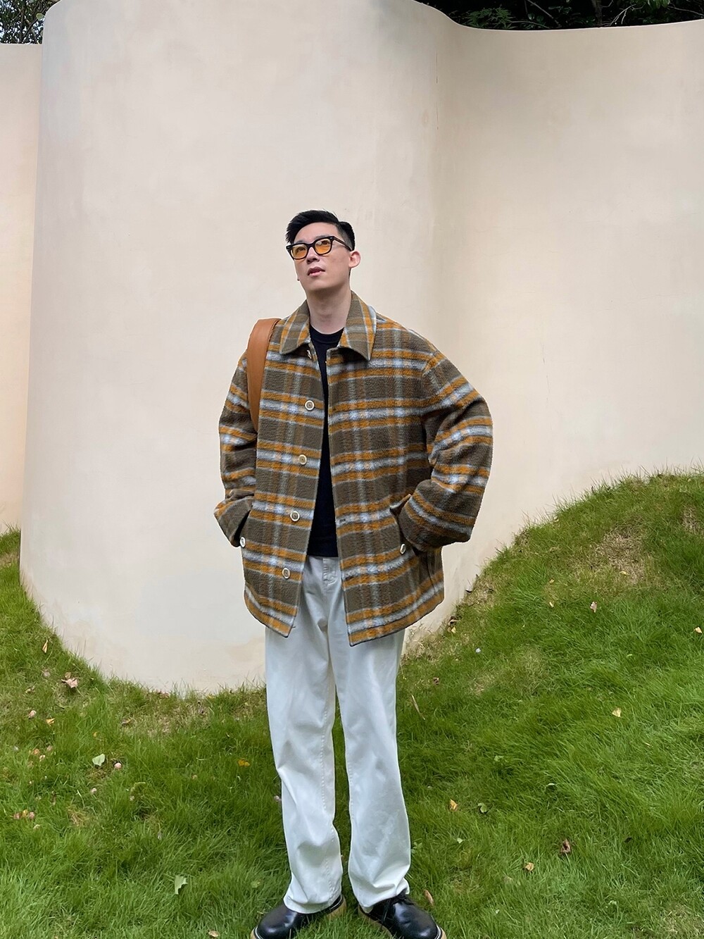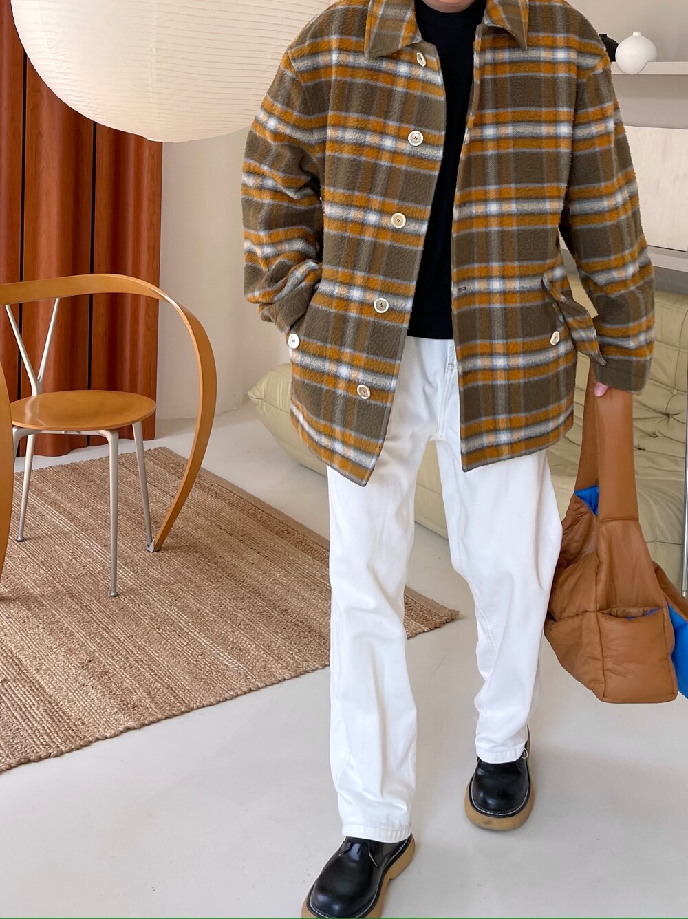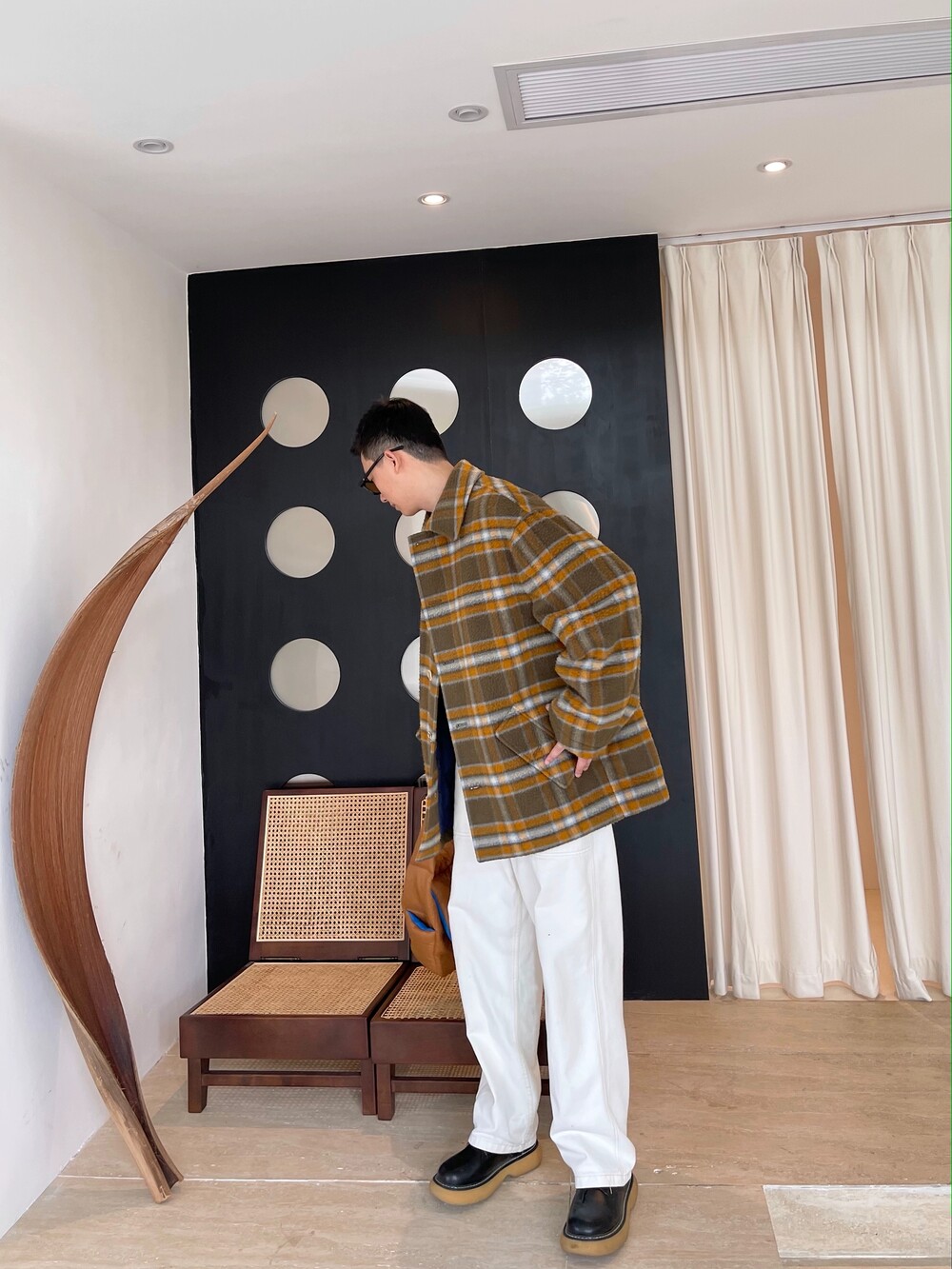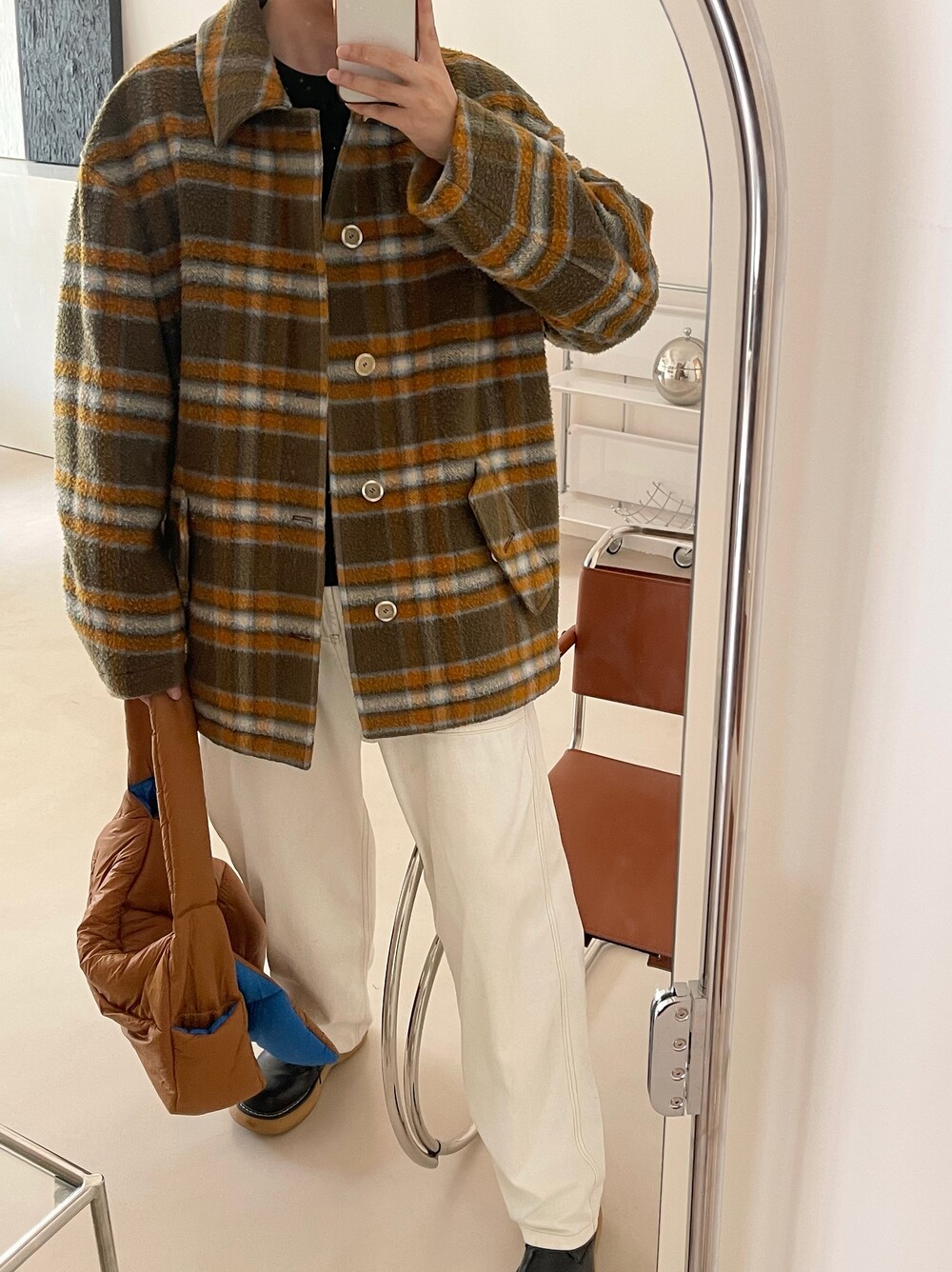 하이퀄리티의 울블랜드 체크 라펠자켓입니다