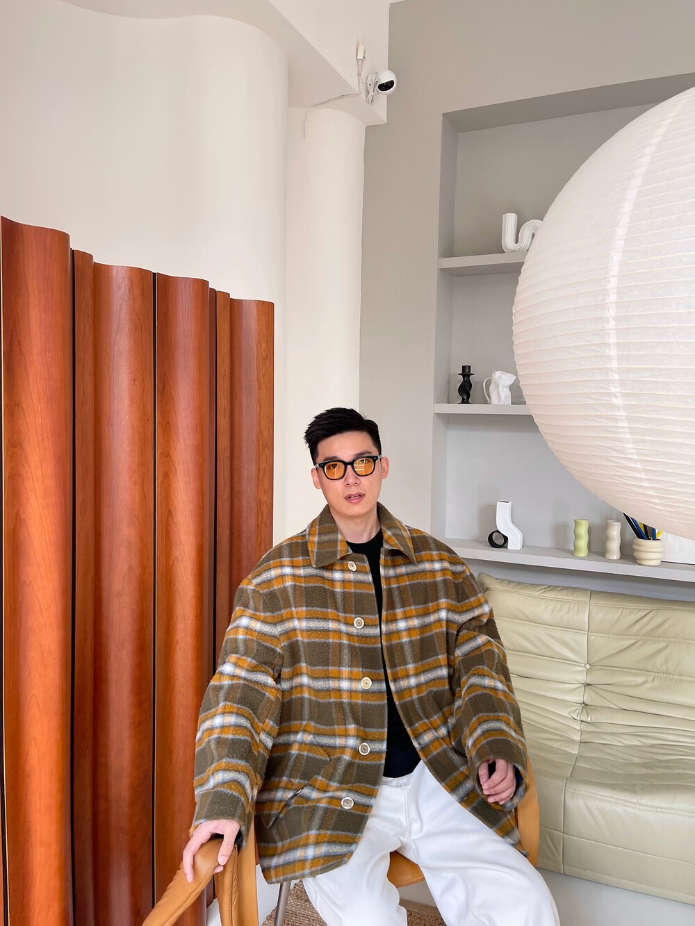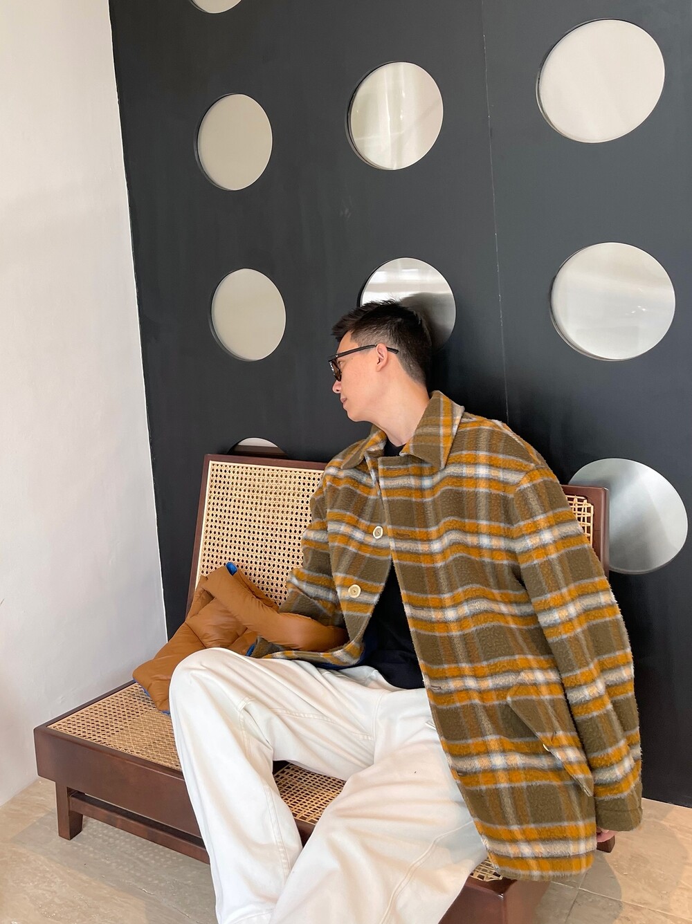 " MARN * 핸드메이드 울 체크라펠 자켓 "