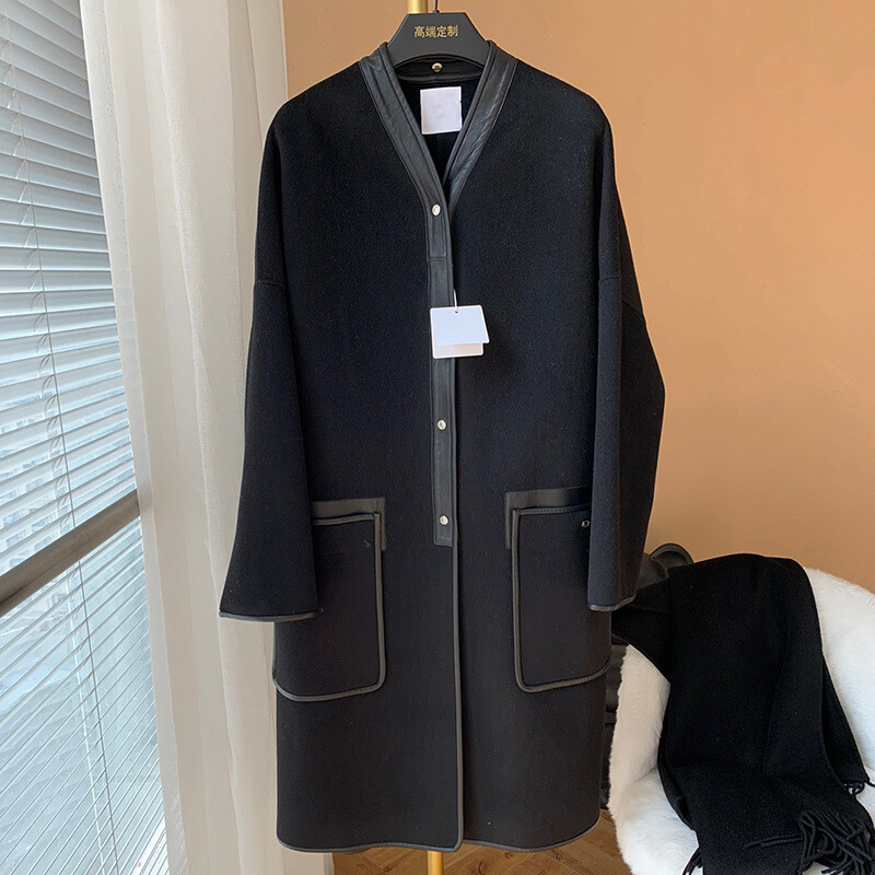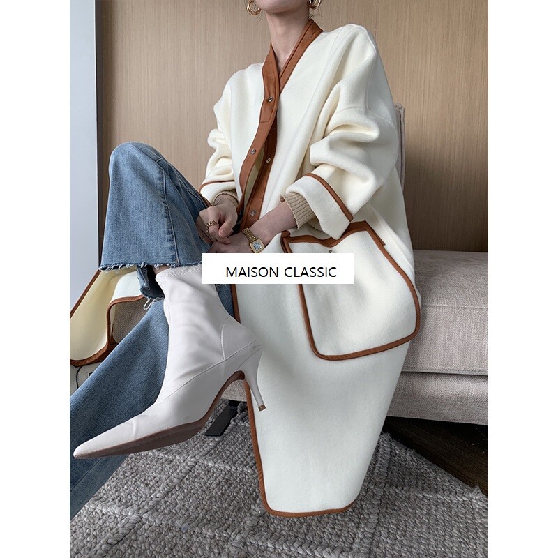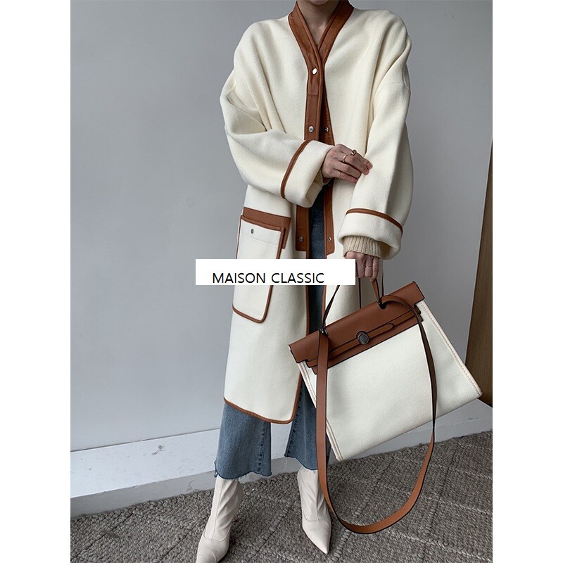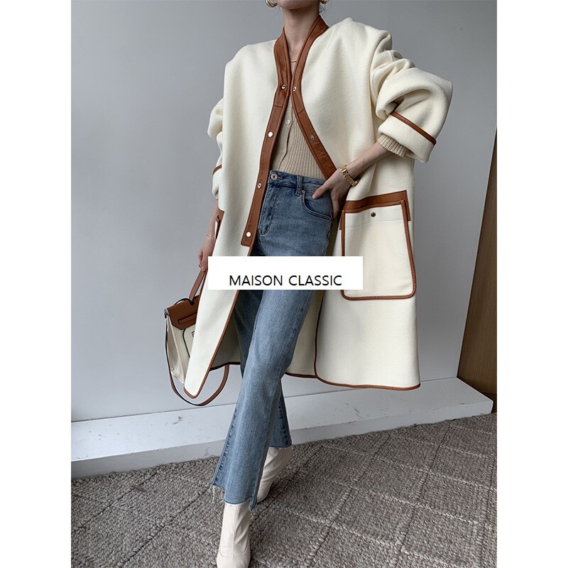 램스킨 트리밍이 돋보이는 코트입니다