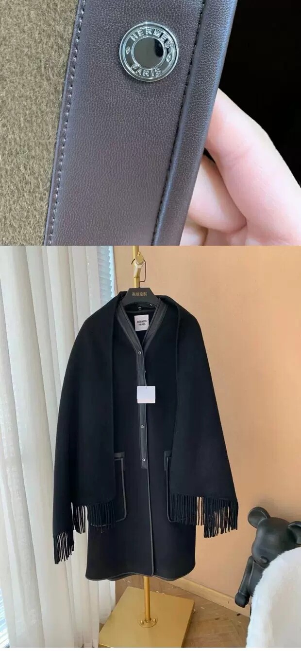 H * 에르 마롱 뚜후브 프린지 스카프 캐시미어코트