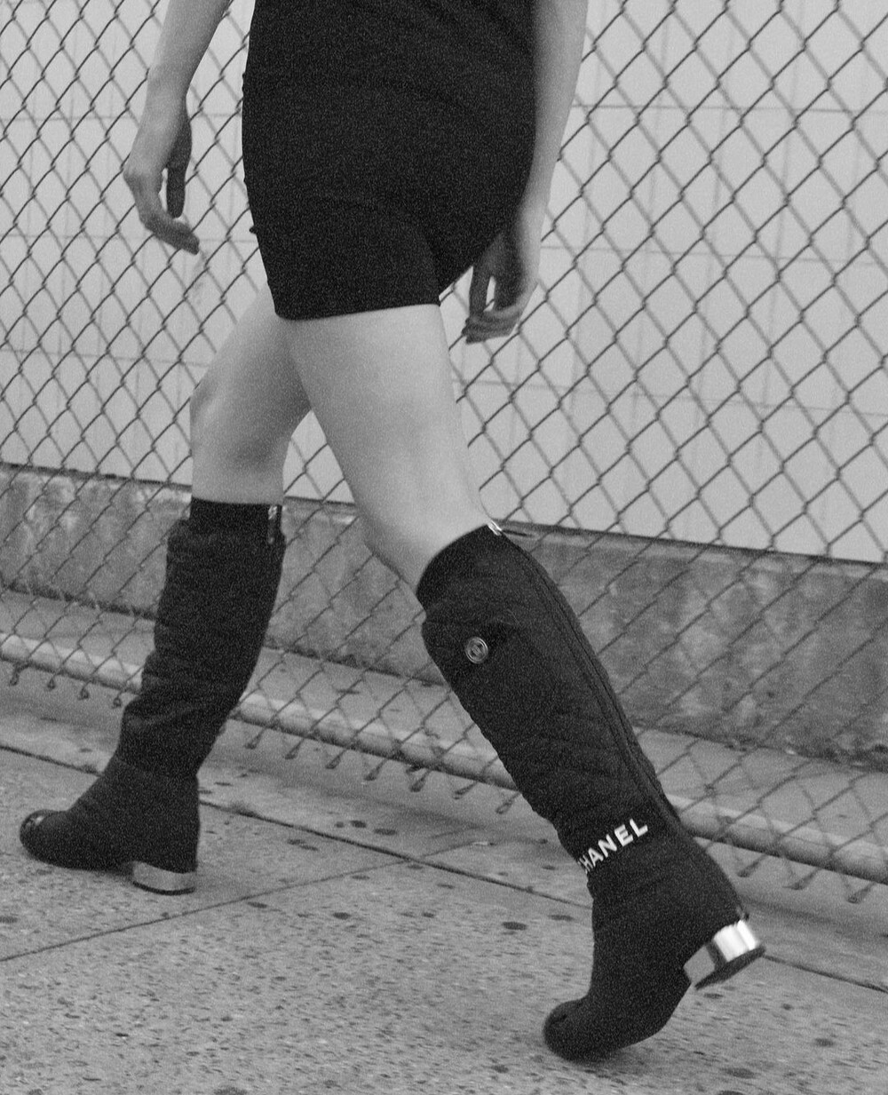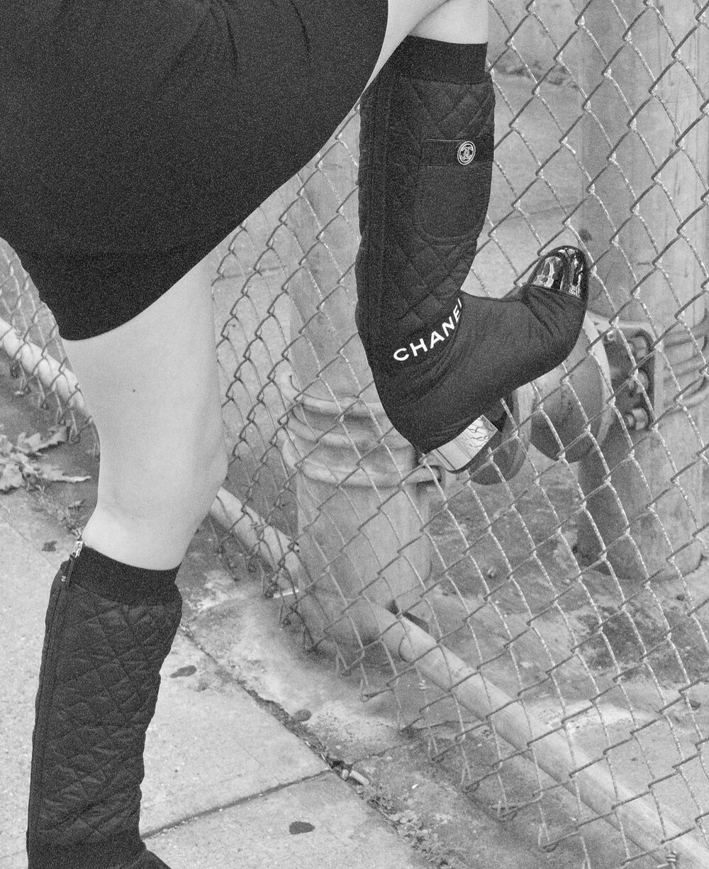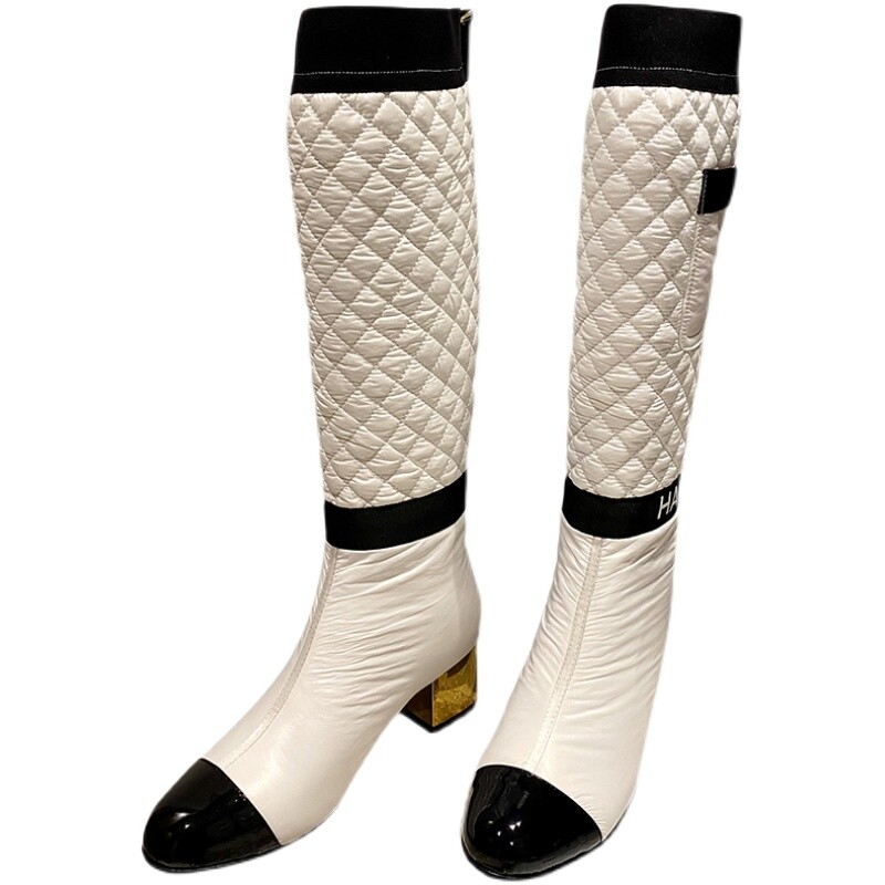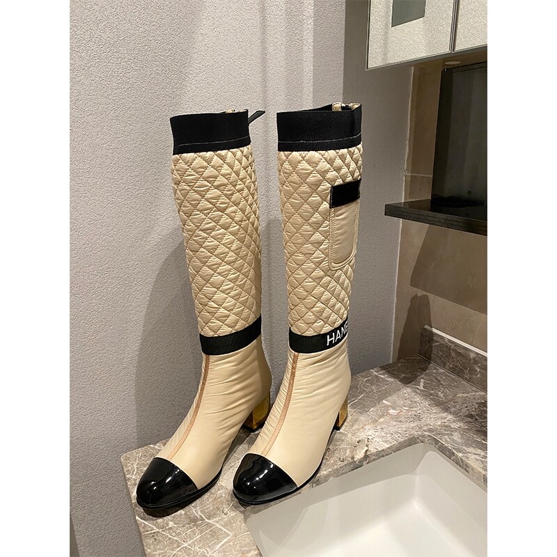 종아리 퀼팅패턴이 특징인 부츠입니다 .