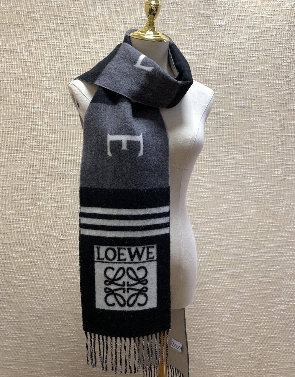 스트라이프패턴과 로고패턴의 조합이 멋스러운 스카프입니다