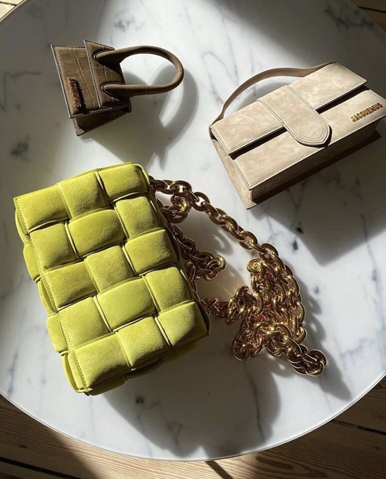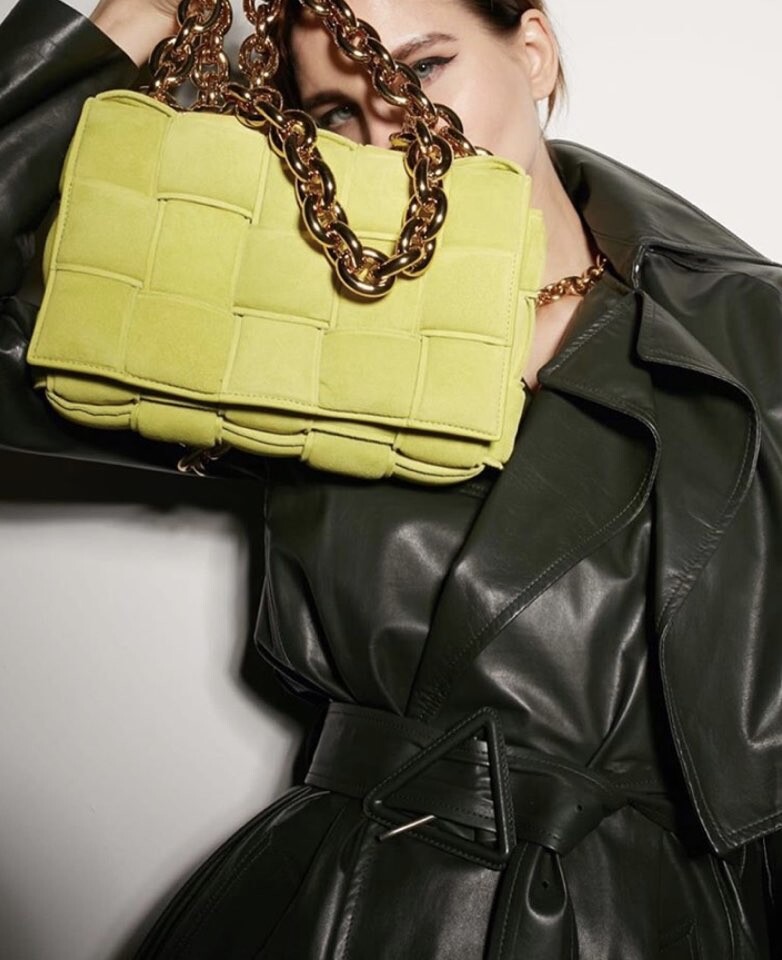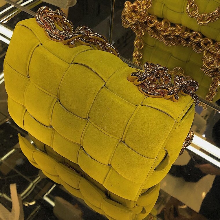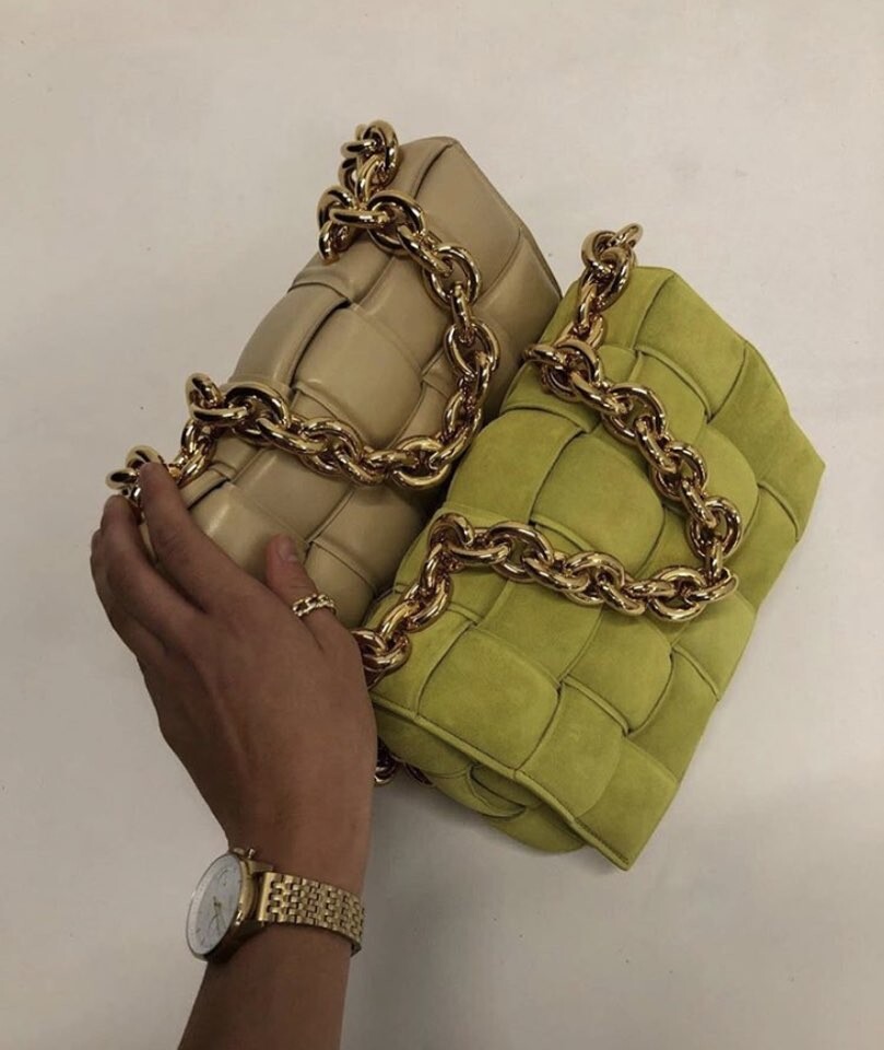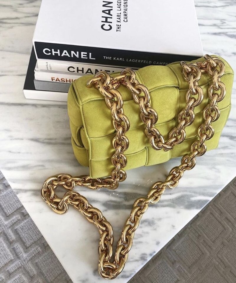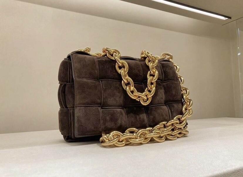 보테가 BV 인트레치아토 스웨이드 체인카세트 크로스 숄더백