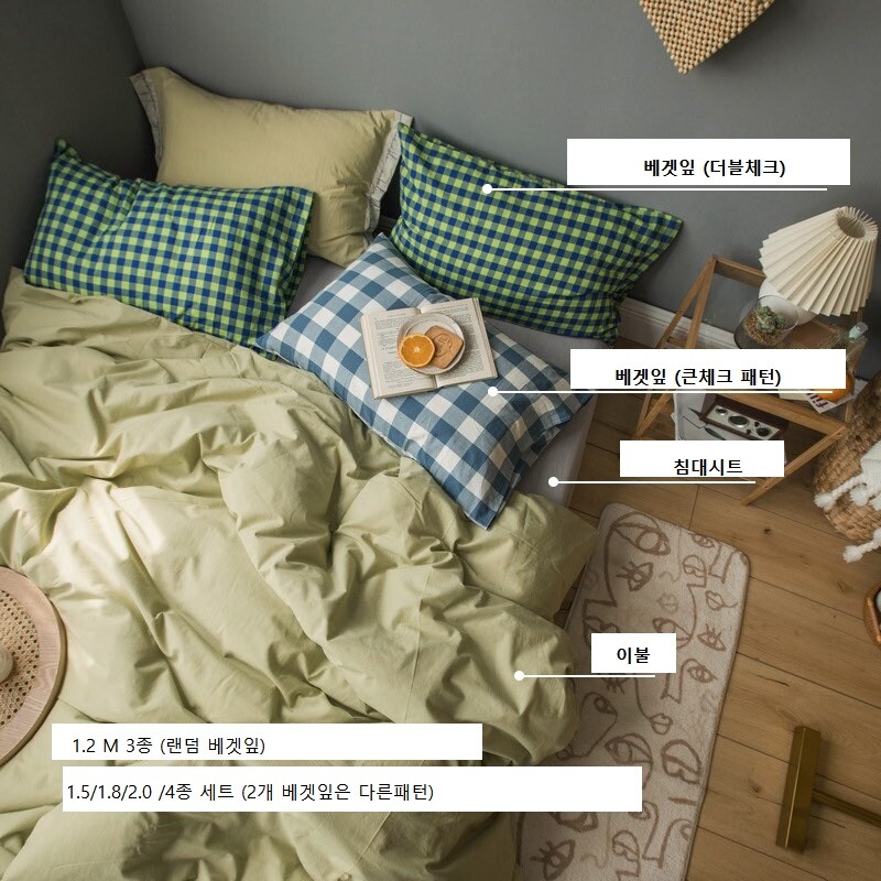 1.2 M / 이불커버 155X210 시트커버 120X190 베겟잎 48X74(1피스)
