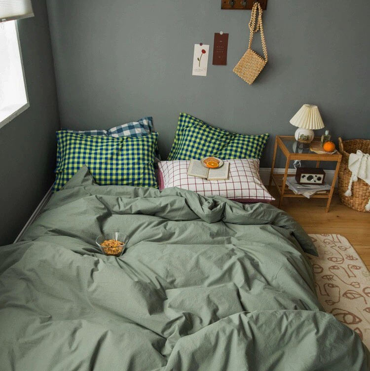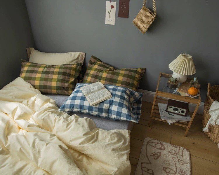 빈티지 프렌치 모던 가을 겨울 체크 베딩 세트
