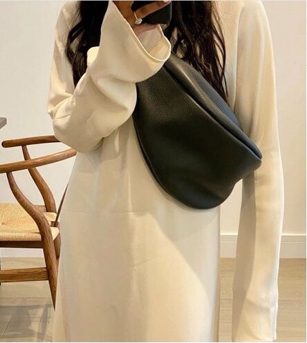 " 바나나 숄더 미니 데일리 더로우 가죽백 "