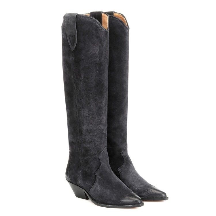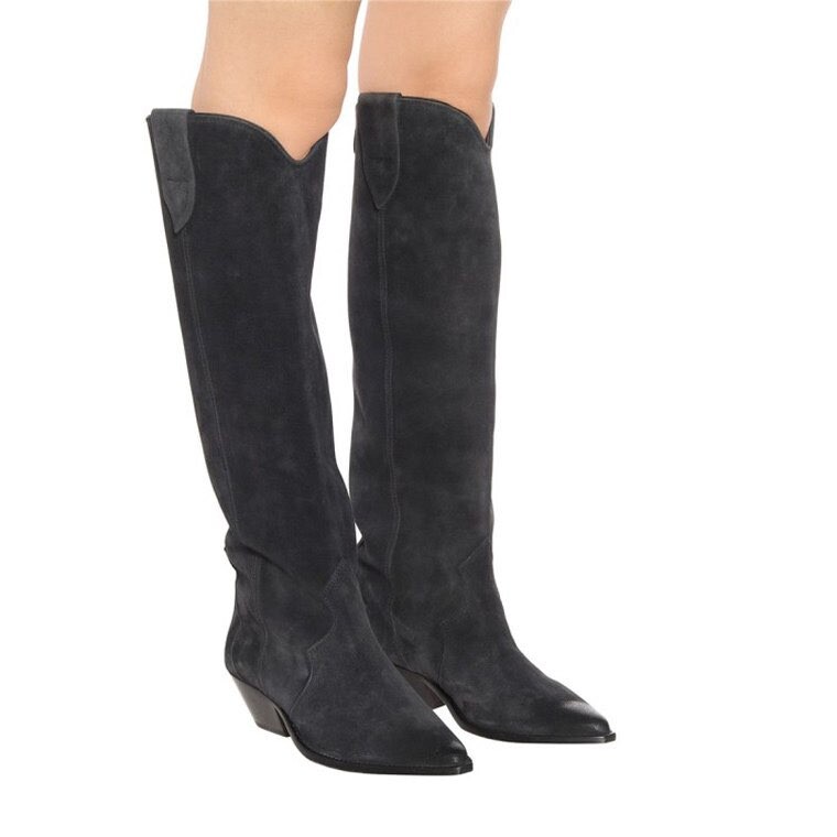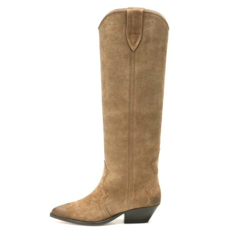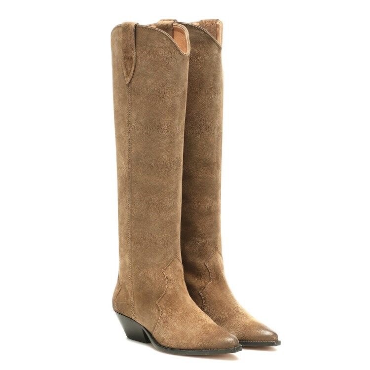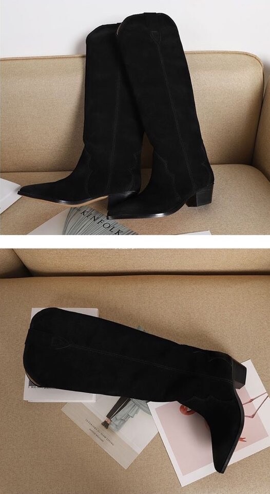마랑 웨스턴 첼시 미들굽 카프스킨 스웨이드 롱데일리 여성 부츠