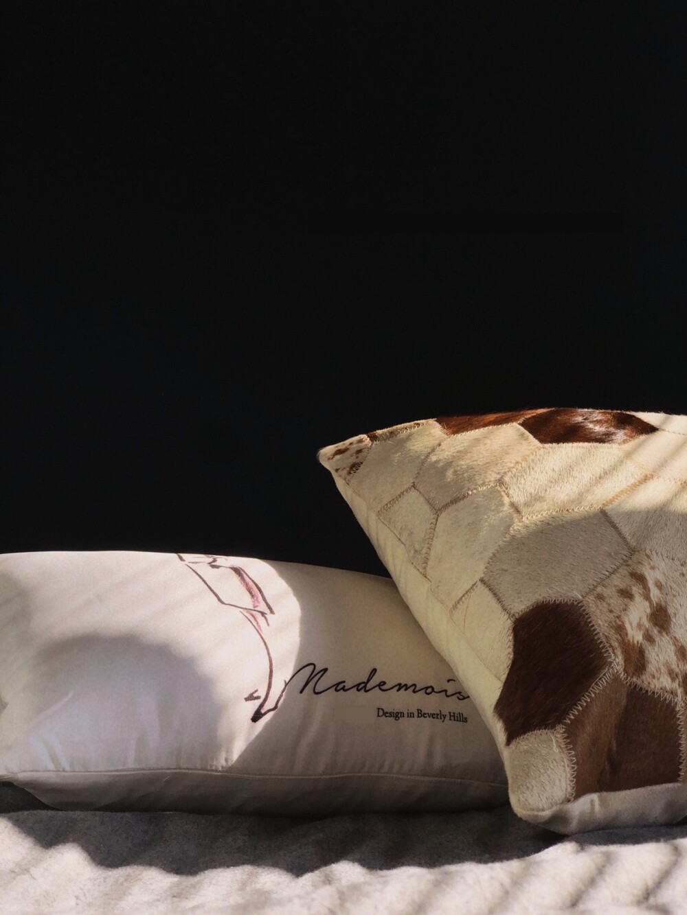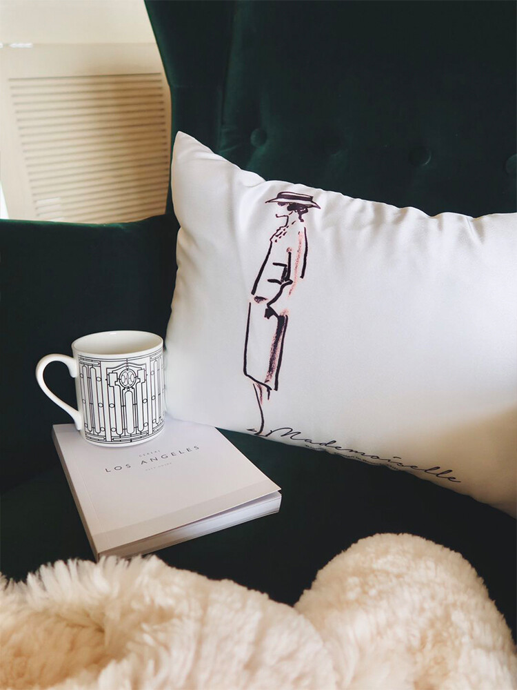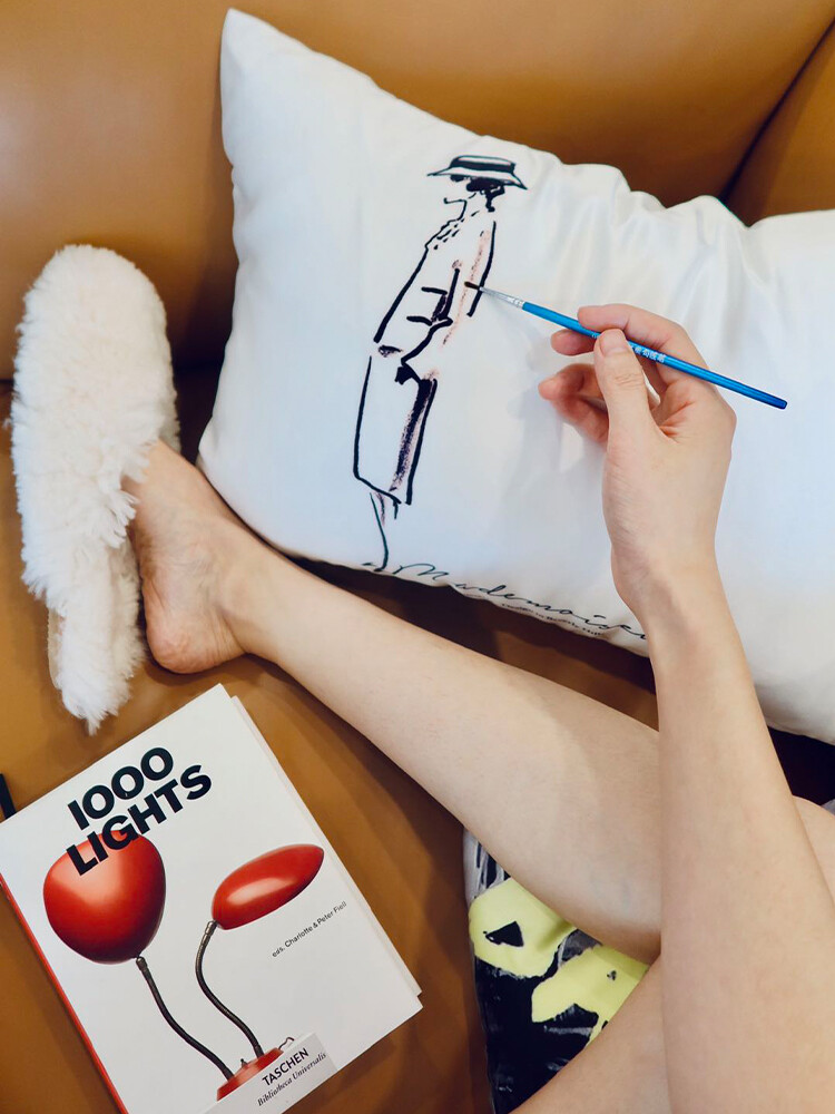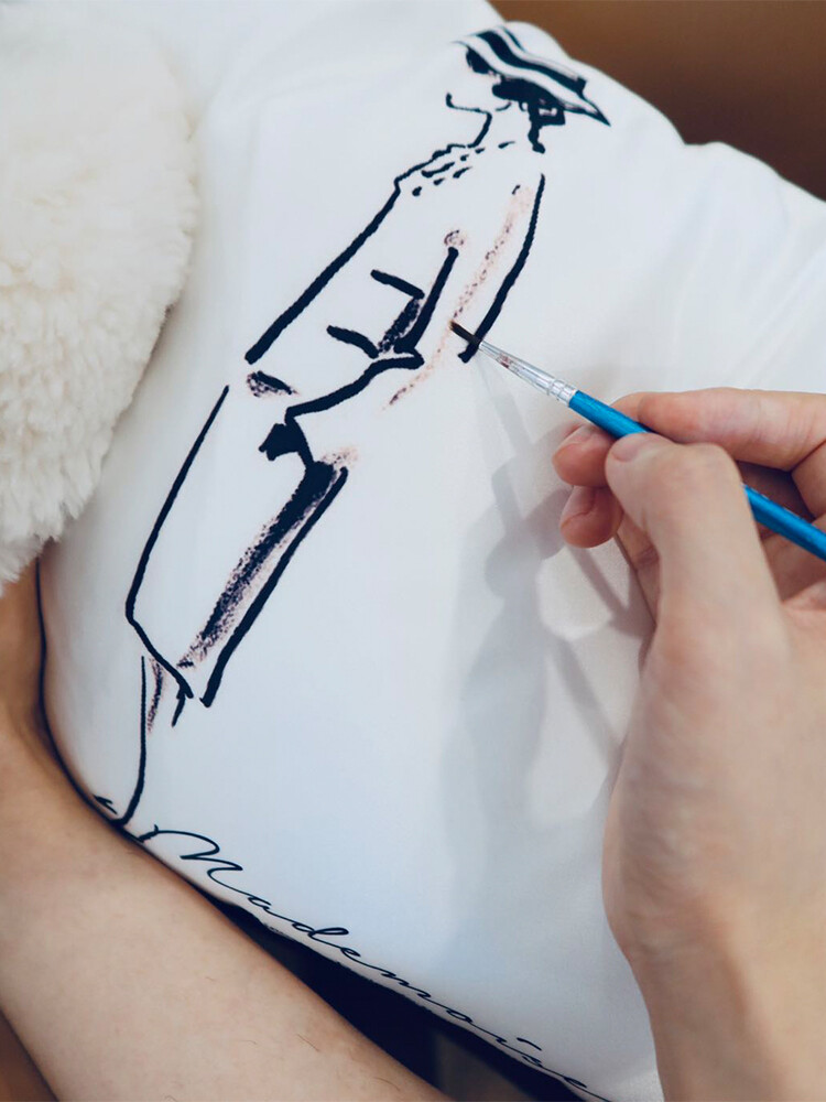 여백의 미를 살려 제작된 실크소재의 마드모아젤 쿠션입니다