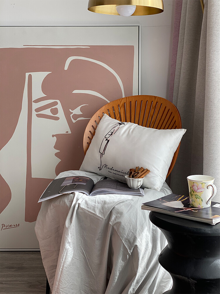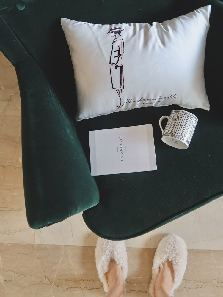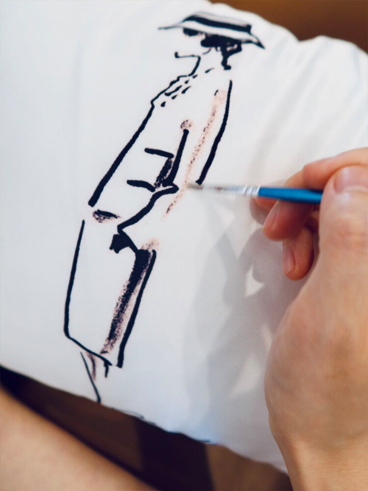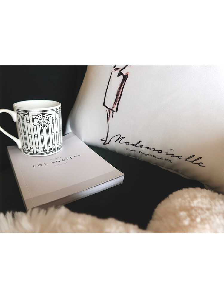 여백의 미를 살려 제작된 실크소재의 마드모아젤 쿠션입니다