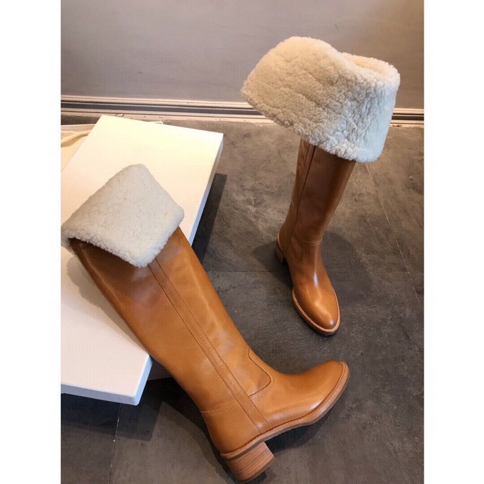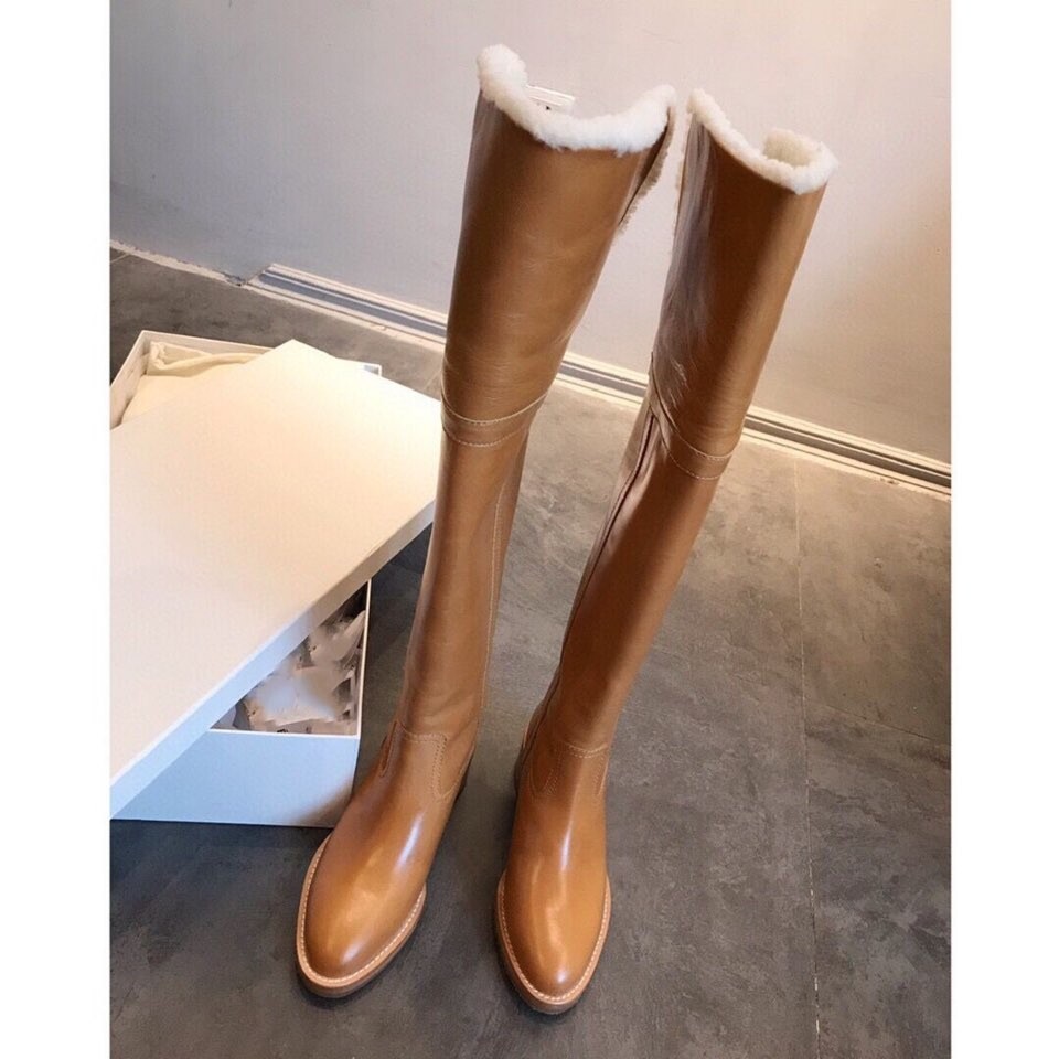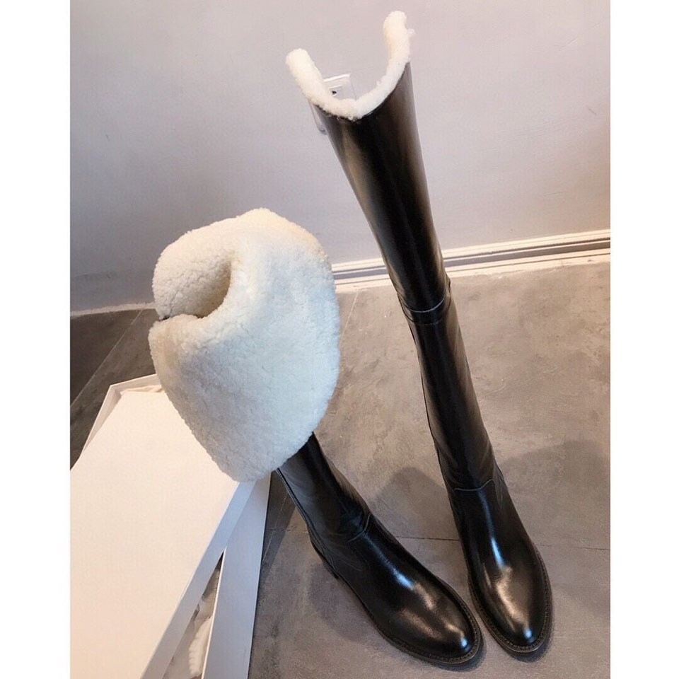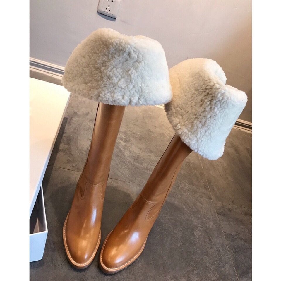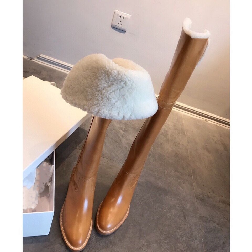 "셀린 폴코 양털 시어링 오버 니하이 부츠 "