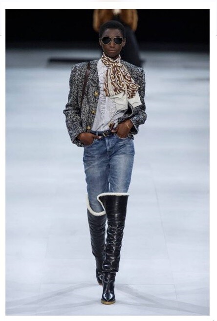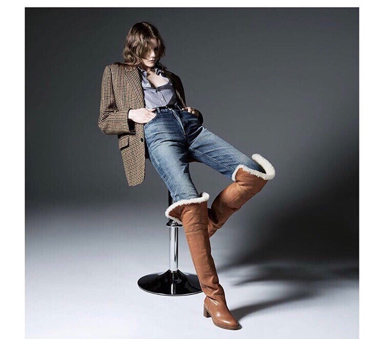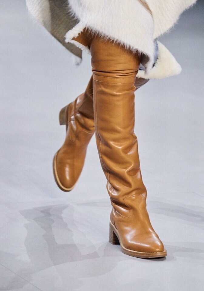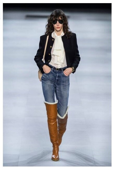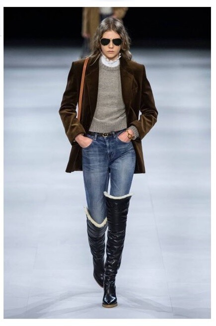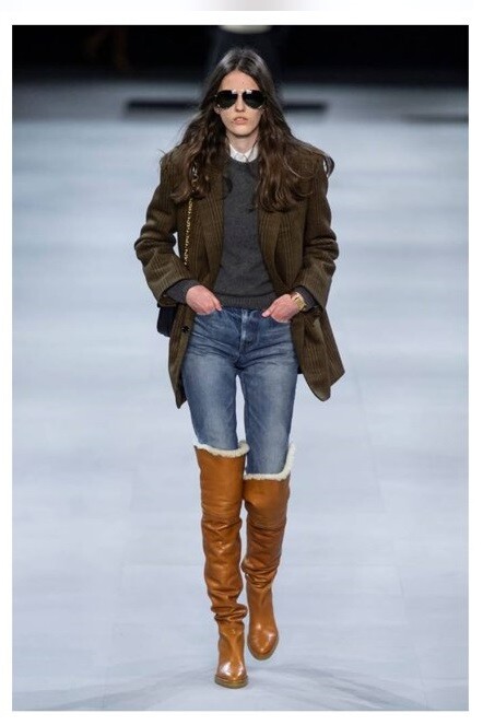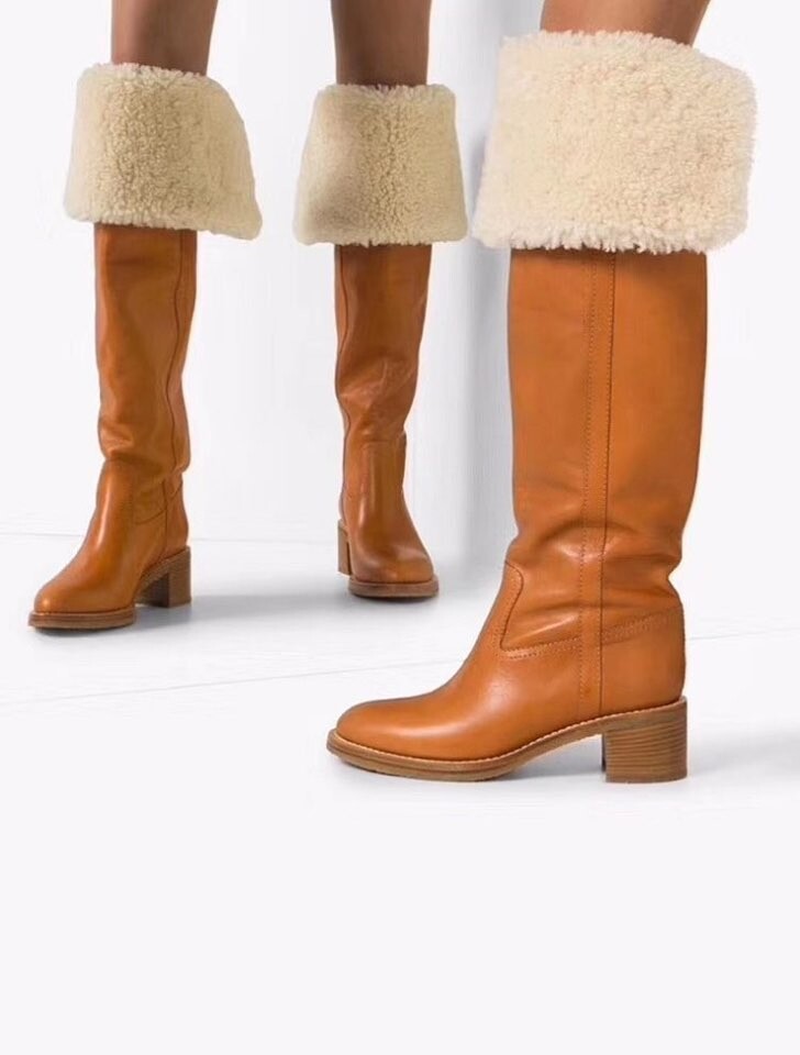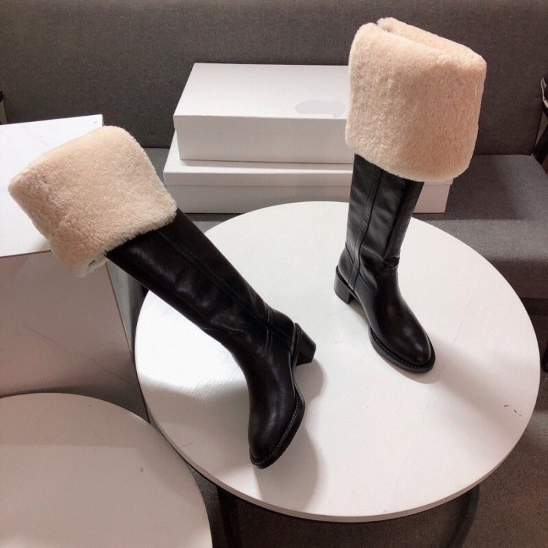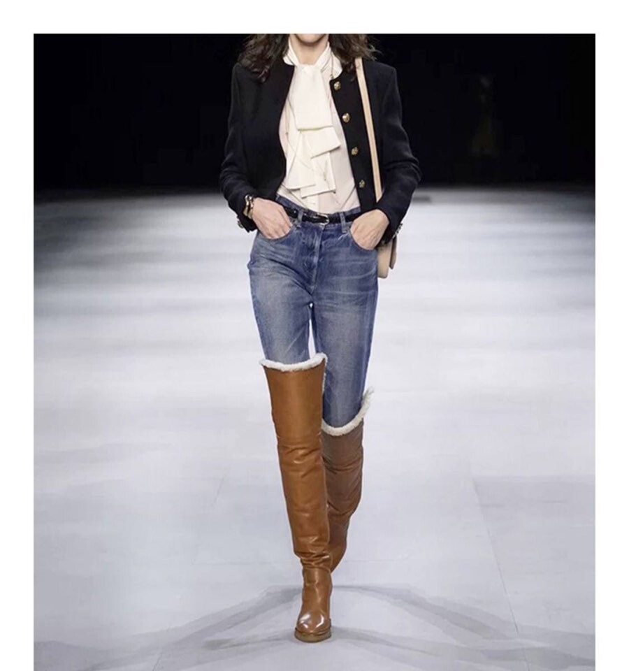 "셀린 폴코 양털 시어링 오버 니하이 부츠 "