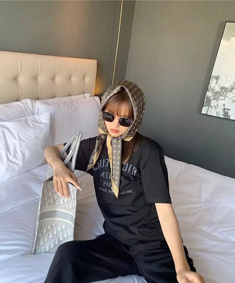 트라이엄프패턴의 실크소재의 스카프입니다 .