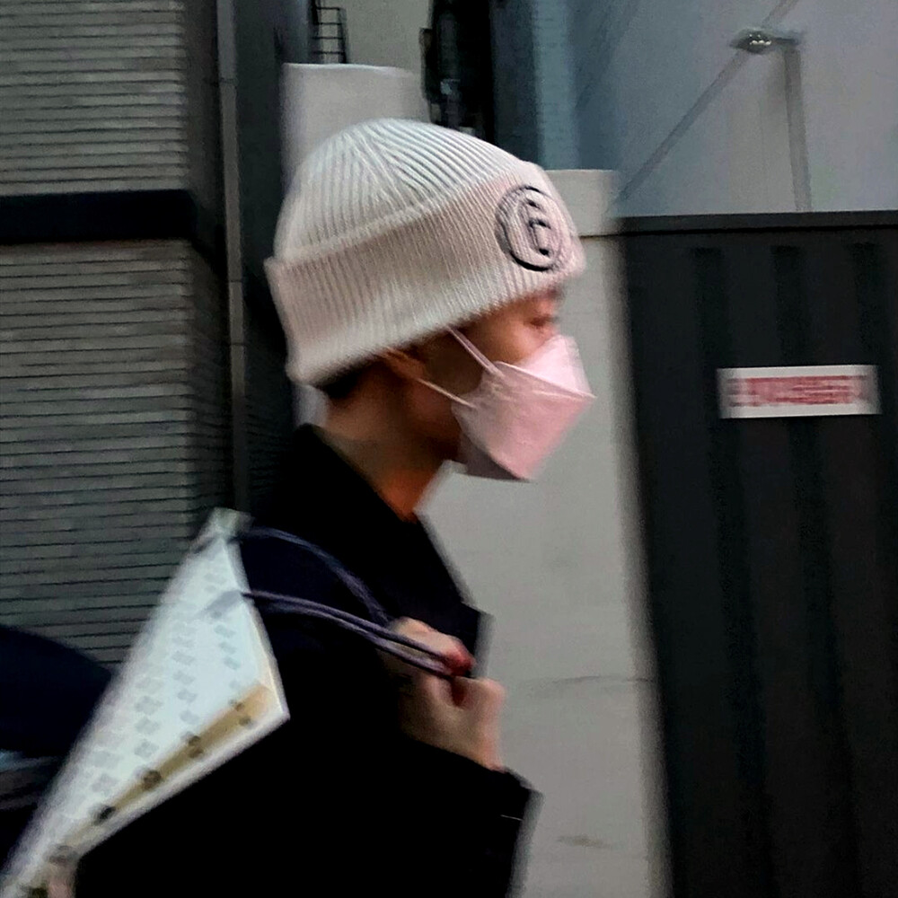 리브 조직 니트 소재의 비니로 턴업 부분의 한쪽