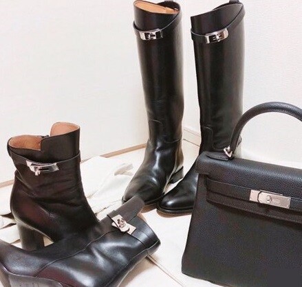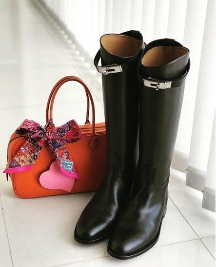 롱부츠 윗부분은 켈리로 장식되어 있어