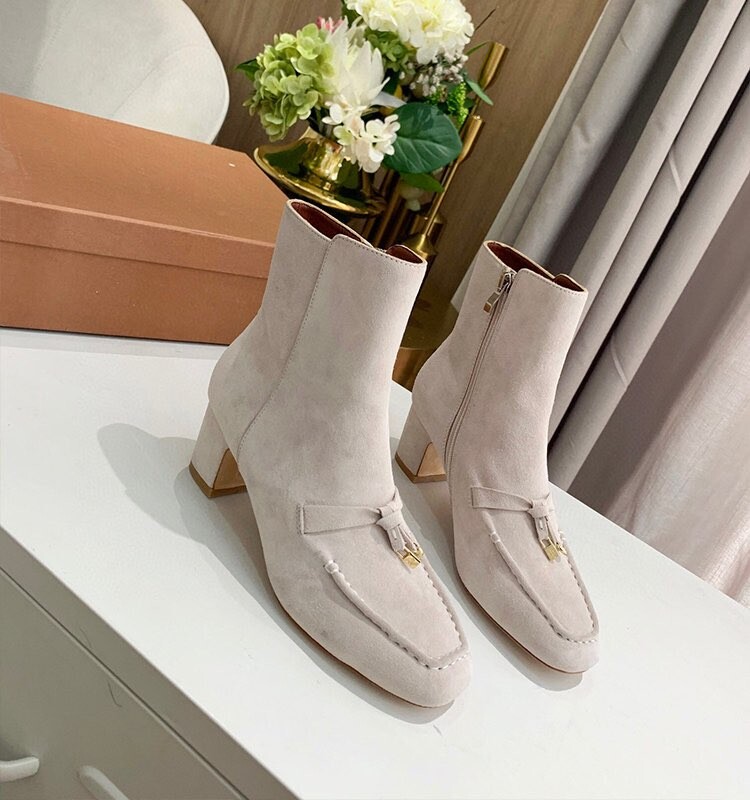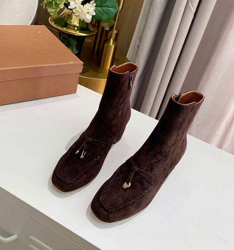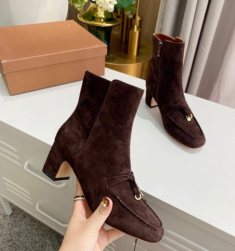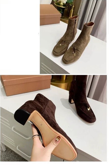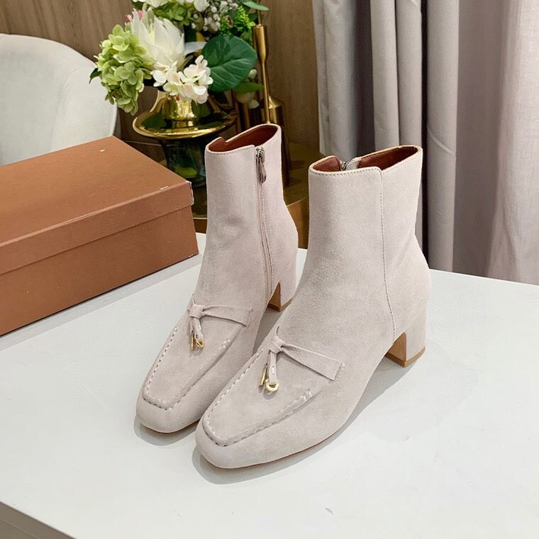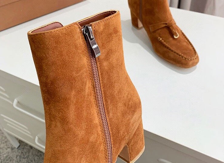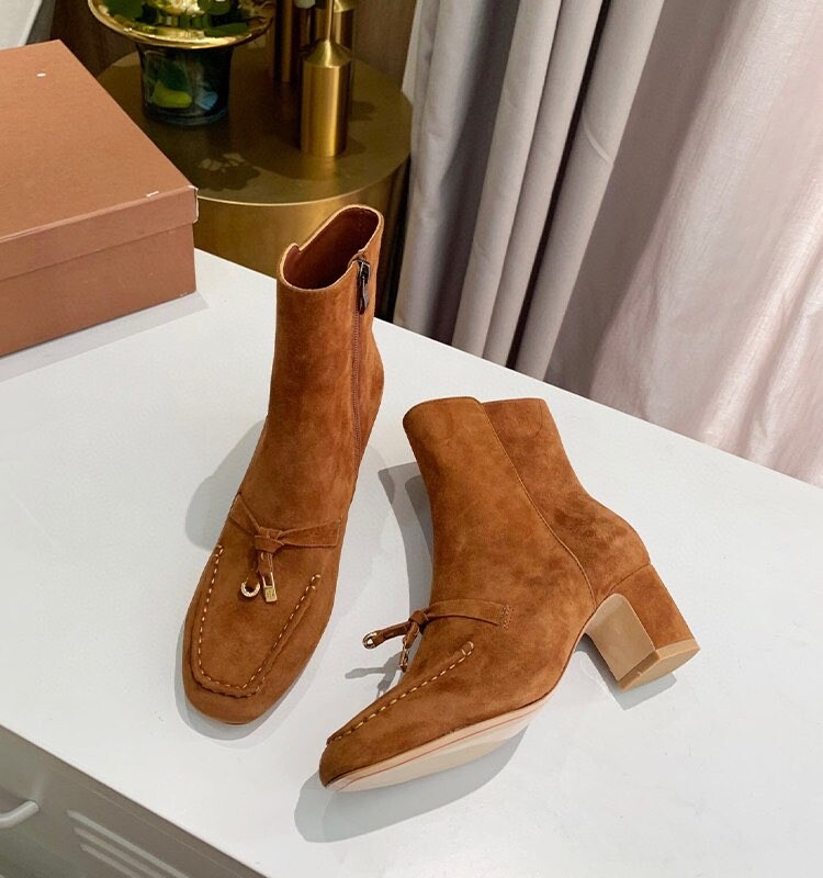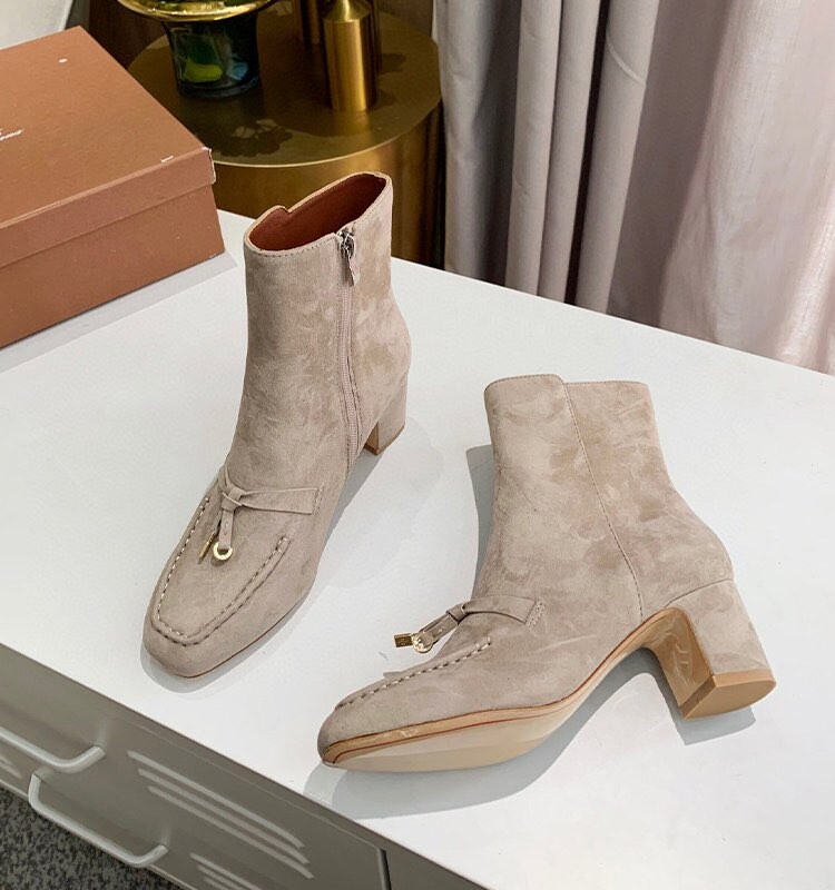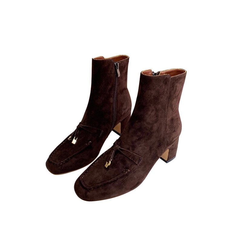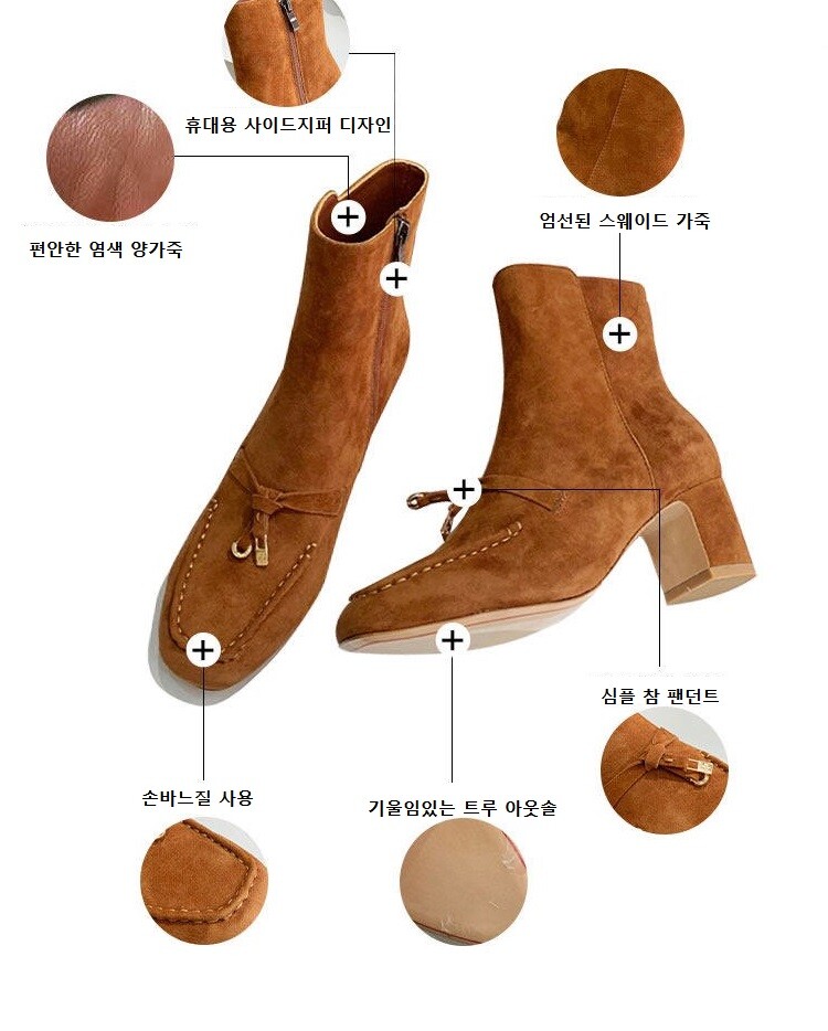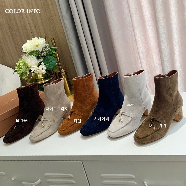 " 로로 스웨이드 백참장식 앵클부츠 "