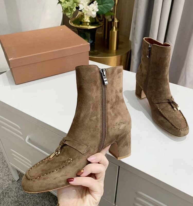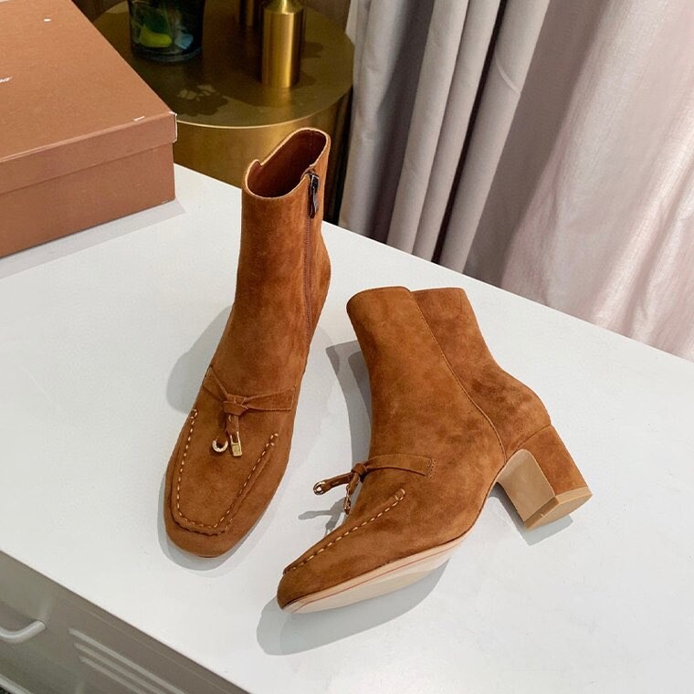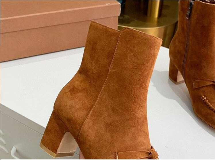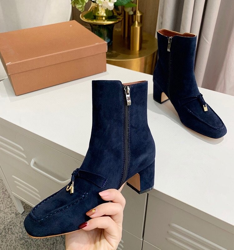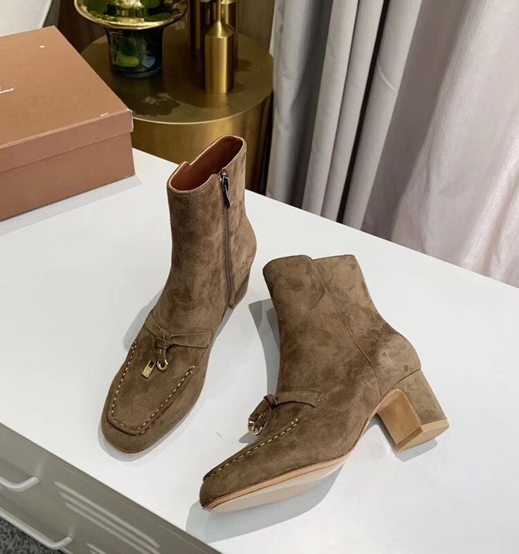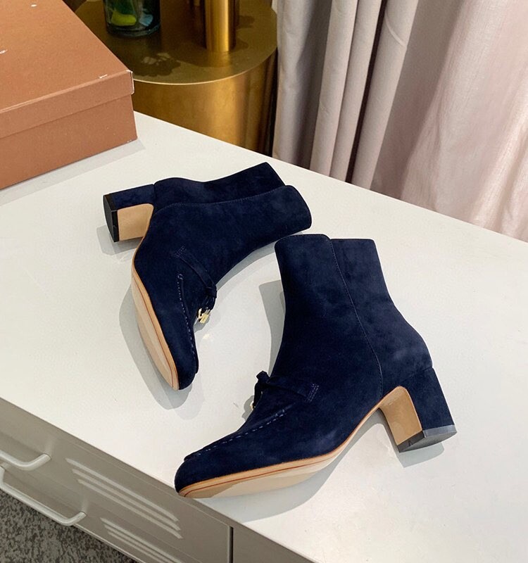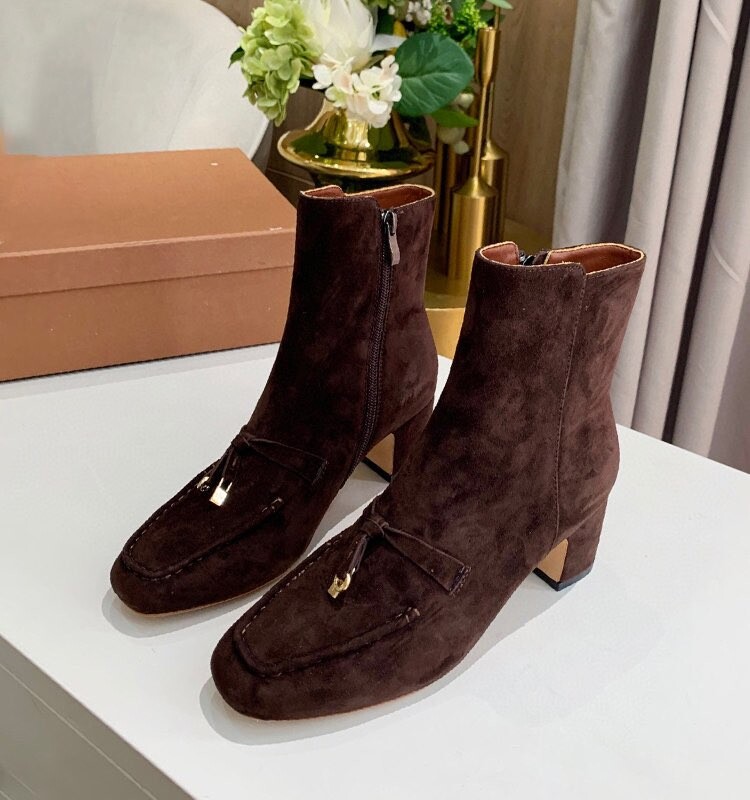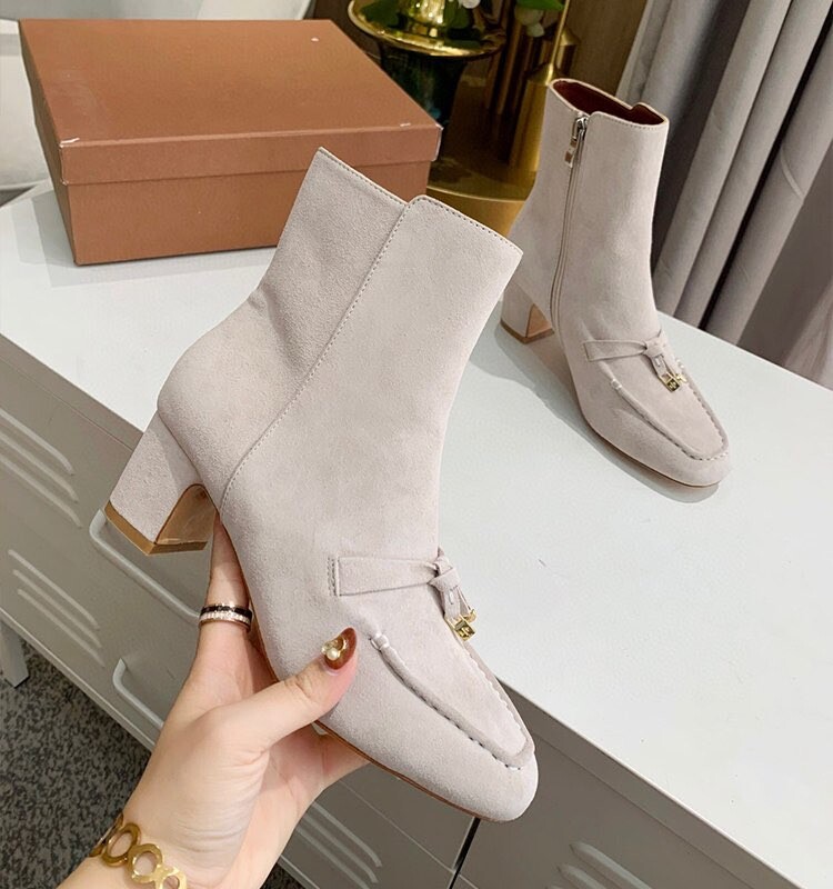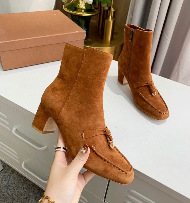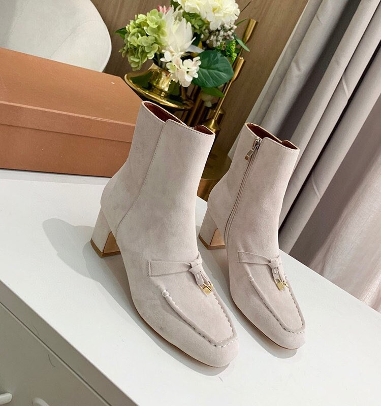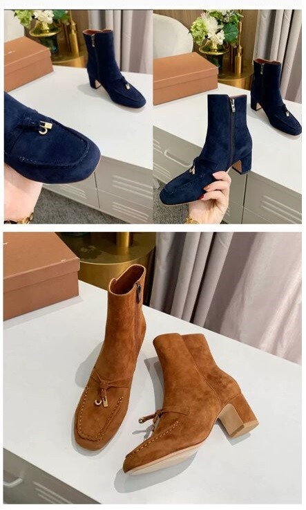" 로로 스웨이드 백참장식 앵클부츠 "
